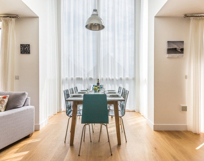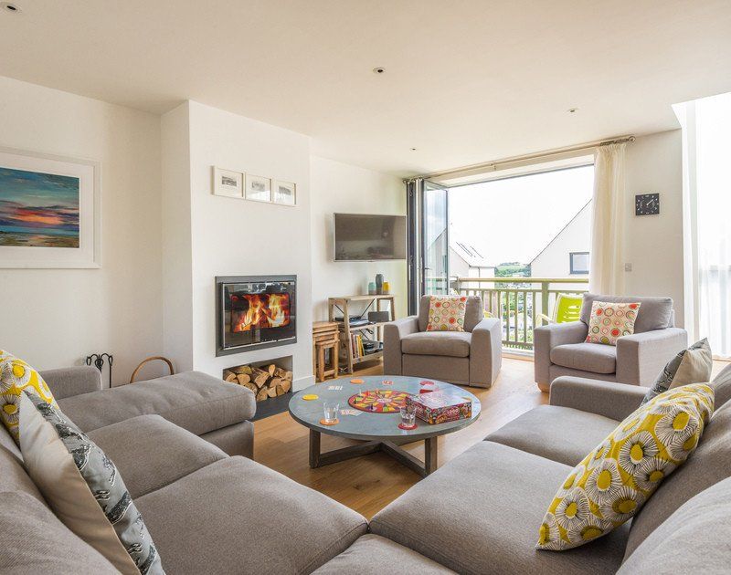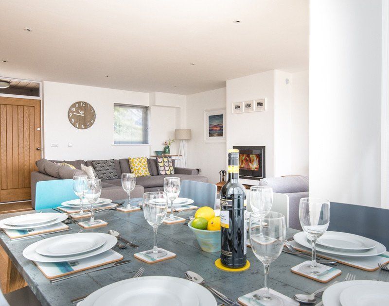 Amenities Underfloor heating and multi-fuel burner. Induction hob, microwave, fridge/freezer, washing machine, dishwasher, Nespresso coffee machine (capsules not supplied). Wine Fridge. TV with SkyPlus - Sports Original bundle, WiFi, telephone (honesty). Fuel and power inc. in rent. Bed linen and towels inc. in rent. Private parking for two cars. Two first floor balconies, and decking area with garden furniture and space to hang wetsuits / store beach equipment. 2 pets by arrangement. Sorry, no smoking. Shop, pub and beach 1mile.