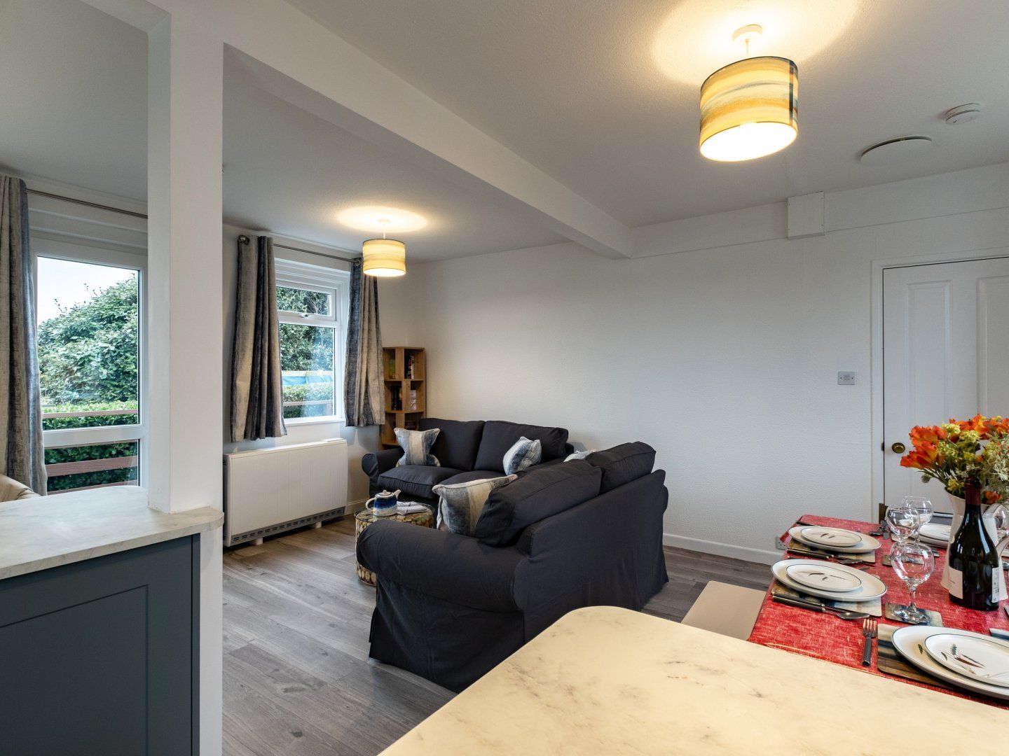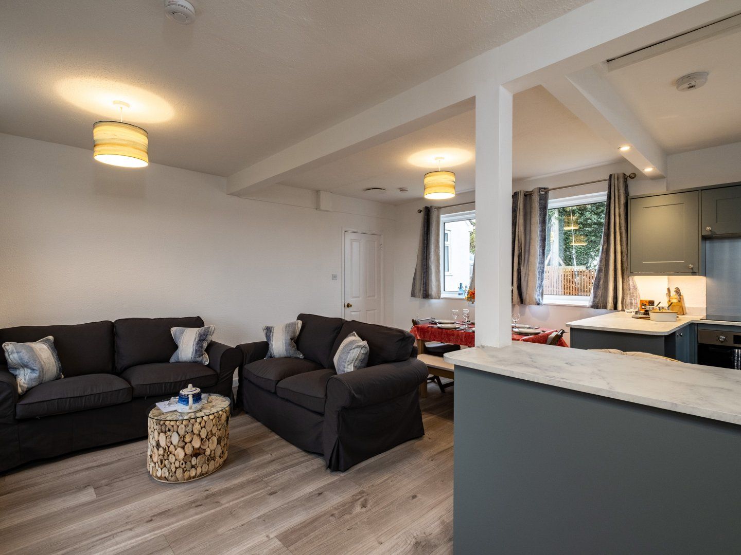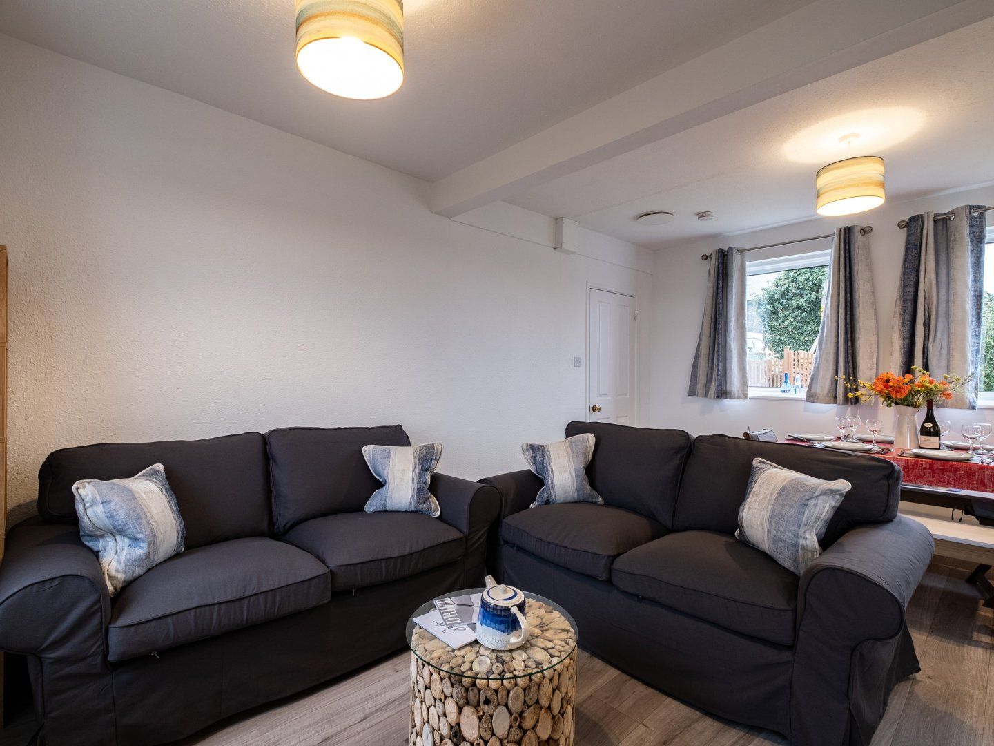 Accomodation Details Single-storey. Three bedrooms: 1 x king size double, 1 x twin, 1 x single with en-suite walk-in shower, basin, heated towel rail, and WC. Bathroom with bath, shower over, basin, heated towel rail, and WC. Open-plan living space with kitchen, dining area and sitting area