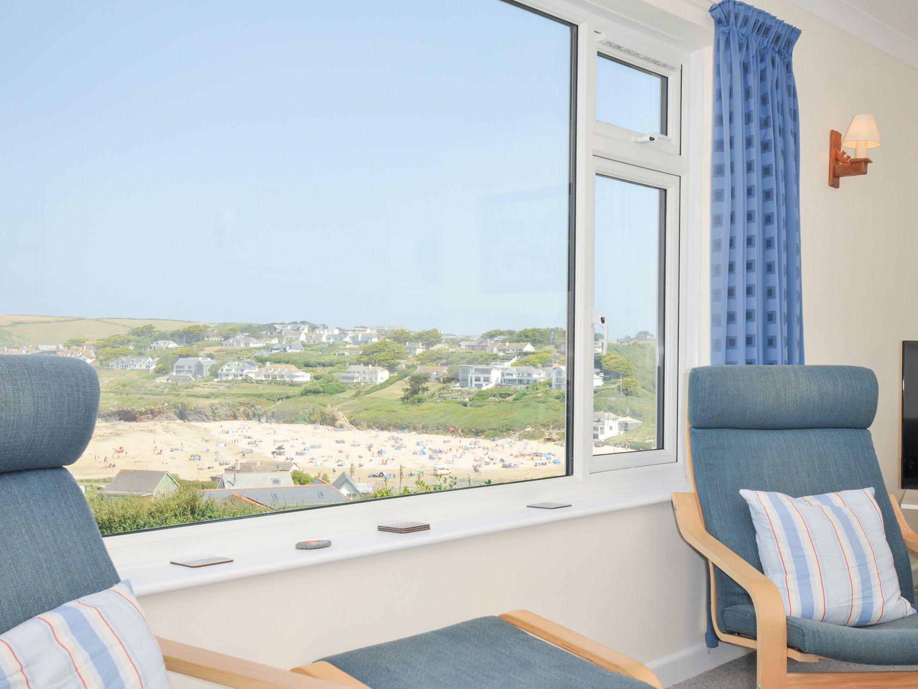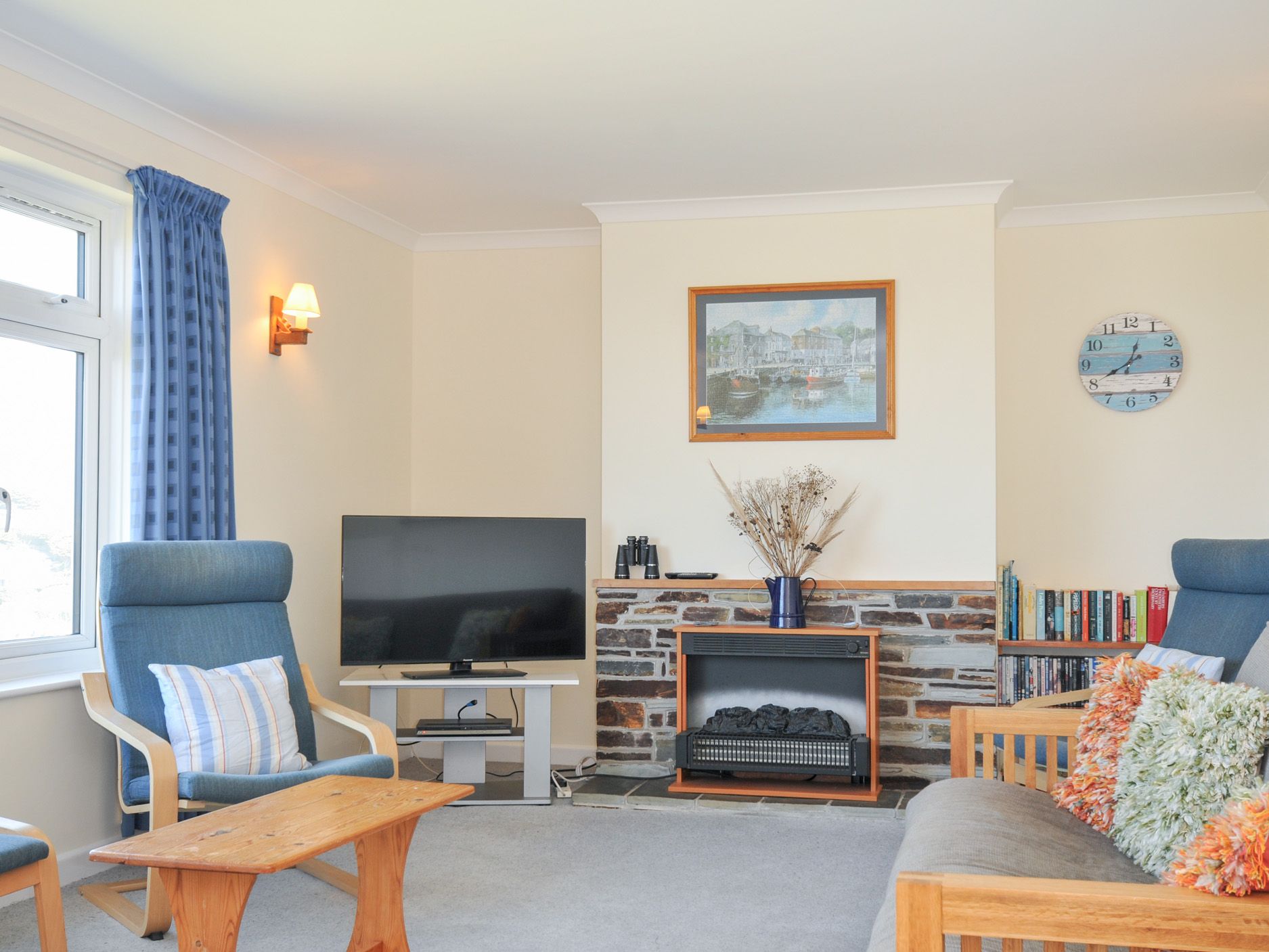 Amenities Oil central heating and electric fire. Electric oven and hob, fridge, freezer, washing machine, dishwasher. TV, DVD player. Fuel and power inc.in rent. Bed linen and towels not inc. in rent (you can hire these from Eco Laundry). Private parking. Access to property via steep driveway. Lawned garden. Sorry, no pets and no smoking. Fuel station 2 miles. Bakery 0.1 mile. Shop 0.2 mile. Restaurant 0.2 mile. Beach 500 Yards. Golf Course 2 mile.