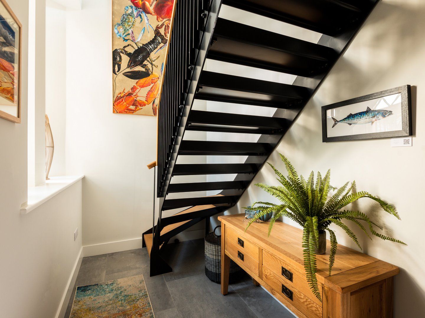 Amenities Air source heat pump central heating with woodburning stove. Electric double oven and hob, microwave, fridge, freezer, washing machine, tumble dryer, wine fridge. 4 x TVs, WiFi. Fuel, power inc. in rent. Bed linen and towels inc. in rent. Private parking for 2 cars. Type 2 EV electric car charging point. Front patio with furniture. Sorry, no smoking. Shop and pub 0.2 miles, beach 0.5 miles. Note: There are steps up to the property entrance, please take care. Note: There is gated access to the property. Note: There is a ladder up to the second-floor snug, please take care