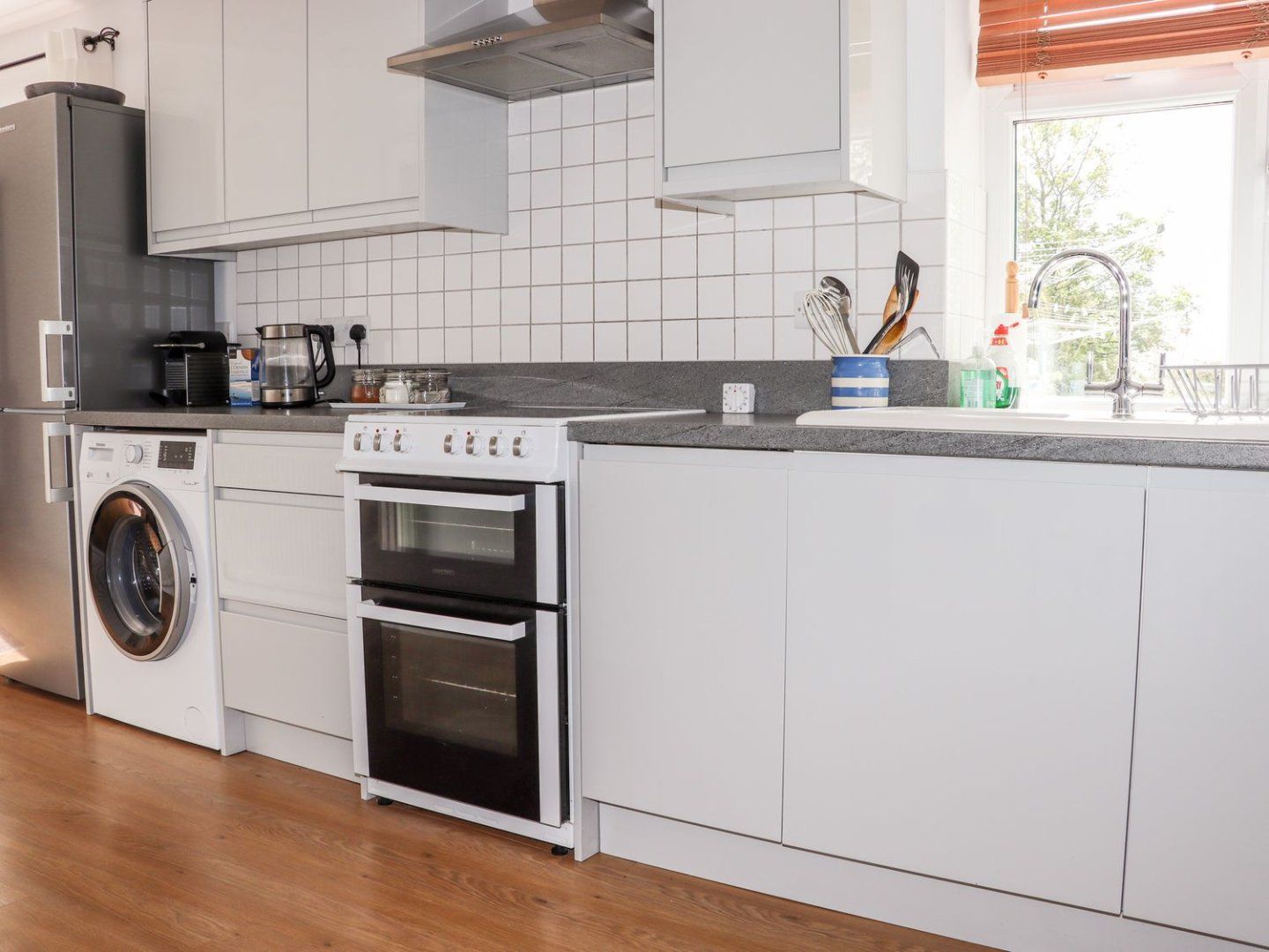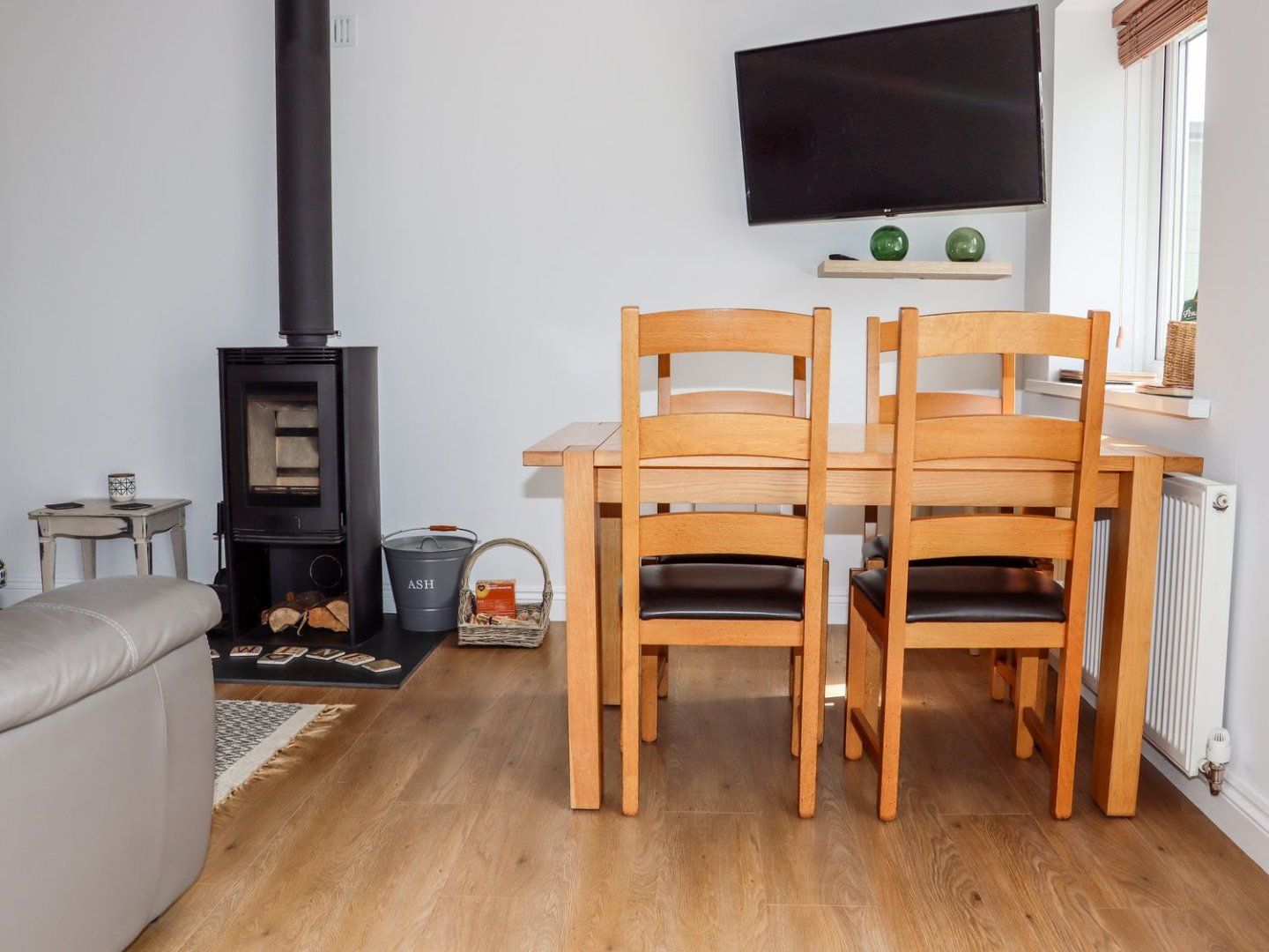 Amenities Woodburning stove. Electric oven and hob, microwave, fridge, washing machine, dishwasher, TV and WiFi. Fuel and power inc. in rent. Bed linen and towels inc. in rent. Ample off-road parking. Enclosed patio with furniture. Two well-behaved pets welcome. Sorry, no smoking. Shop 1.9 miles, pub 0.1 miles, beach 6 miles