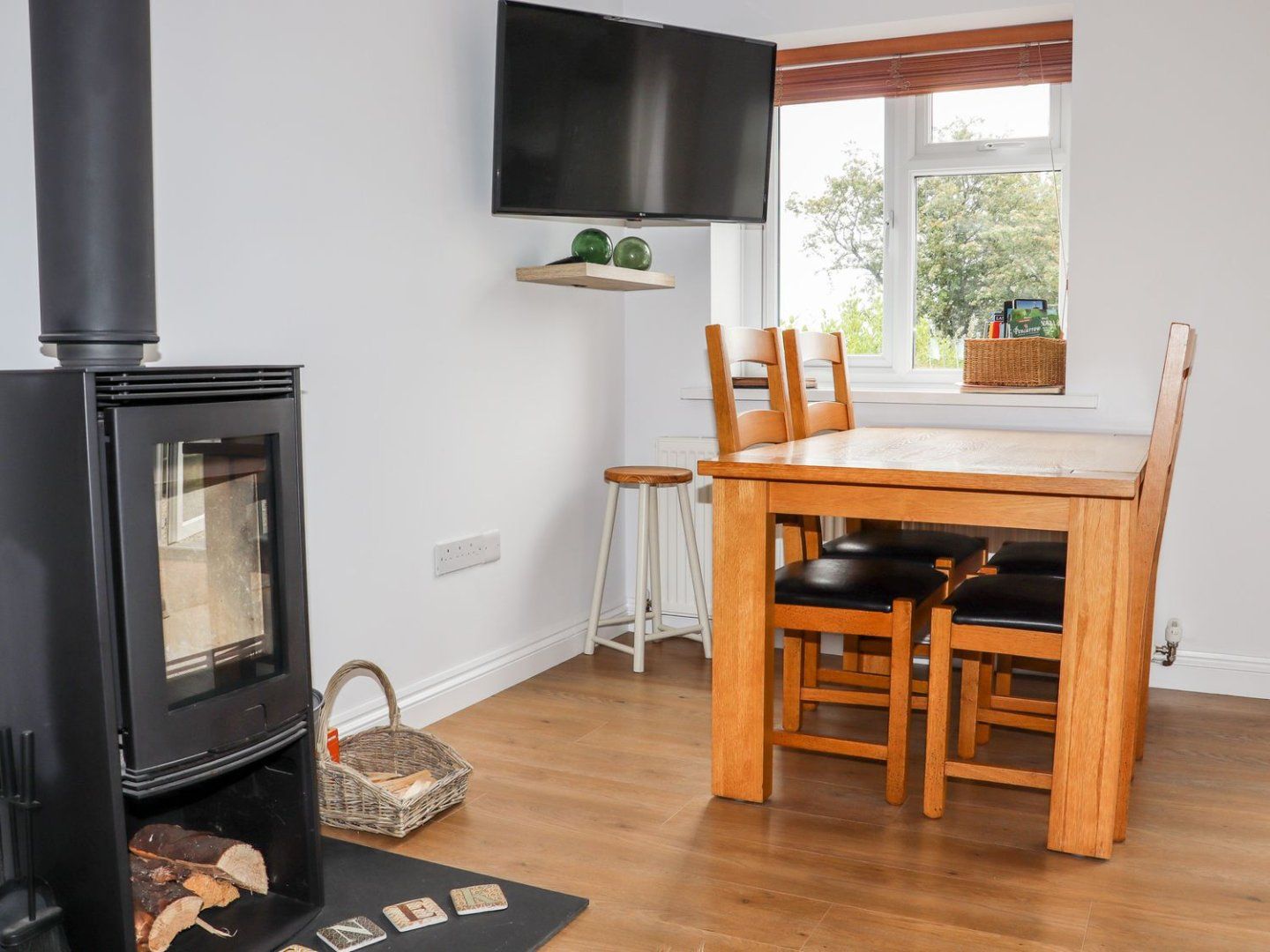 Holiday home The living areas in the property consist of an open-plan living space with a kitchen with an electric oven and hob, microwave, fridge, washing machine, dishwasher, dining seating for four and a sitting area with TV and woodburning stove. The bedrooms consist of a double and a twin bedroom, along with a bathroom. Outside, there is an enclosed patio area with furniture and off-road parking. WiFi, fuel, power, bed linen and towels are all included in the price. Two well-behaved dogs are welcome. Sorry, no smoking. Within 1.9 miles, there is a shop and within 0.1 miles, a pub. For a rural retreat in a charming setting, choose Lowenek.