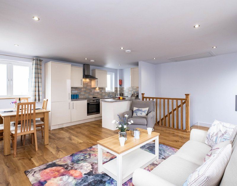 Accomodation Details Reverse-level. One ground-floor king-size bedroom with en-suite walk-in shower, basin and WC. First-floor open-plan living space with kitchen, dining area and sitting area