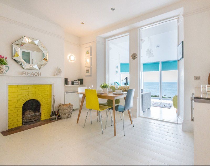 Ground-floor apartment. One bedroom: 1 x double. Bathroom with walk-in shower, heated towel rail, basin and WC. Cloakroom with basin and WC. Open-plan living space with kitchen, dining area and living area with open fire