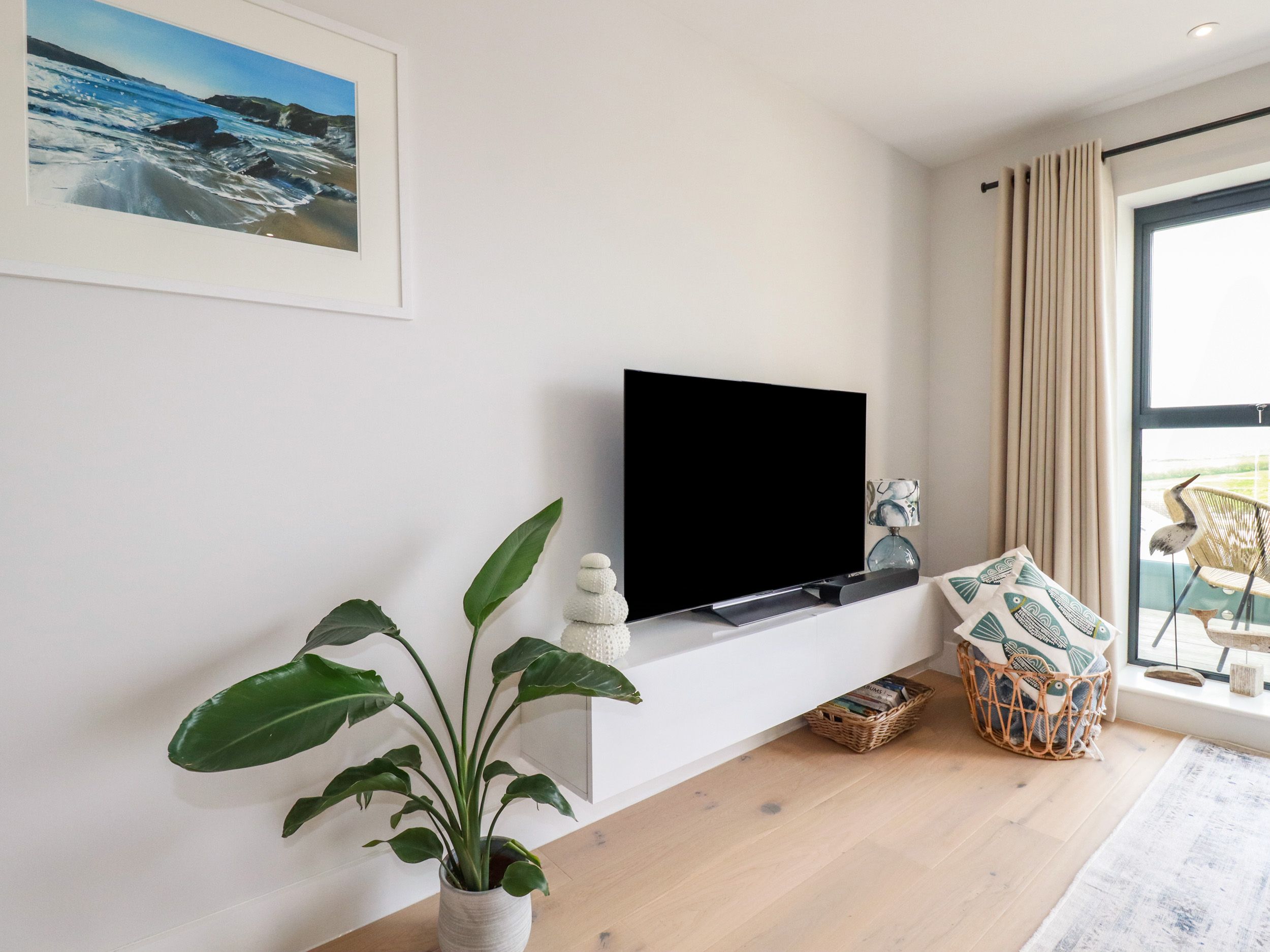 Holiday home The living areas in this reverse-level property consist of a first-floor open-plan living space with kitchen equipped with electric double oven and hob, microwave, fridge/freezer, washer/dryer, dishwasher, Nespresso machine with complimentary pod. Dining area with seating for four guests and a sitting area with Smart TV and balcony with furniture. The ground-floor bedrooms consist of a super-king-size (zip/link, can be twin on request) and a king-size with en-suite shower room, along with a ground-floor bathroom. Outside there is an enclosed rear patio with furniture, as well as off-road parking for one car. Within 0.3 miles you will find a shop and within 0.4 miles, a pub. One well-behaved small dog welcome, when you have made your booking please make do sure you call Sykes to add any pet. Sorry, no smoking. WiFi, fuel, power, bed linen and towels are all included in the price. A highchair and stairgate are also available. 11 Ebbtide welcomes you for an unforgettable escape in Cornwall.