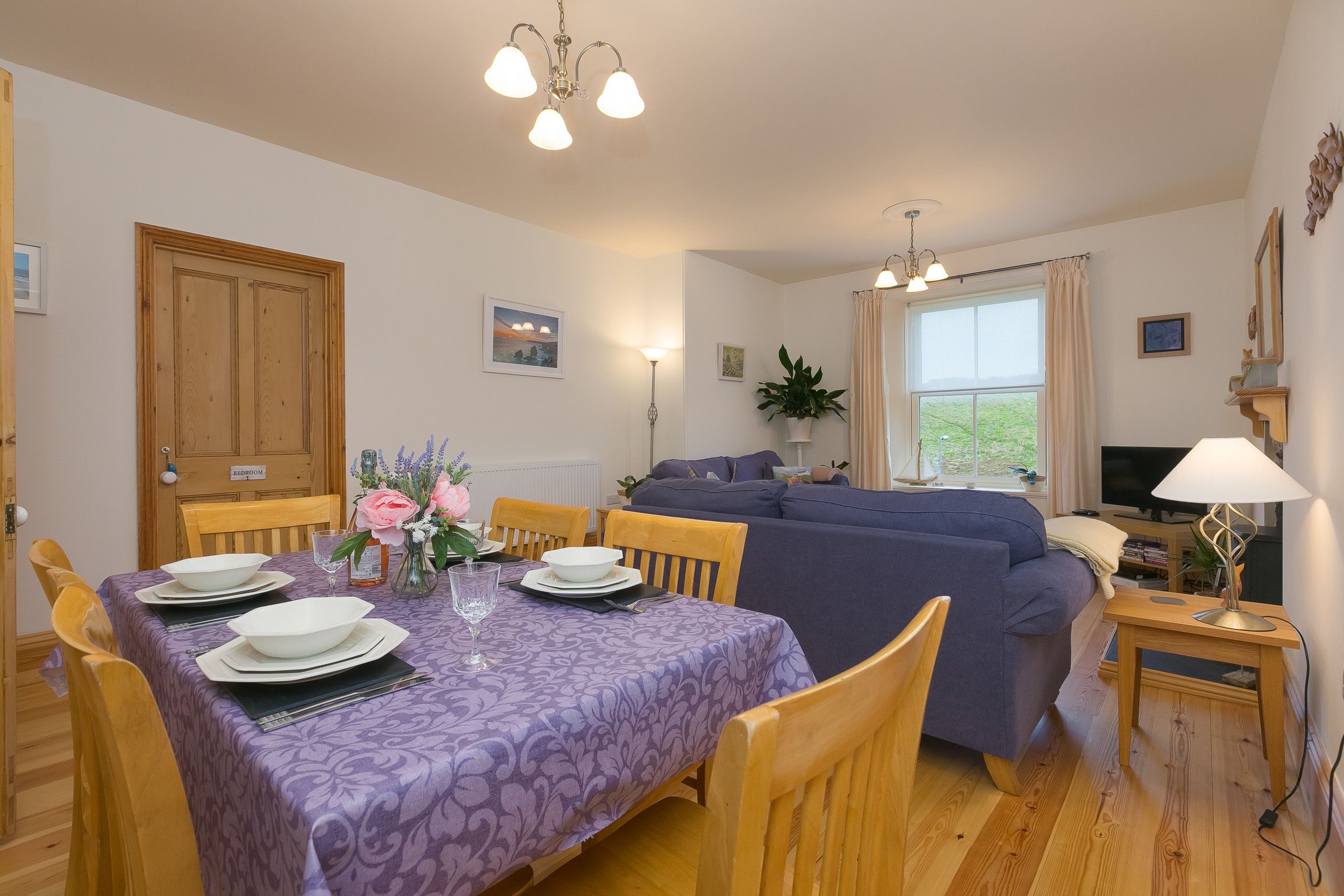 Accomodation Details A gorgeous and spacious first-floor apartment. Providing comfortable accommodation for up to 6 guests. Three bedrooms: 1 x king, 1 x double 1 x twin. Travel cot available on request. Bathroom with bath, shower over, basin and WC. Shower room with walk-in shower, basin and WC.