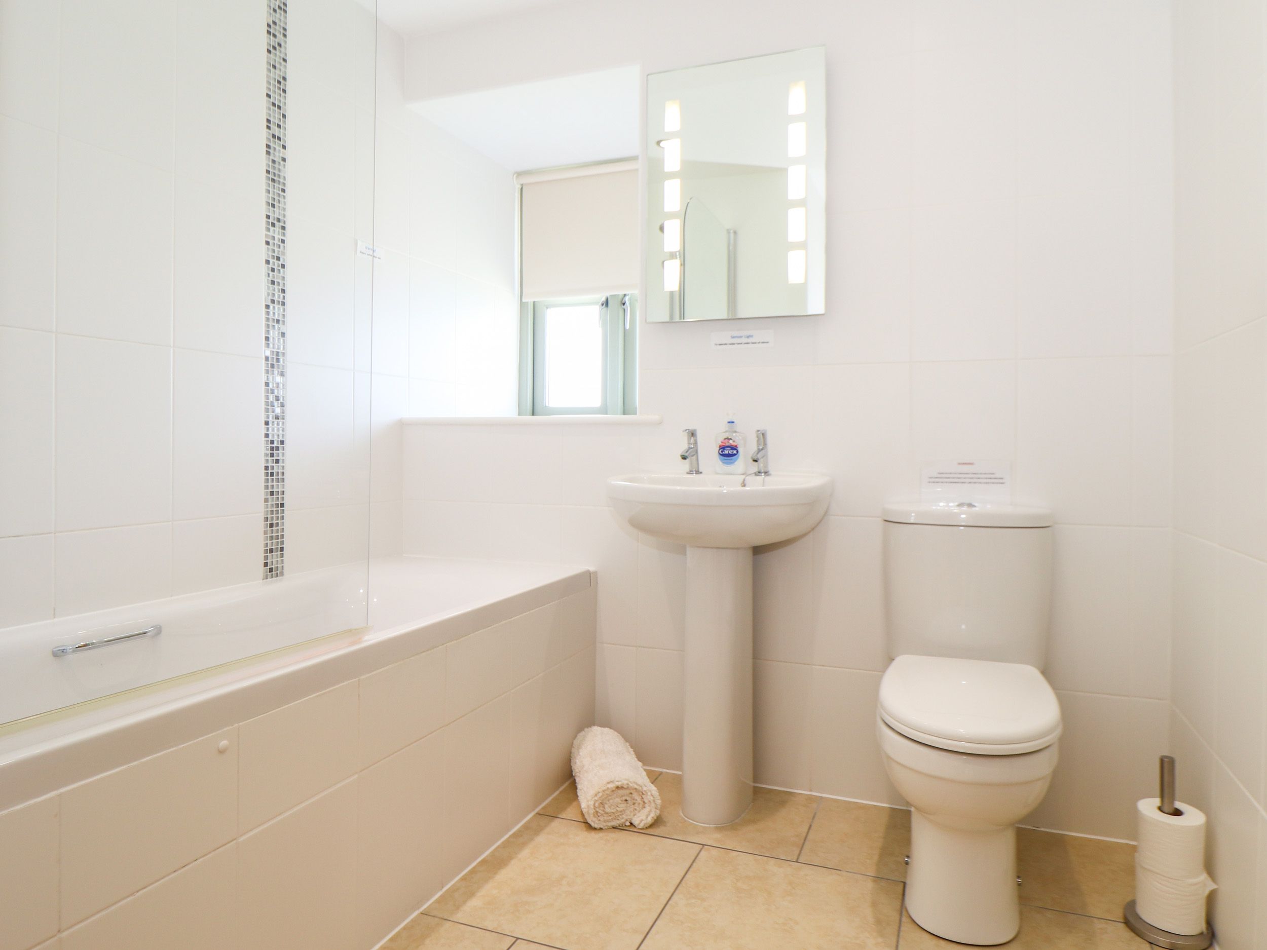Accomodation Details All-ground-floor. Two bedrooms: 1 x double, 1 x twin. Bathroom with bath, shower over, basin and WC. Open-plan living room with kitchen, dining area and sitting area. External utility.