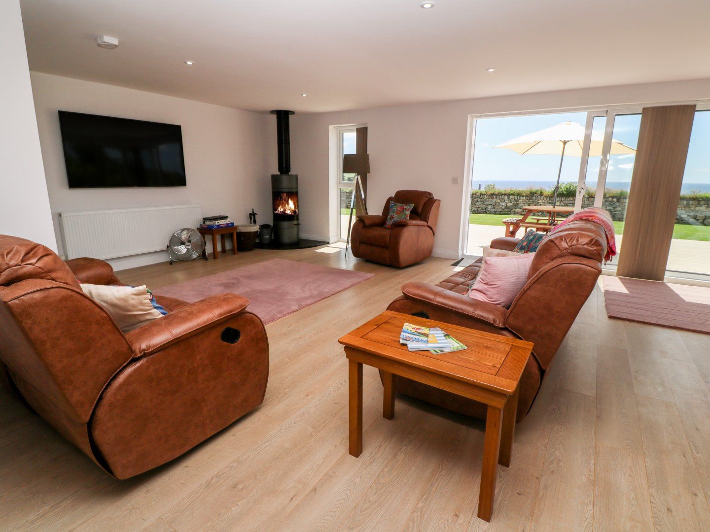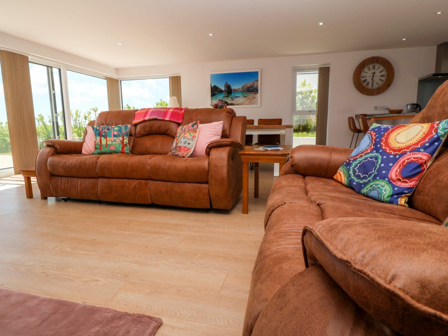 Holiday home Atlantic View is a stunning, newly built property in the village of Germoe, near Praa Sands in Cornwall. This all-ground-floor property has four bedrooms; a king-size double with Sky TV, dressing room and en-suite shower room, two further doubles with TVs and en-suite shower rooms and a double bedroom with TV, served by a bathroom with shower over bath, together sleeping eight guests. The property also consists of a utility/cloakroom and an open-plan living room with kitchen, dining and sitting room. Outside there is off-road parking for two cars, as well as a large front lawn with decking area and furniture, plus a rear, enclosed courtyard. Atlantic View is a wonderful, contemporary retreat in peaceful, rural Cornwall. Two well behaved, medium sized dogs welcome, however, please be aware the garden is not enclosed.