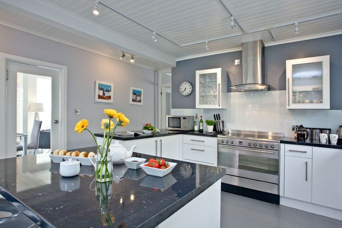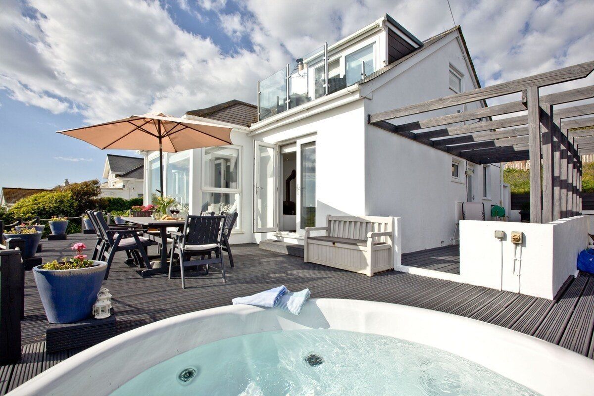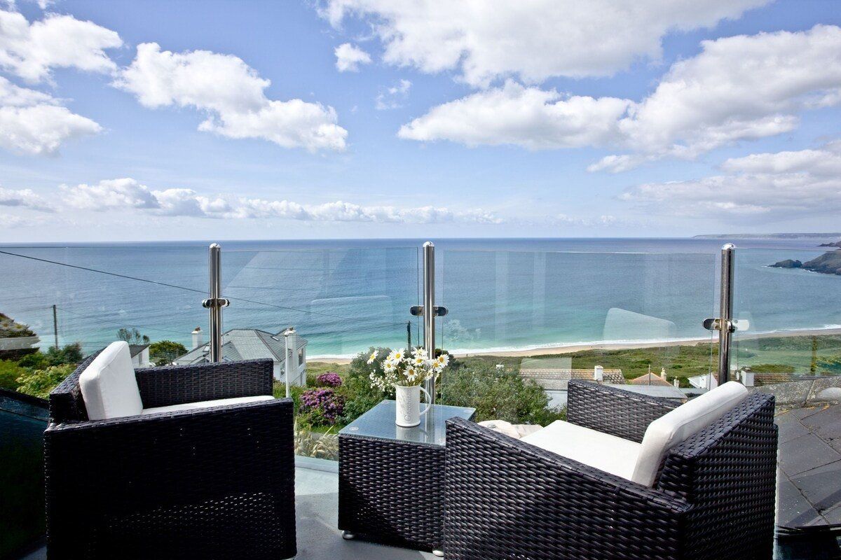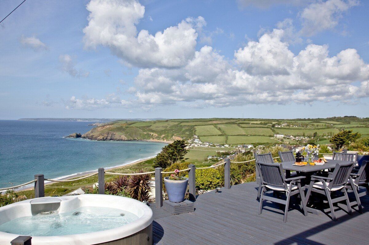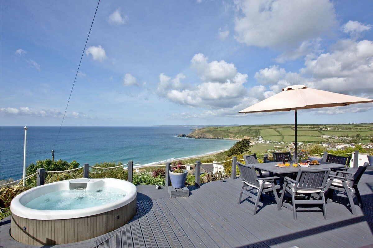 We’re not one for hyperbole, but the views from the terrace of this home really are spectacular. Not only do you have the ocean stretching out as far as the eye can see, but the beautiful bay of Praa Sands also curves down below, and the patchwork fields of south Cornwall lie in the distance. Admire the view from the perfectly placed hot tub, drink a morning coffee on the glass-fronted balcony, or cook a meal on the barbecue to enjoy overlooking the water. Floor-to-ceiling windows in the living room means that you can take in the scene even on cold days – when you may want to fire up the woodburner for a cosy evening in. Aside from walking, surfing and sunbathing on Praa Sands, you’ll also want to explore the nearby village and go hiking along the South West Coast Path, which is easy to reach from this home.