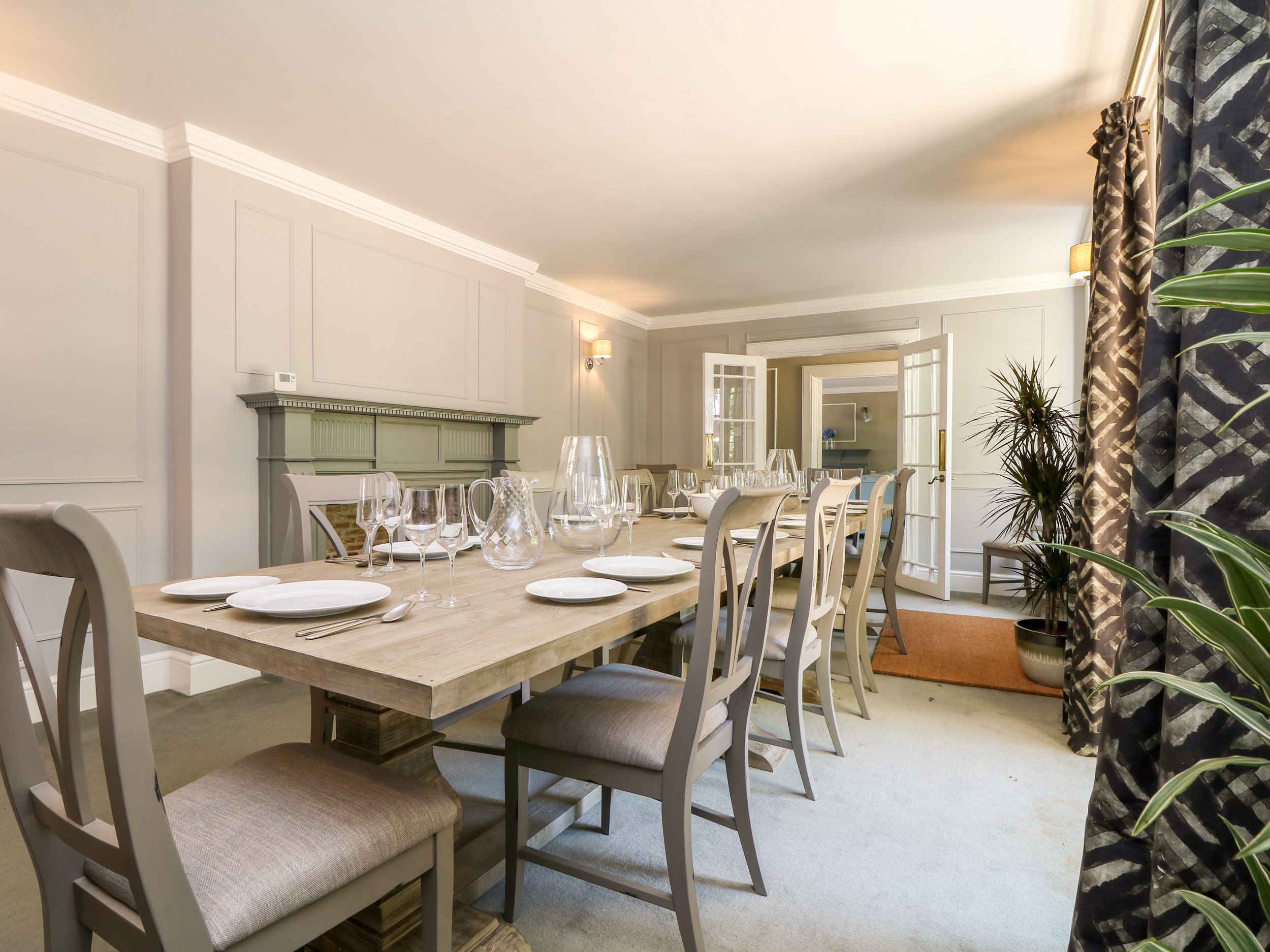Accomodation Details Six bedrooms. 1 x super-king-size bed with en-suite walk-in shower, separate freestanding bath, basin and WC, 1 x family suite with super-king-size bedroom walk-through to single (truckle bed) bedroom and en-suite walk-in shower, basin and WC, 1 x king-size (zip/link beds, can be made into twins on request) with en-suite walk-in shower, basin and WC, 1 x king-size (zip/link beds, can be made into twins on request), 1 x single. Bathroom with walk-in shower, separate freestanding bath, basin and WC. Cloakroom with basin and WC. Kitchen. Utility. Dining room. Sitting room with electric wood burning-effect stove. Cinema room. Bar