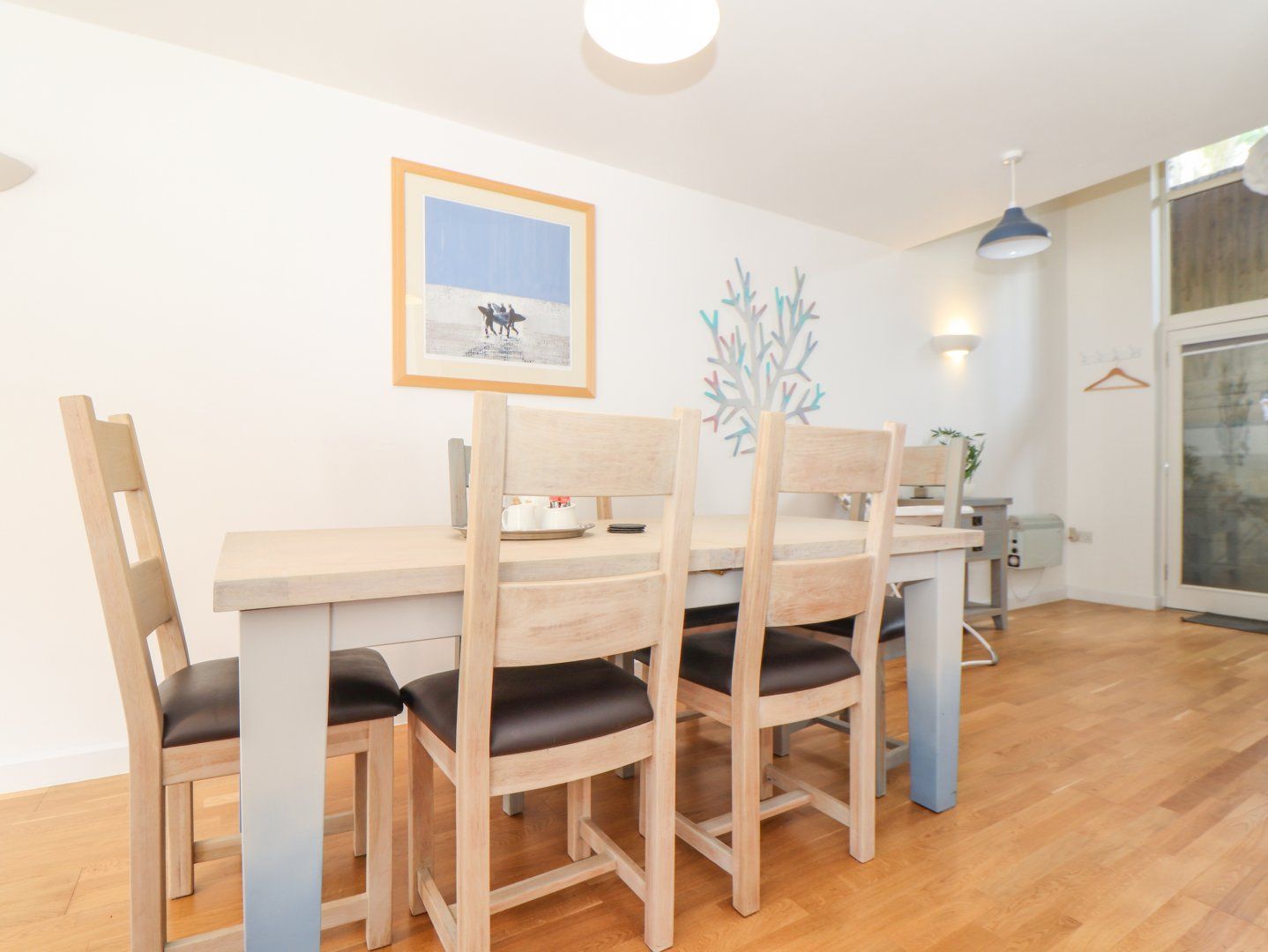 Amenities Electric central heating. Electric oven and hob, microwave, fridge/freezer, washing machine, dishwasher. Smart TV, WiFi. Fuel and power inc. in rent. Bed linen and towels inc. in rent. Highchair available on request. Off-road parking for 1 car. Enclosed back yard with raised decking and hot tub. Two well-behaved pets welcome. Sorry, no smoking. Shop, pub and beach 0.4 miles. Note: There are steps to the exterior