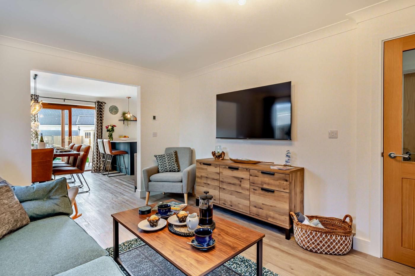 Featuring a cosy lounge, games room and a landscaped garden, this dog-friendly property is well-suited to large families or groups keen to relax in comfort and enjoy easy access to the area’s coastal and rural communities. Tucked away down a quiet residential road, the two-storey property has been finished to a high standard, its rooms painted in muted tones and covered with contemporary soft furnishings.