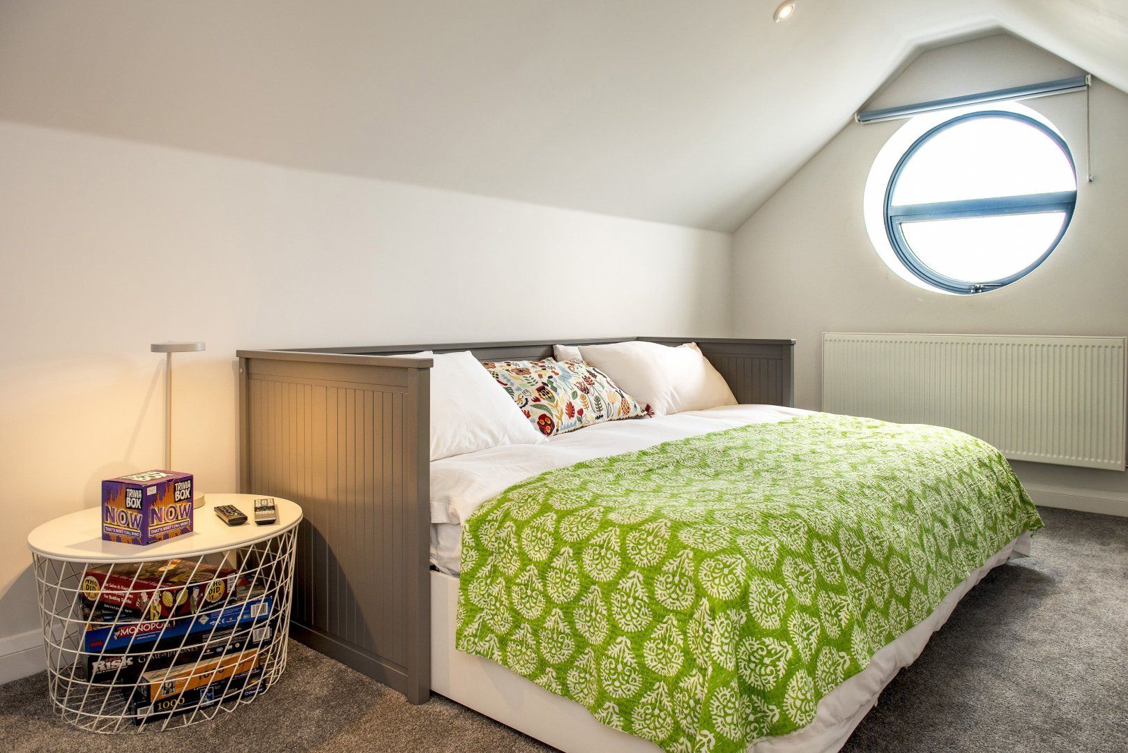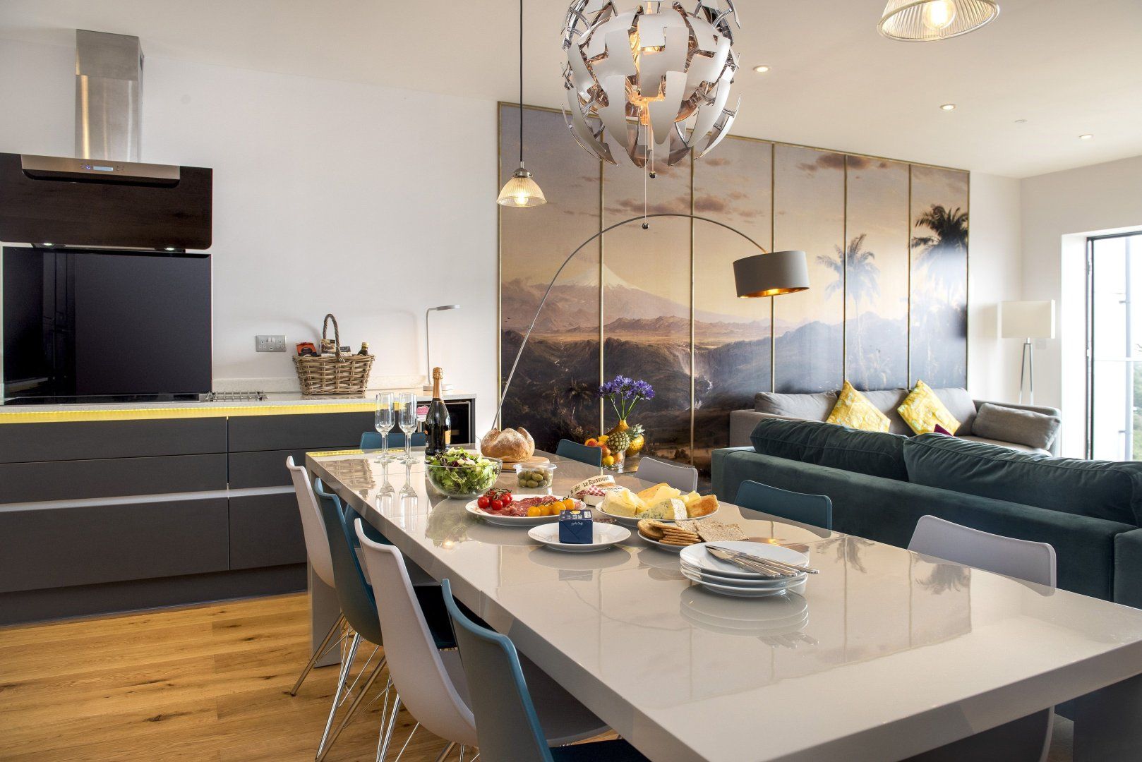 The open-plan living space is a beautiful, contemporary space with huge windows. On rainy days you can flop down on the sofa and watch the waves, before cooking up a hearty family feast in the smart kitchen. When the sun is shining, you'll love relaxing on the balcony with a cool drink. Then, round off each evening with a long, luxurious soak in the hot tub while the kids play table tennis in the games room.