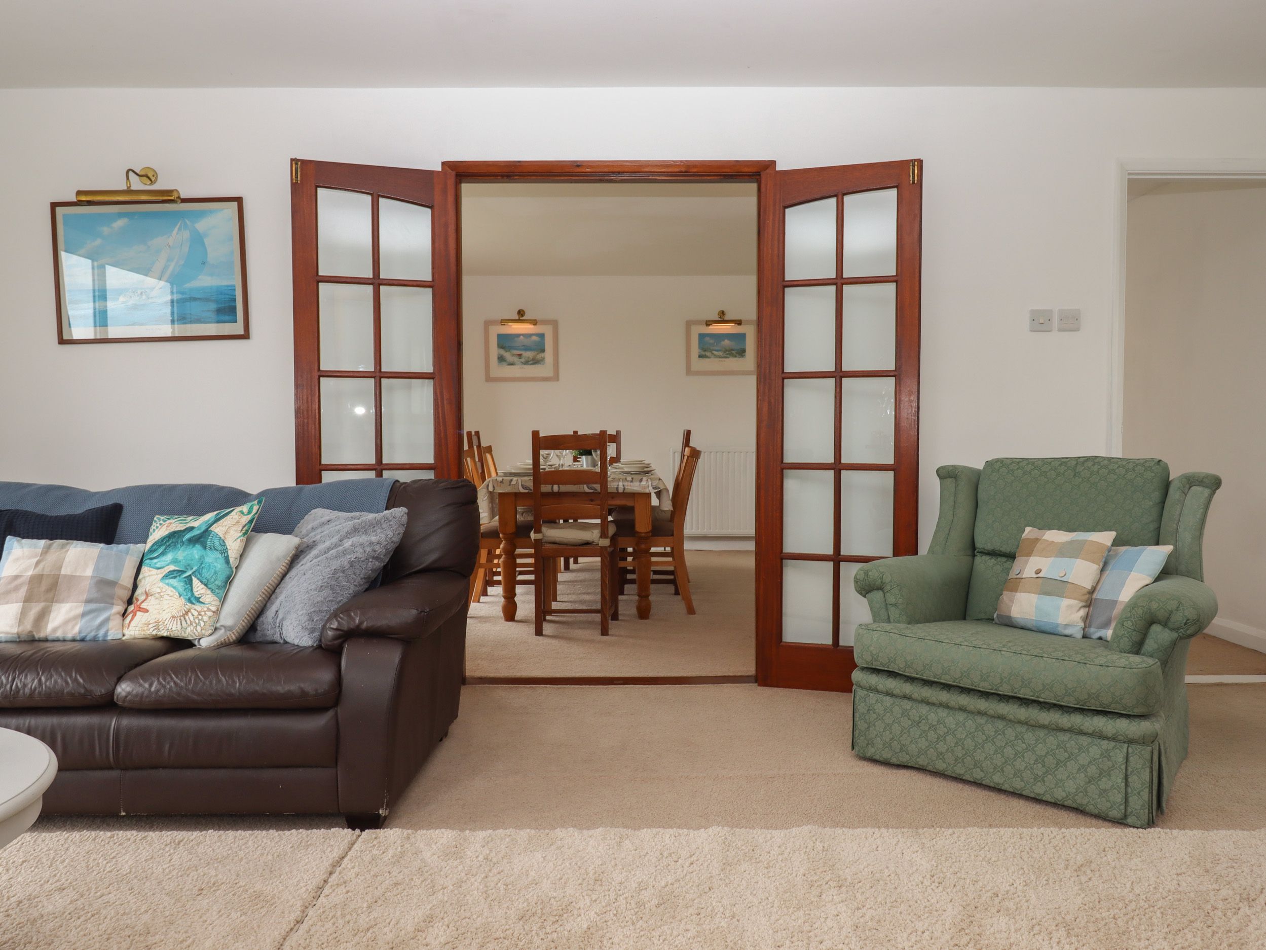 Amenities Oil central heating. Induction range cooker with oven and hob, microwave, fridge/freezer, washing machine, dishwasher. Smart TV, DVD, WiFi. Fuel, power and starter pack for open fire inc. in rent. Bed linen and towels inc. in rent. Off-road parking for 4 cars. Enclosed rear garden with lawn and picnic bench. Sorry, no pets and no smoking. Shop 1.9 miles, pub 1.4 miles, beach 2 miles. Note: The single bedroom also has a single futon for extra sleeping space, if required. Note: There are steps in the garden - please ensure children are supervised.