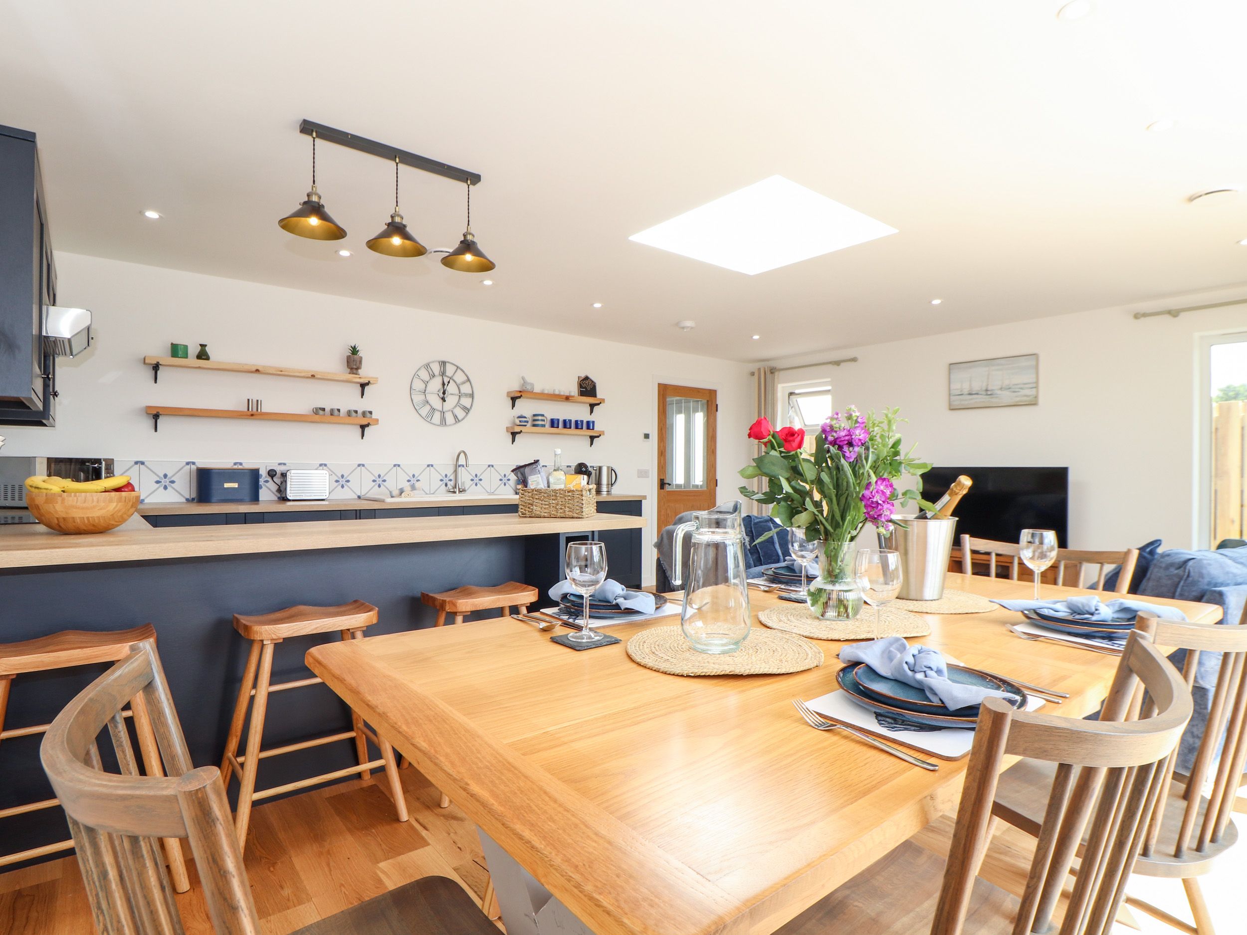 Accomodation Details Single-storey. Two bedrooms: 1 x super-king-size with Smart TV and en-suite walk-in shower, basin, and WC, 1 x super-king (zip/link can be set up as a twin on request) with Smart TV and en-suite walk-in shower, basin, and WC. Open-plan living space with kitchen, dining area and sitting area