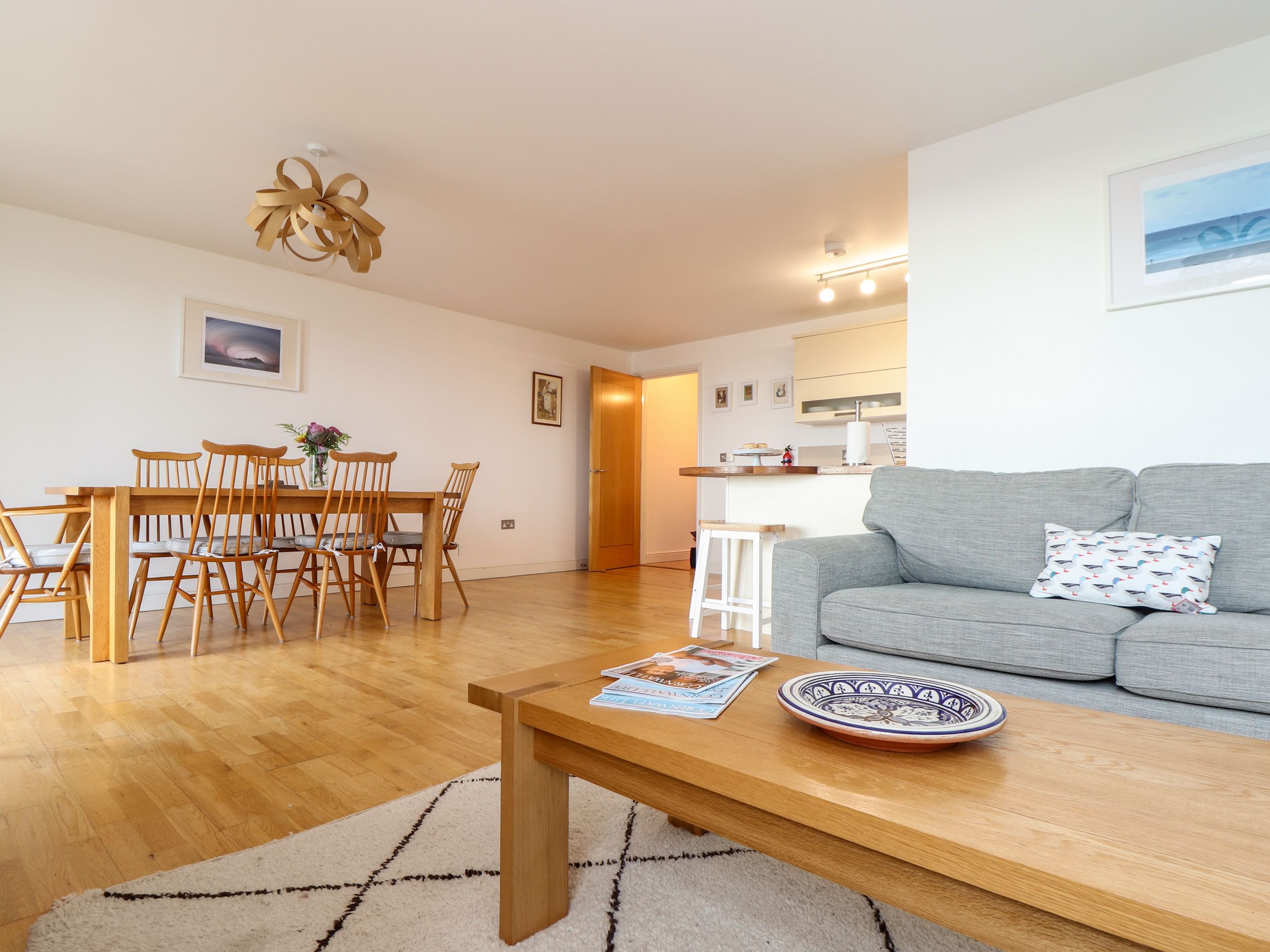 Holiday home Ocean Blue is a wonderful all-ground-floor apartment resting in Praa Sands on the coast of Cornwall. Inside there are two bedrooms, consisting of a king-size with an en-suite shower room and a twin (zip/link) suitable to sleep up to four people. There is also a bathroom, an open-plan living space with a kitchen, dining area and a sitting area and a utility. Outside is a private patio with seating, and off-road parking for one car. Ocean Blue is a great base for a family seeking a holiday in Cornwall.