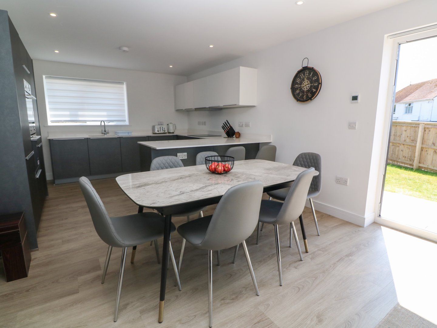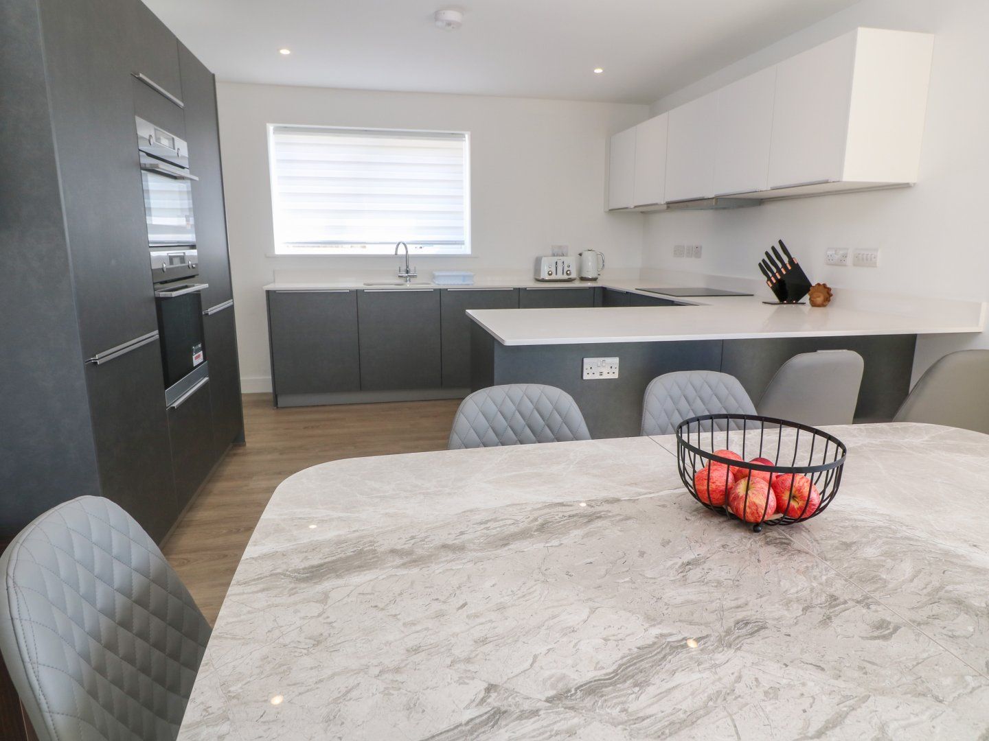 Accomodation Details Three bedrooms: 1 x king-size with en-suite walk-in shower, basin, heated towel rail, and WC, 2 x double. Bathroom with bath, shower over, basin, heated towel rail, and WC. Cloakroom with basin, heated towel rail, and WC. Open-plan living space with kitchen, dining area and sitting area with woodburning stove. First-floor utility