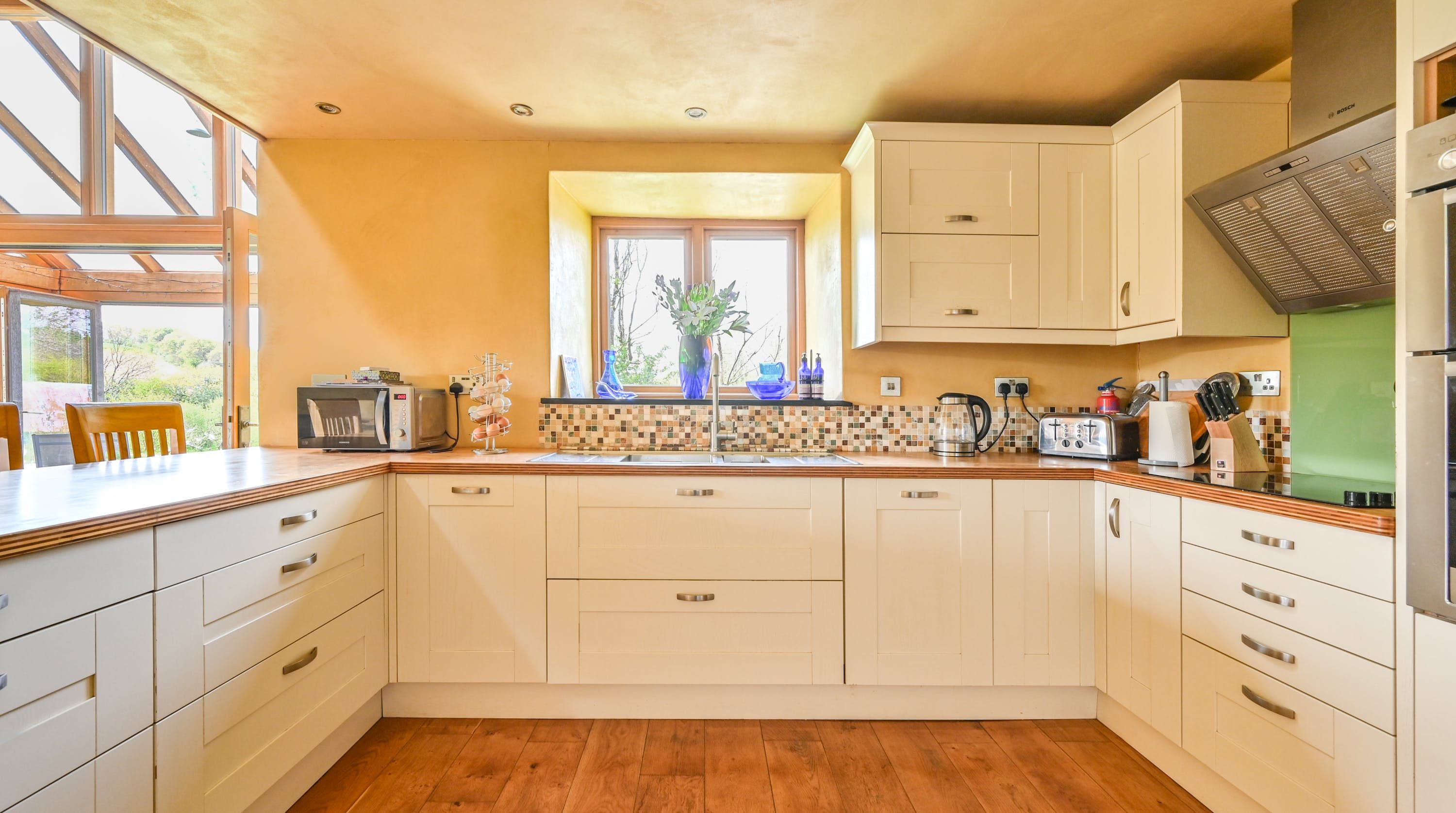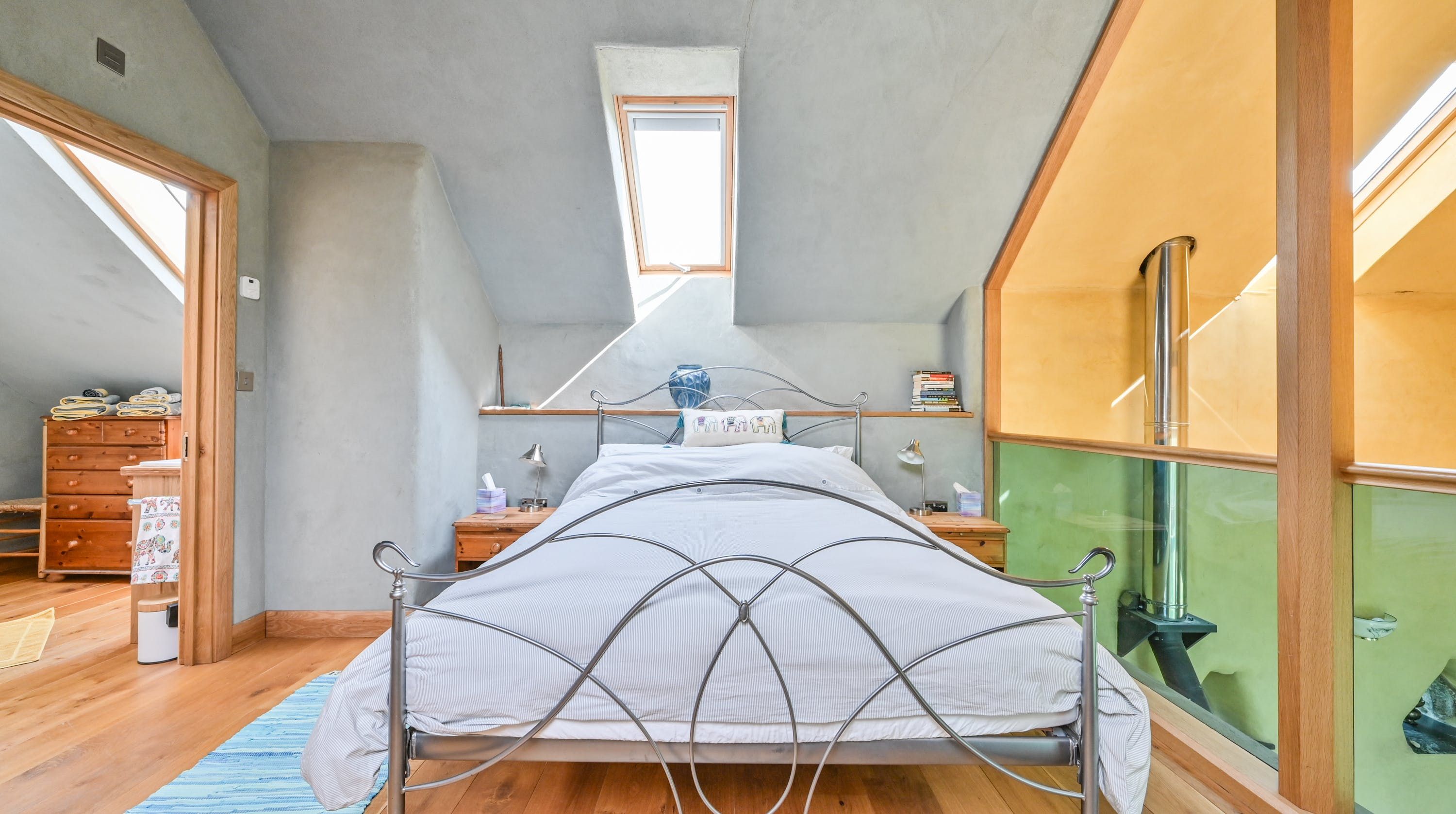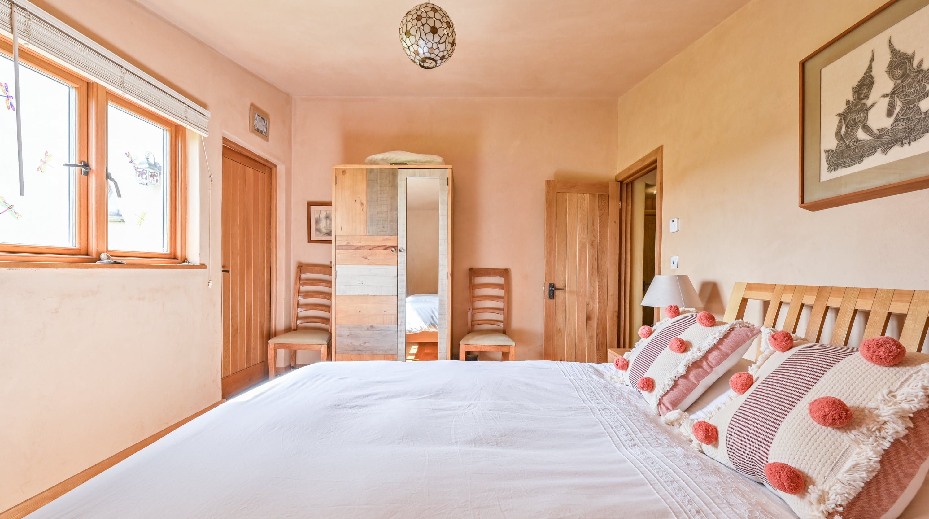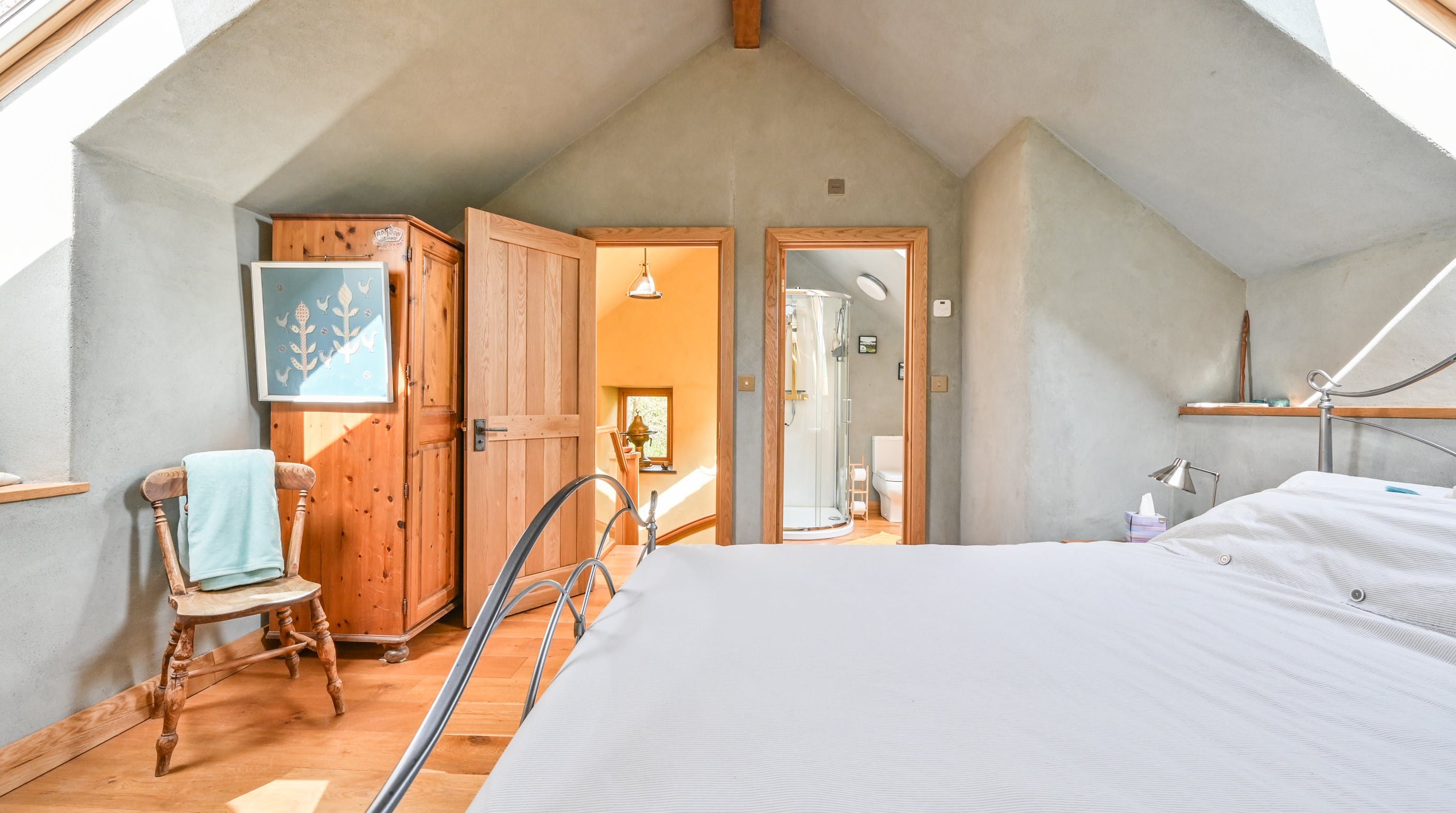 The renovated cob and stone property sits within six acres of idyllic riverside woodland and is built out of natural materials, including oak, lime, cob, pigmented clay plaster and locally sourced slate. Inside, there are a few rustic features, such as the exposed stonework and wood-burning fireplace, but otherwise, it's undeniably contemporary thanks to the conservatory, sleek kitchen and pristine bathrooms. The fact that it's powered by a wind turbine and a heat pump is pretty impressive, too.