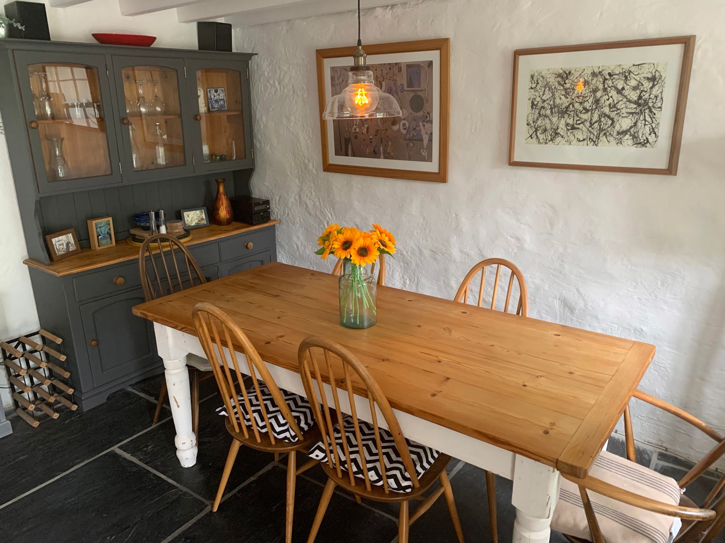 Amenities Oil central heating. Electric oven and hob, microwave, fridge with ice box, dishwasher, kettle, toaster, coffee maker. Smart TV, WiFi, selection of books, sound system with bluetooth. Woodburning stove (logs are readily available to buy locally). Fuel and power inc. in rent. Bed linen and towels inc. in rent. Off-road parking for two cars. Enclosed rear patio with gravelled area, barbecue and furniture. Sorry, no pets and no smoking. Shop 0.6 miles, pub 0.9 miles. Note: Two steps from the living room down into the kitchen. Note: This property has a Good Housekeeping Bond of £250
