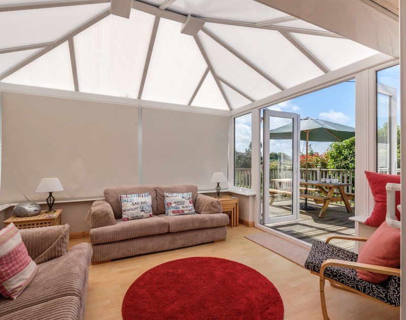 Accomodation Details Five bedrooms; 2 king size (5ft), 1 king size (5ft) with en-suite shower, WC and basin, 1 twin (3ft), 1 bunk beds (3ft). Sitting room. Kitchen with dining area. Bathroom with bath and shower overhead, WC and basin. Separate shower room with shower, WC and basin. Conservatory.