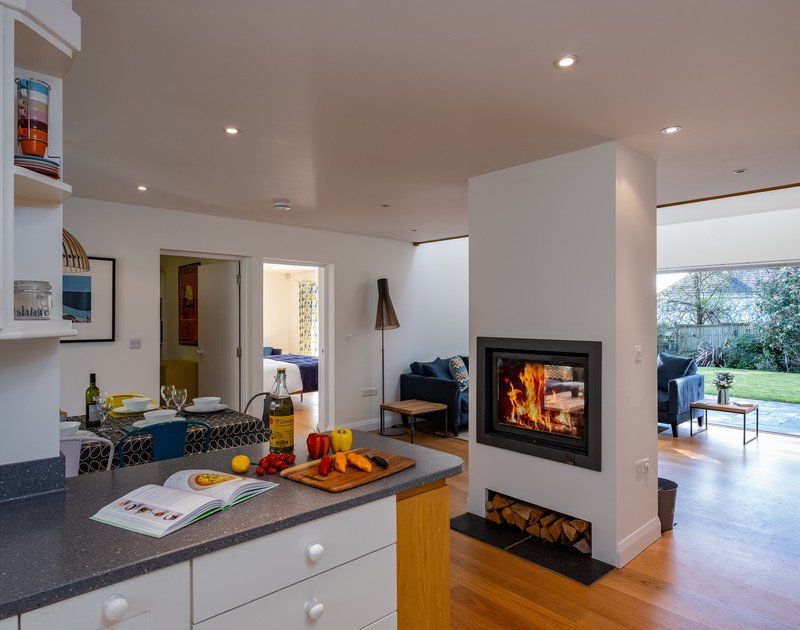 Accomodation Details Four bedrooms: 1 x ground-floor super king-size with en-suite bath, basin and WC, 1 x king-size with en-suite walk-in shower, basin and WC, 1 x twin with en-suite bathroom, bath, basin and WC (zip/link can be super king-size on request), 1 x ground-floor bunks. Ground-floor shower room with walk-in shower, basin and WC. Open-plan living area with kitchen, dining area and sitting area with woodburning stove. Utility. Summer house/office