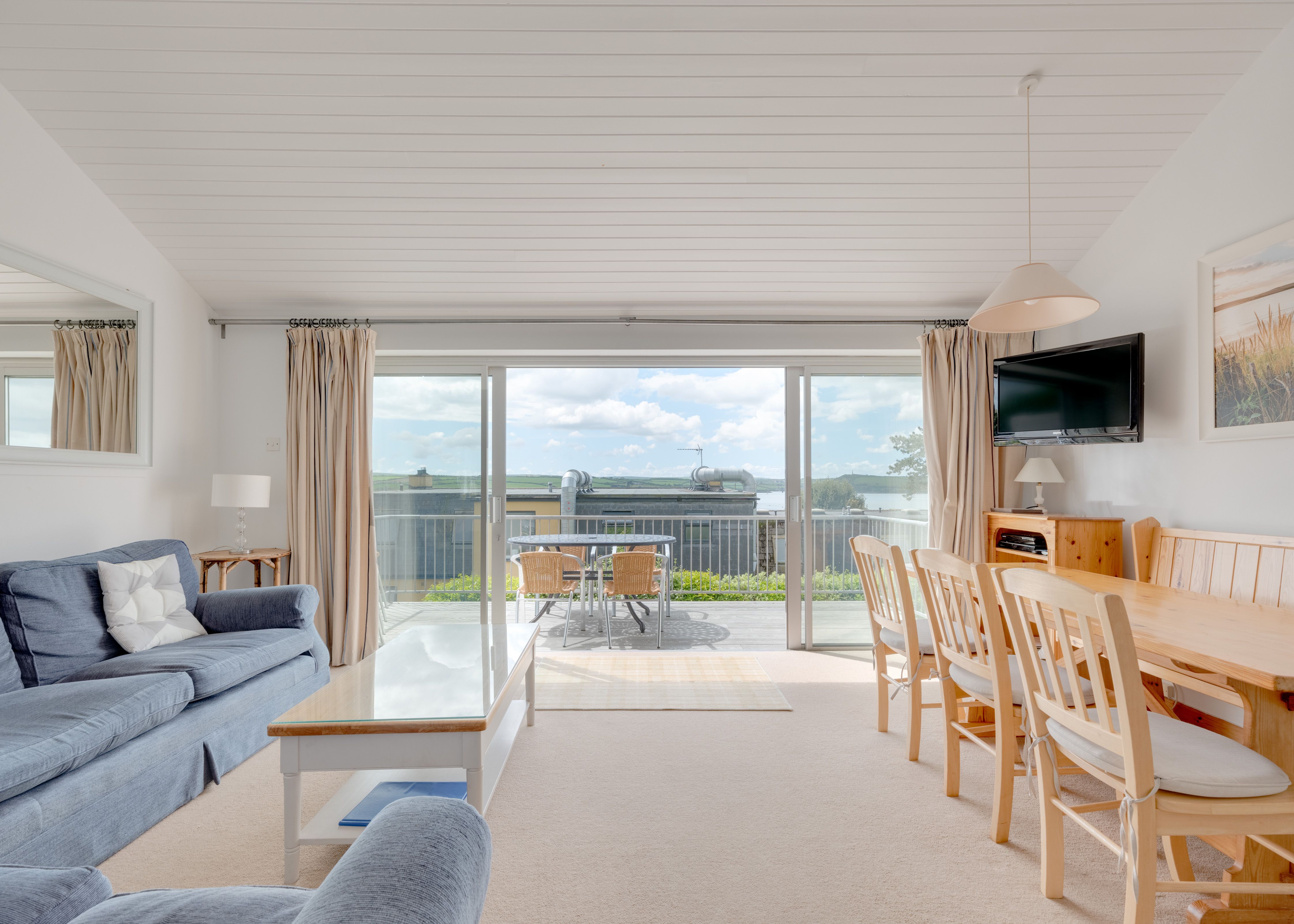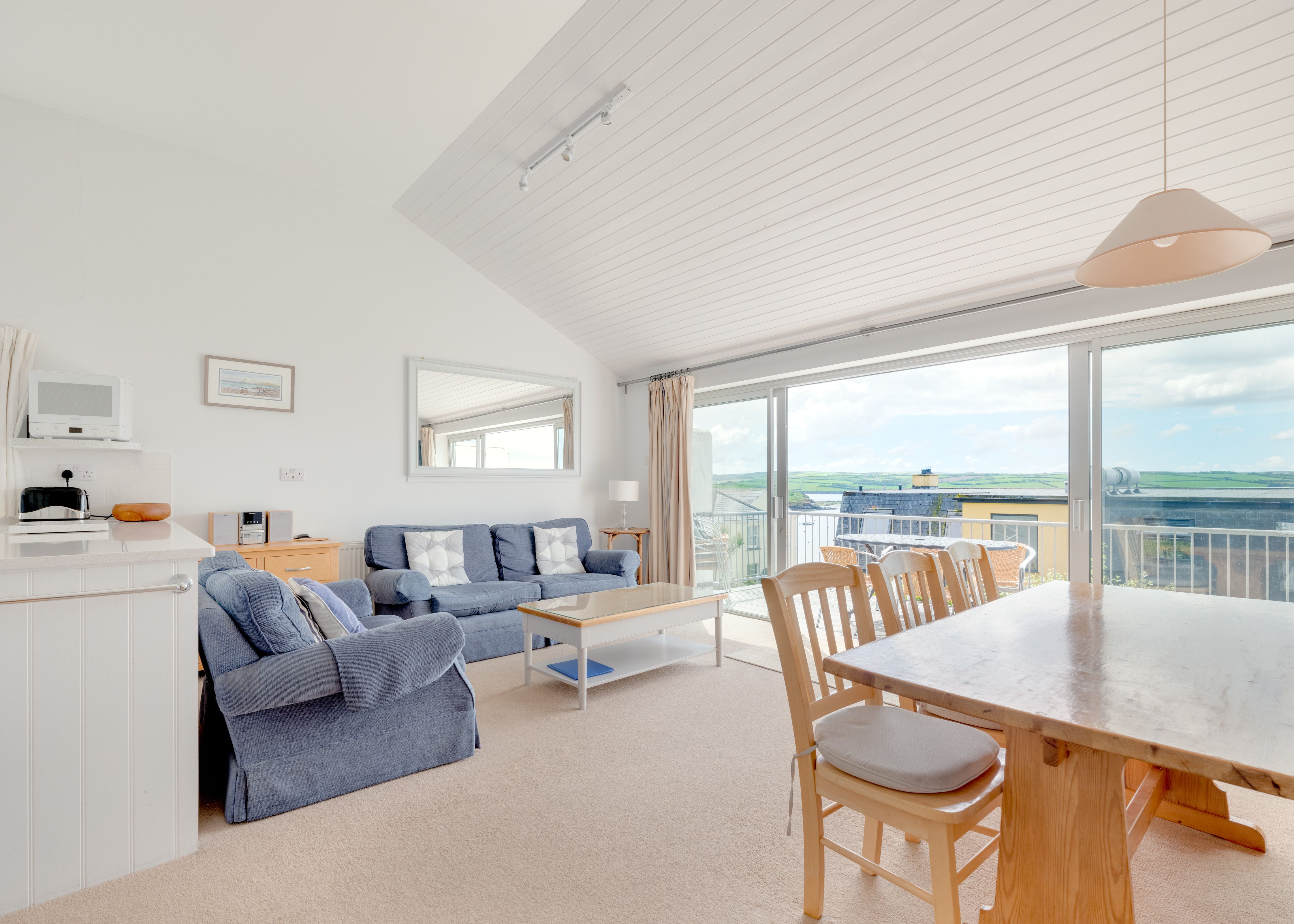 Accomodation Details Over three floors. Four bedrooms: 1 x ground-floor king-size with basin and vanity mirror, 1 x ground-floor 3 foot wide bunk beds with basin and vanity mirror, 1 x second floor 3ft wide bunk bed room, 1 x second floor twin. Bathroom with shower over, basin and WC. Ground floor Shower room, basin and WC. Open plan living area with kitchen, dining area, sitting area and balcony. Utility room.