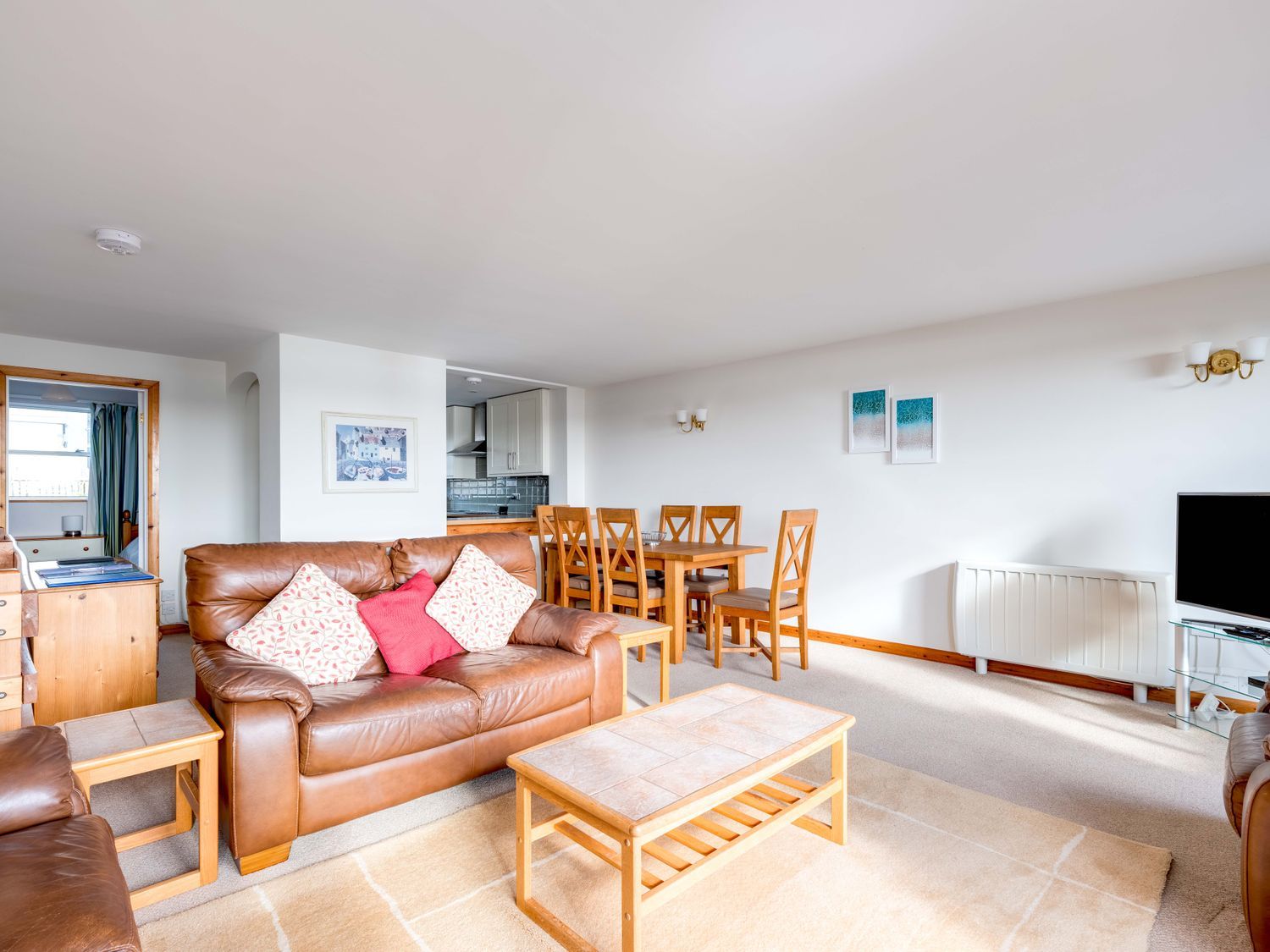 Accomodation Details Reverse-level accommodation. Three bedrooms: 1 x ground-floor king-size, 1 x ground-floor twin, 1 x first-floor small twin. Bathroom with bath, shower over, basin and WC. Shower room with shower, basin and WC. Kitchen. Utility. Living/dining room with balcony