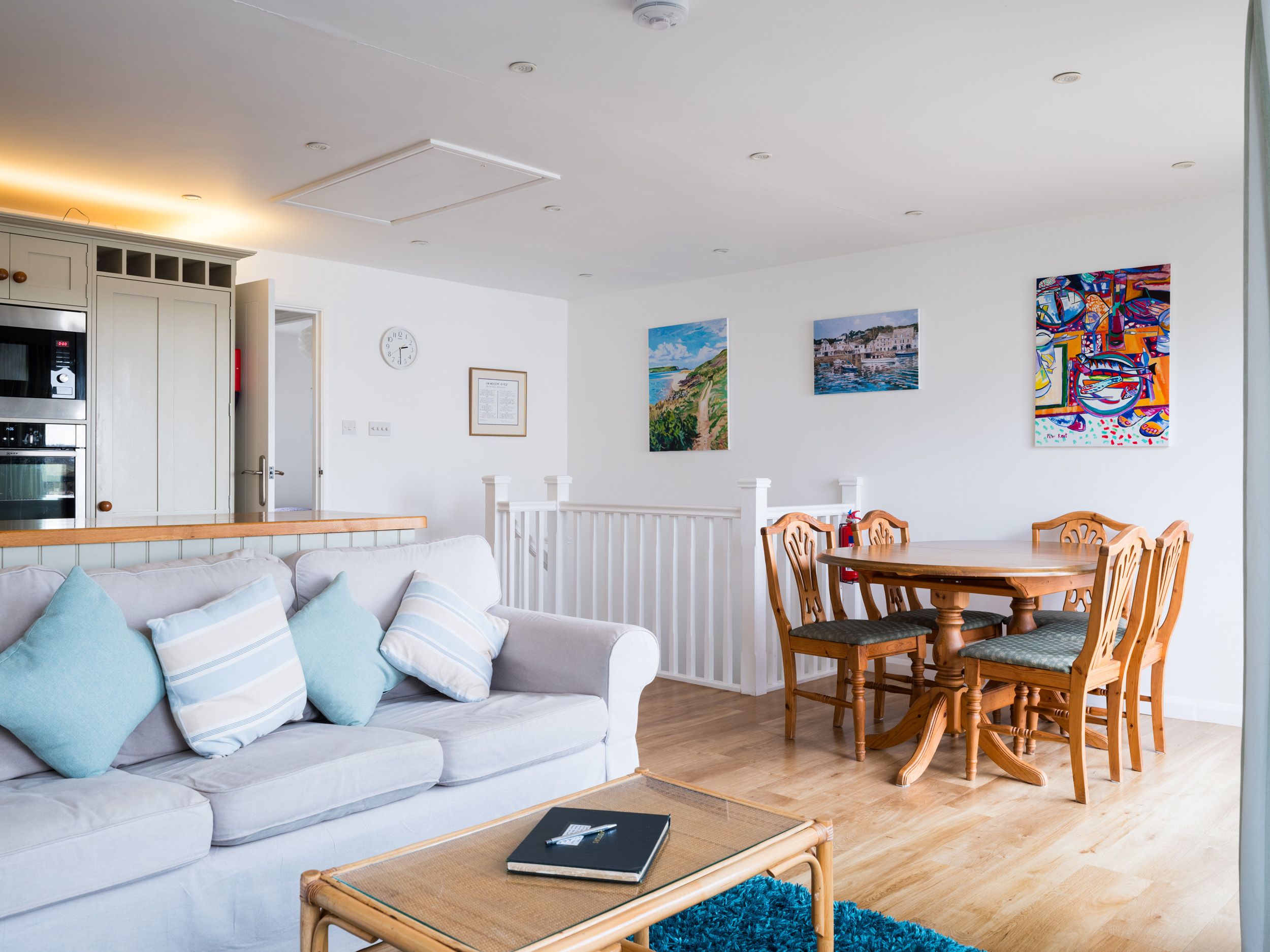 Accomodation Details Three bedrooms: Reverse level accommodation. 1 x ground floor king-size double with en-suite bathroom, bath, shower over, basin and WC, 1 x twin, 1 x bunk beds (2'6). Bathroom with bath, hand held shower, basin and WC, ground floor shower room with basin and WC. First floor open plan living area with kitchen, dining area and sitting room. Ground floor utility. Snug room.