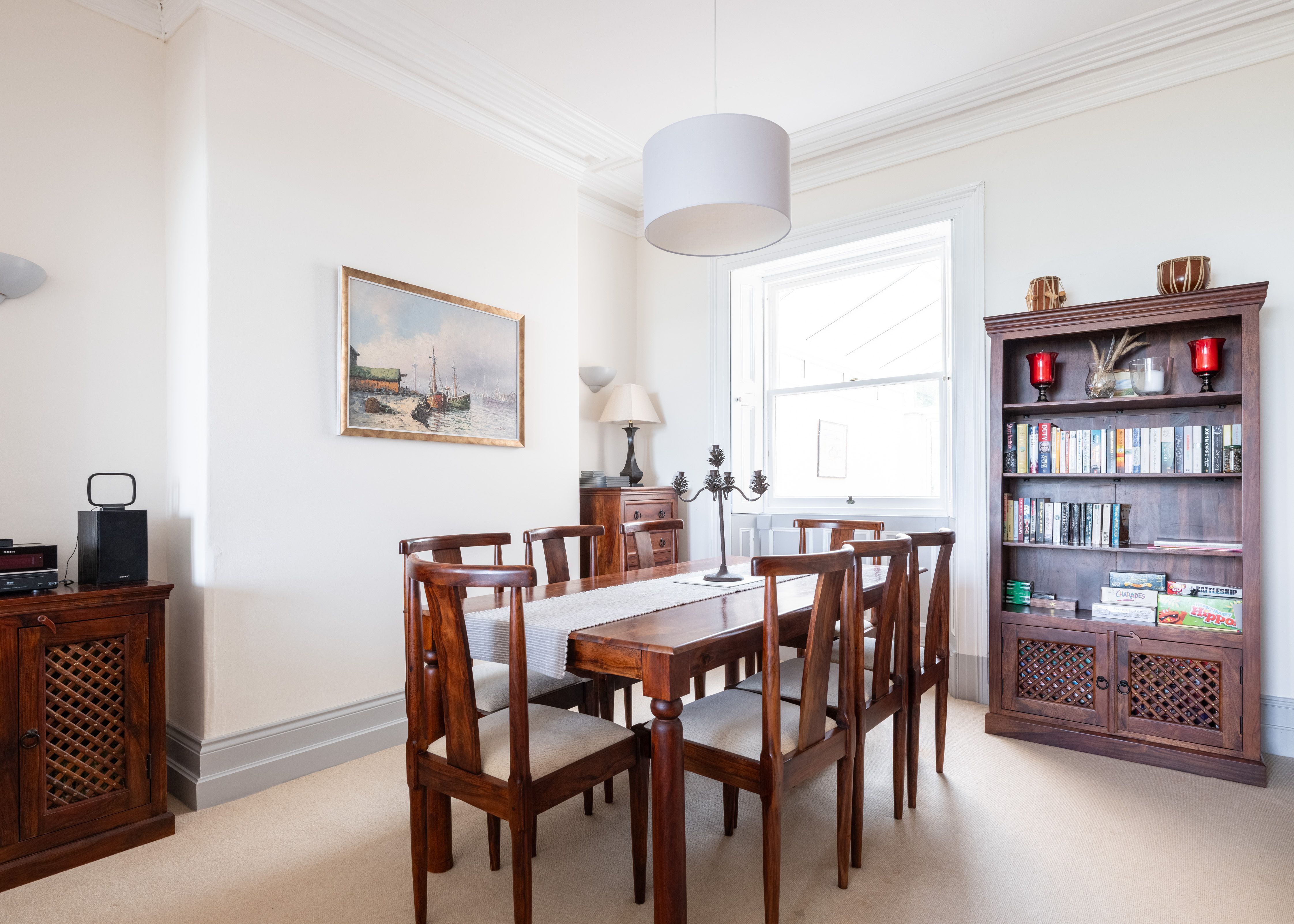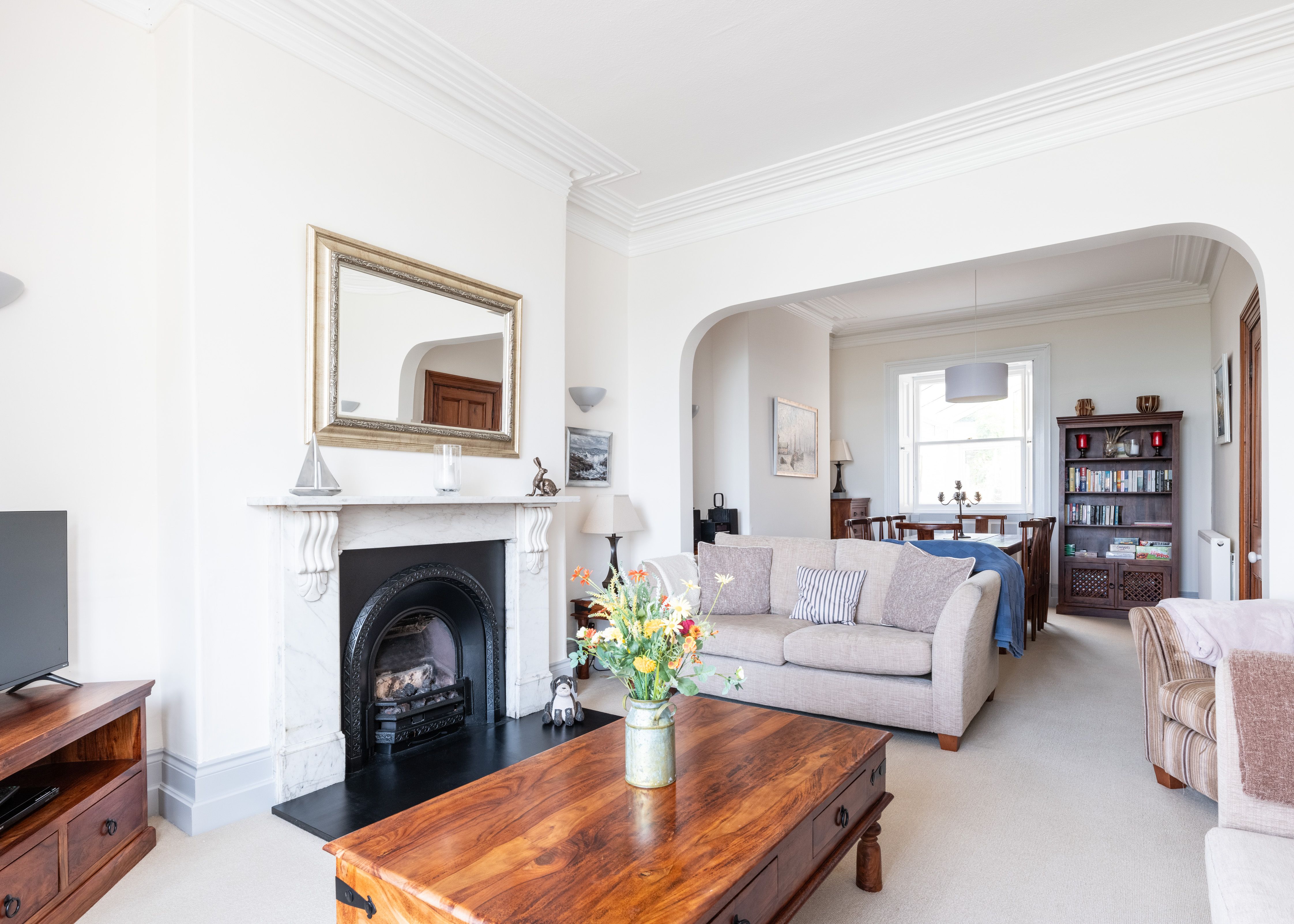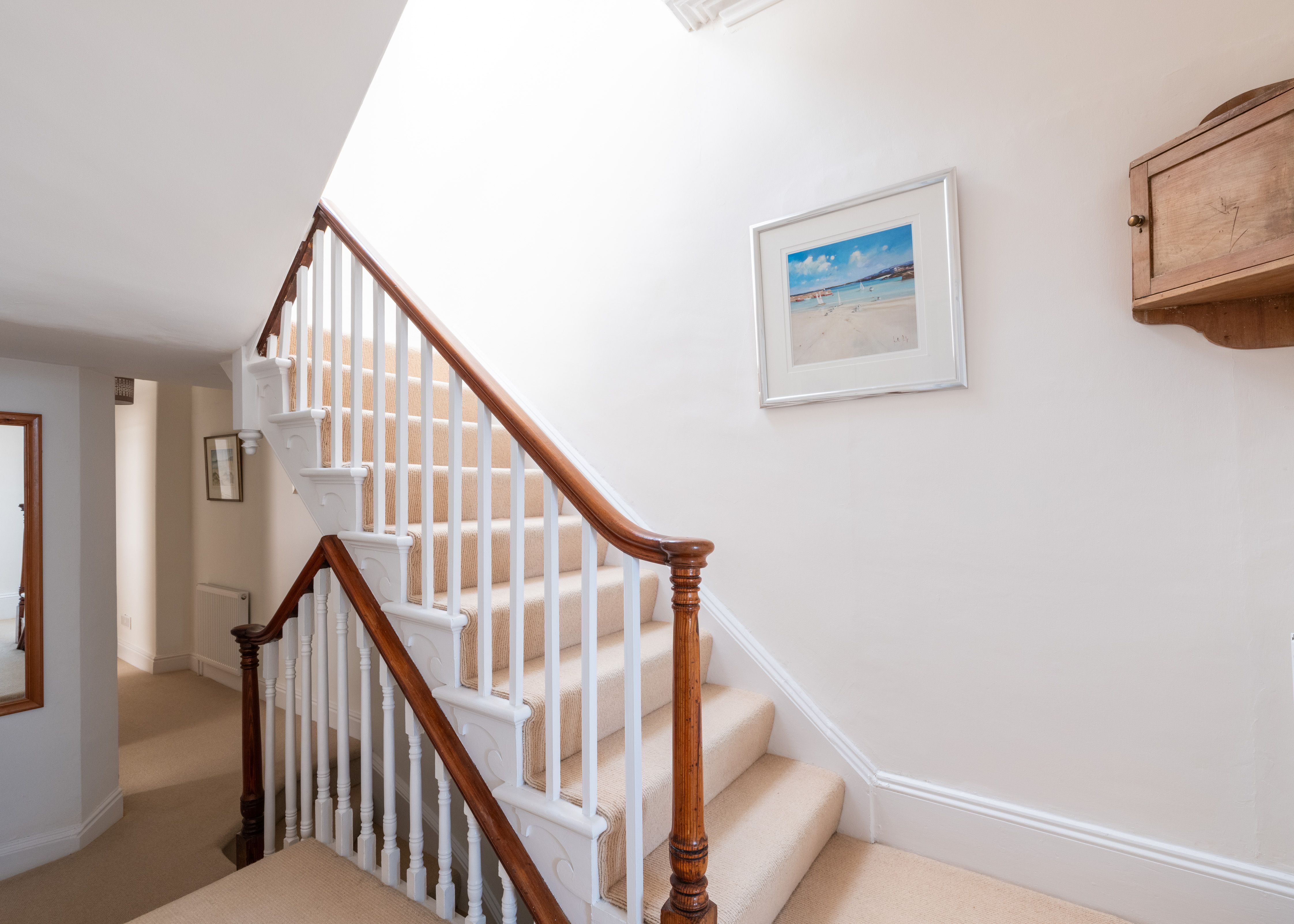 Amenities Oil central heating. Electric oven and hob, microwave, fridge/freezer, dishwasher, coffee machine, washing machine, tumble dryer. Smart TV with Freeview and DVD player, WiFi. Fuel and power inc. in rent. Bed linen and towels inc. in rent. There is one car parking spot at the front and one at the rear of property. Patio with furniture and lawned garden. Sorry, no pets and no smoking. Shop 1.1 miles, pub 0.2 miles. Note: There are steps up to the front door, across 4 floors and up to the lawn in the rear garden – not suitable for those with limited mobility. Note: Reduced head height in top floor bedroom. Note: Check-in from 4:30pm and check-out by 9am. Note: Both tables can squeeze 9 guests on but by default are set for 7/8 guests respectively.