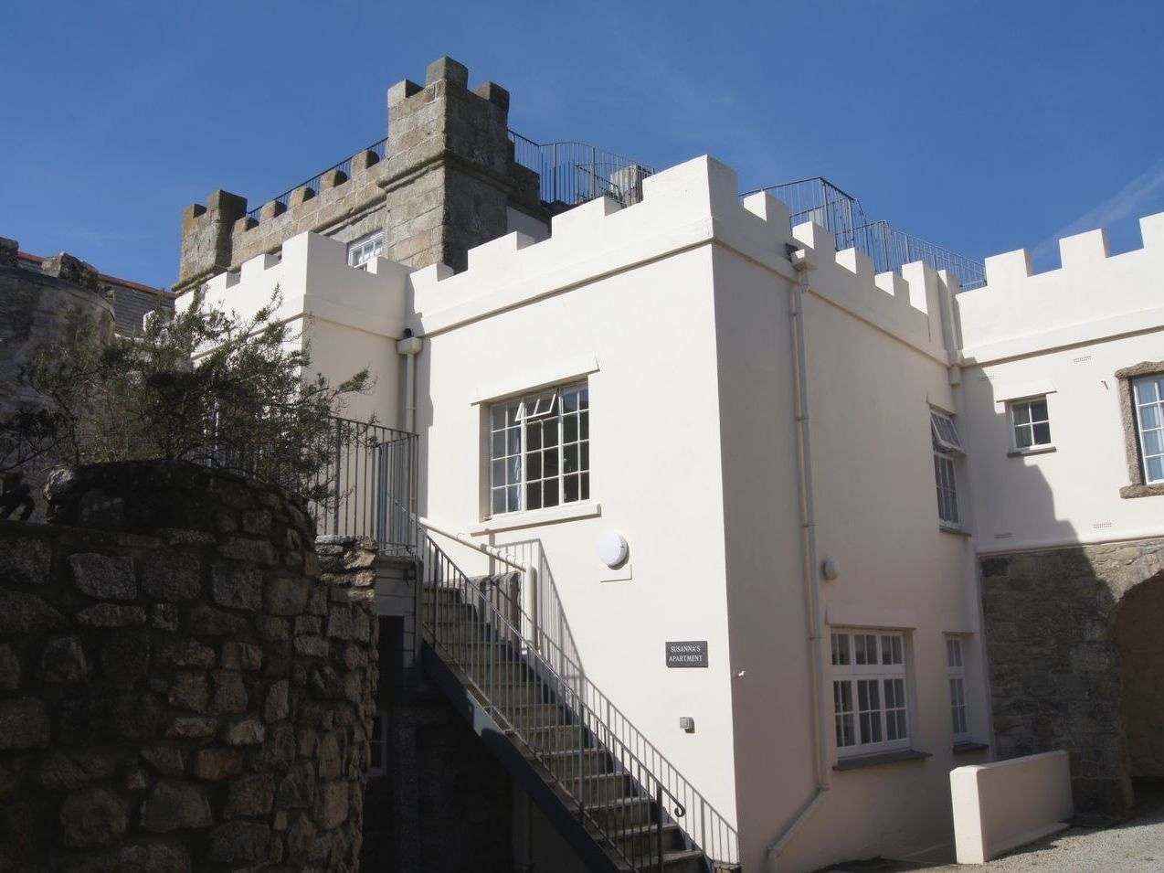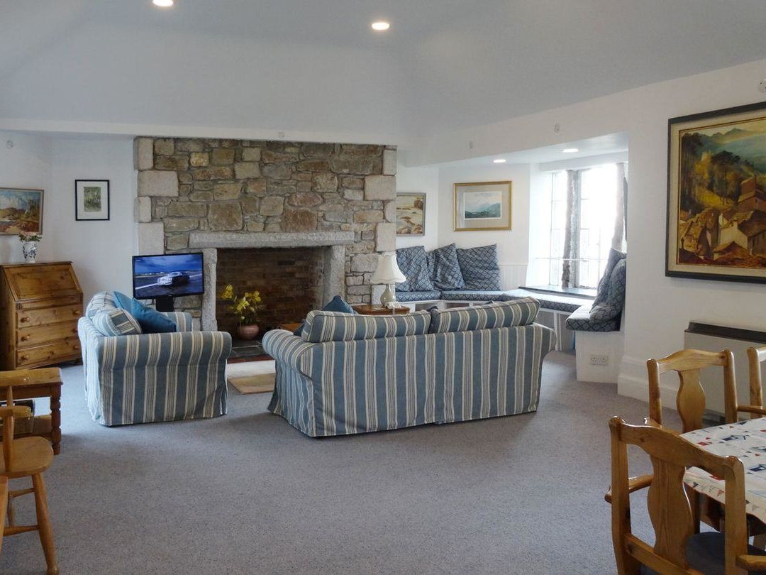 Holiday home Susanna's Apartment is a superb first floor apartment in spectacular Acton Castle, Rosudgeon. With outstanding sea views, this smart apartment sleeps up to four people, has one double bedroom, a twin room and a family bathroom. The huge open plan living area features mullioned windows with window seats and slate floors. Outside you can explore the castle's formal gardens, terraces and sunken garden with pond or take in the beautiful sunsets and views to St Michaels Mount.