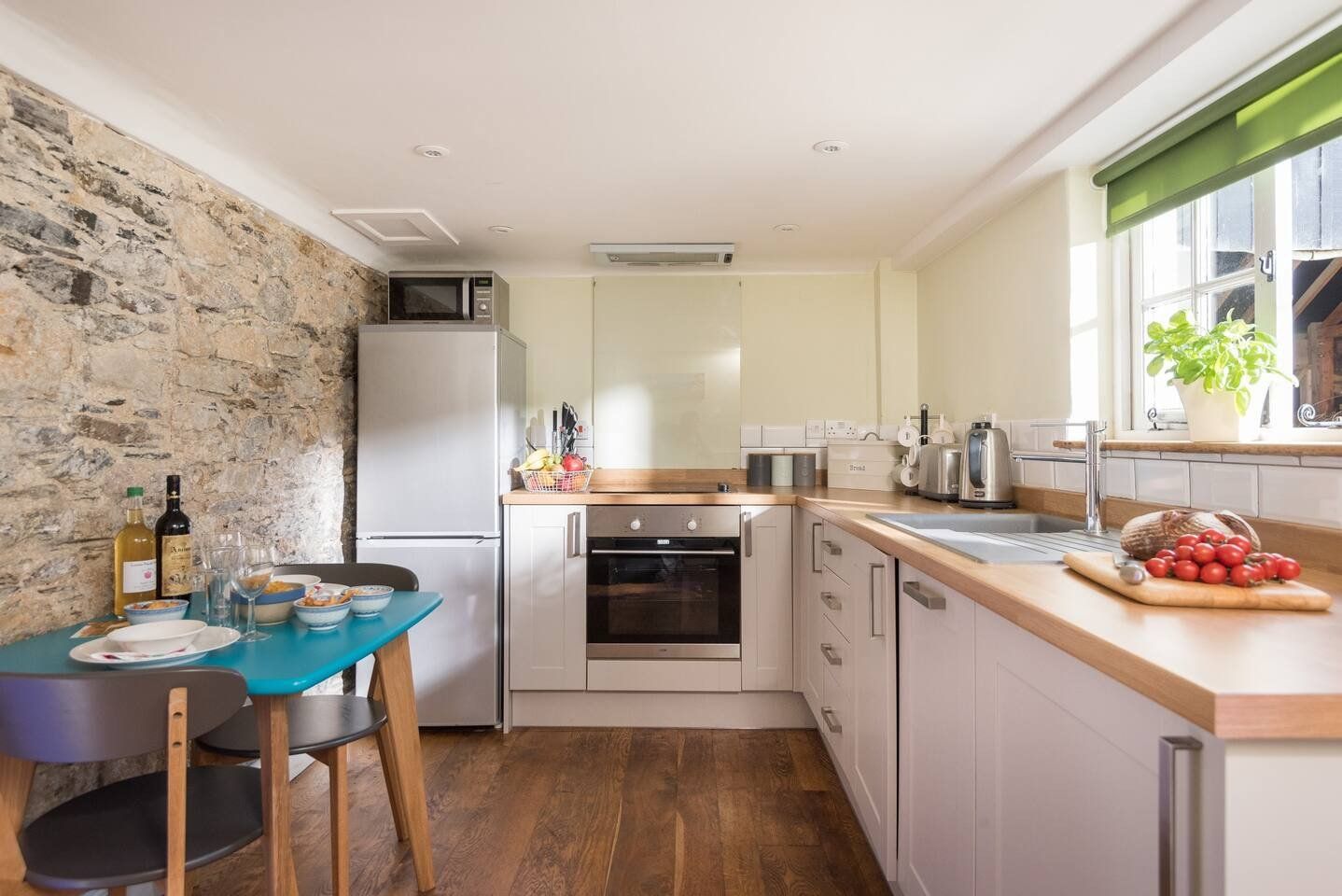 Why choose between coastal and rural settings for your holiday when you can have both? That's what you get at this serenely quiet Cornish retreat. A collection of three beautifully presented homes – including two former barns and a Victorian Gothic-style cottage – it’s located in forty acres of private countryside. On the farm estate, you'll find your own private riverside shingle beach to walk to, and further afield, sandy beaches just 13 miles away. Highlights of the estate include three hot tubs (two electric, one wood-fired), three wood burners, and three flat-screen satellite televisions and DVD players, along with a selection of books, board games, and DVDs. You’ll also have use of the tennis court, orchard picnic area, basketball hoop, communal games room with table tennis, woodland, and nature reserve. For that extra special touch, the hosts can organise private wild food foraging workshops, stand-up paddle boarding tuition, spa treatments, or afternoon tea. Basically, it’s a fantastic group trip destination, whether you’re a party of four or fourteen.