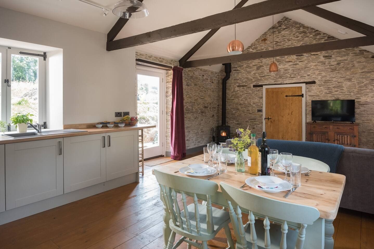 *Thirteen is a comfortable number for a stay here – the barns and cottage sleep thirteen guests in proper beds, three babies in cots, and three guests on single sofa beds