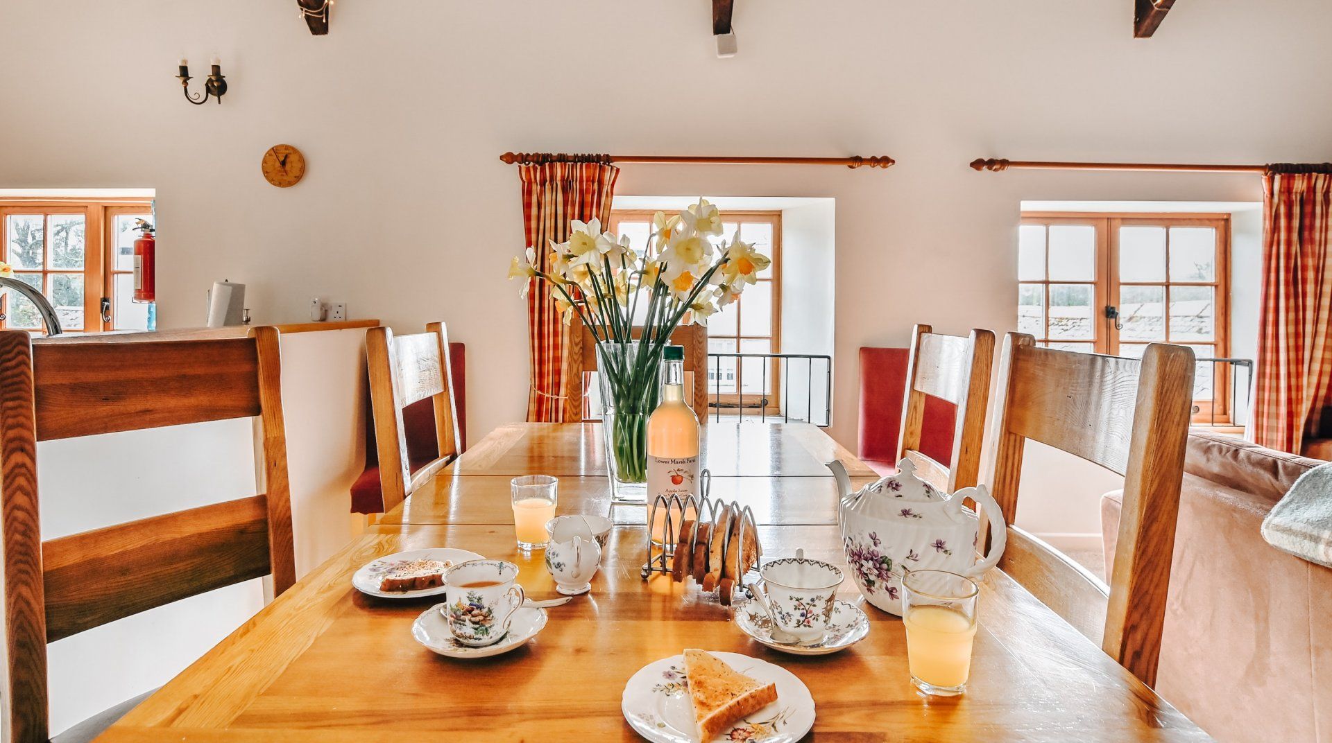 It's clear that converting this traditional, award-winning stone barn into a luxury home has been a labour of love. Set across two floors, it's a warm and cosy space that's the ideal base for enjoying the scenic Cornish countryside. Start your first day with breakfast from some of the goodies provided by your lovely hosts. The open plan living space is the home's beating heart, dominated by beautifully restored original wooden beams that run along the vaulted ceiling, a lick of sophisticated red paint and a charming wood burner. We love the hot tub in the pretty garden – it’s the perfect place to unwind. The great outdoors is the real draw here. The home makes up part of a former Duchy of Cornwall daffodil farm – nowadays, chickens and ducks roam the grounds freely – and there are even Highland cows too. Set in an Area of Outstanding Natural Beauty – there are fantastic local walks (maps and wellies provided) on your doorstep. You can enjoy the amenities of the farm, too, including a tennis court, an orchard with a hammock, basketball hoop, woodland, and a private shingle beach right on the river – there are forty acres to explore in total. There's certainly plenty to keep you occupied here – your hosts are Cornwall Wildlife Trust Members, which affords you access to wildlife education sessions for children, including mini-beast safaris, rock pooling events, and bird box making. You can also book a foraging workshop, stand-up paddleboarding, wine tasting, spa treatments, afternoon teas, suppers and more.