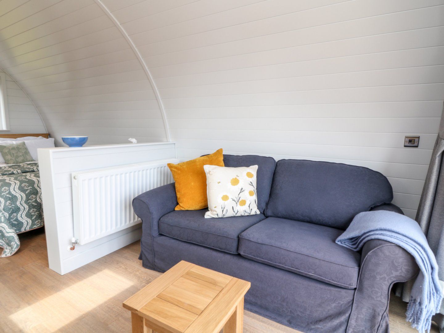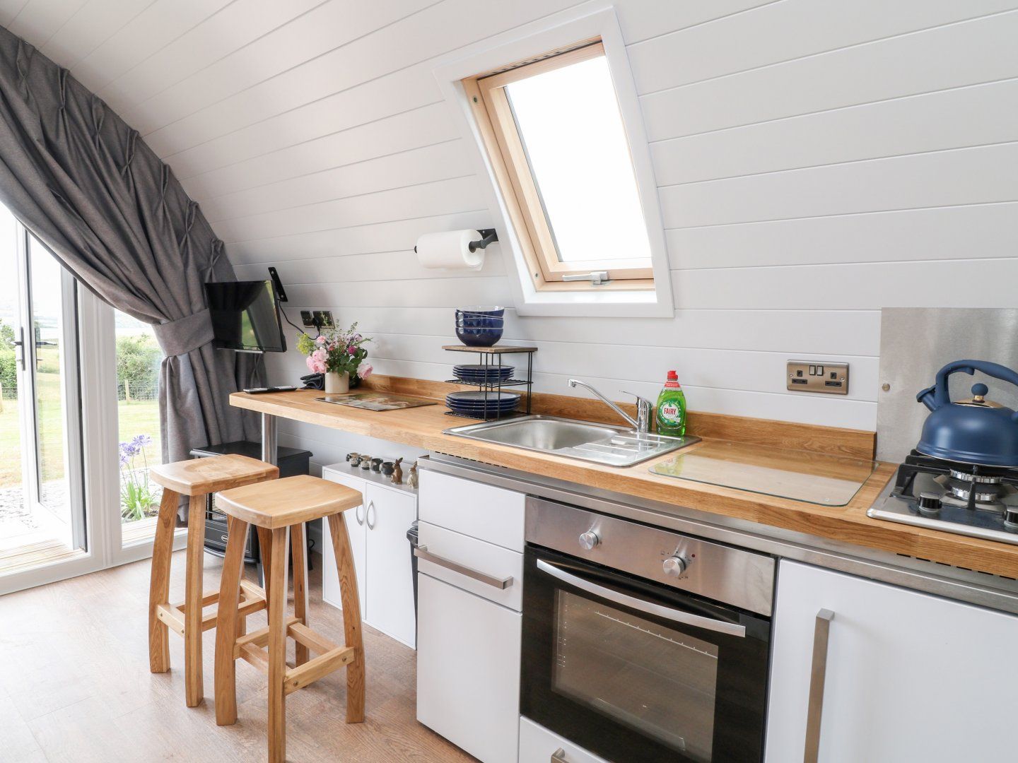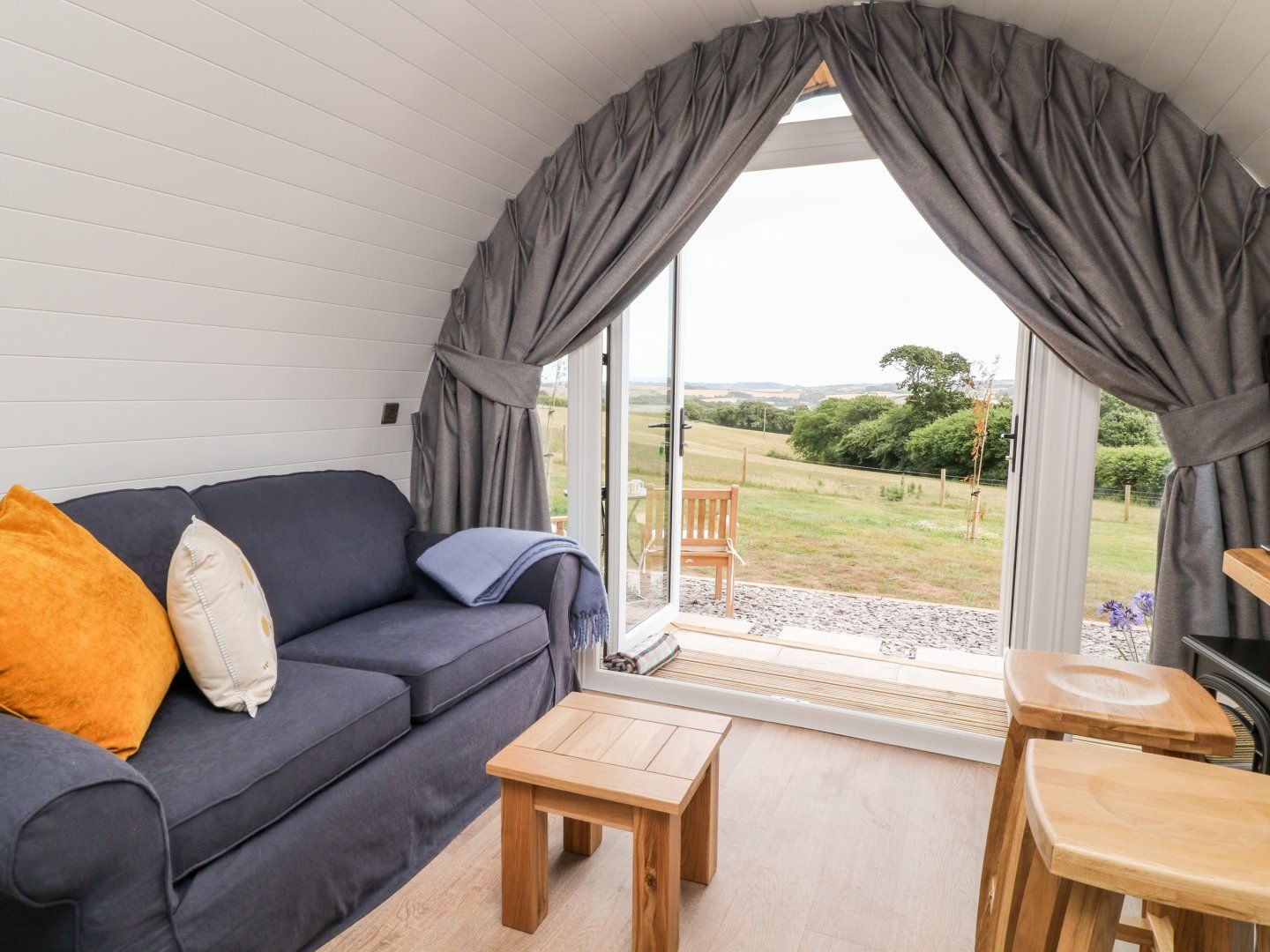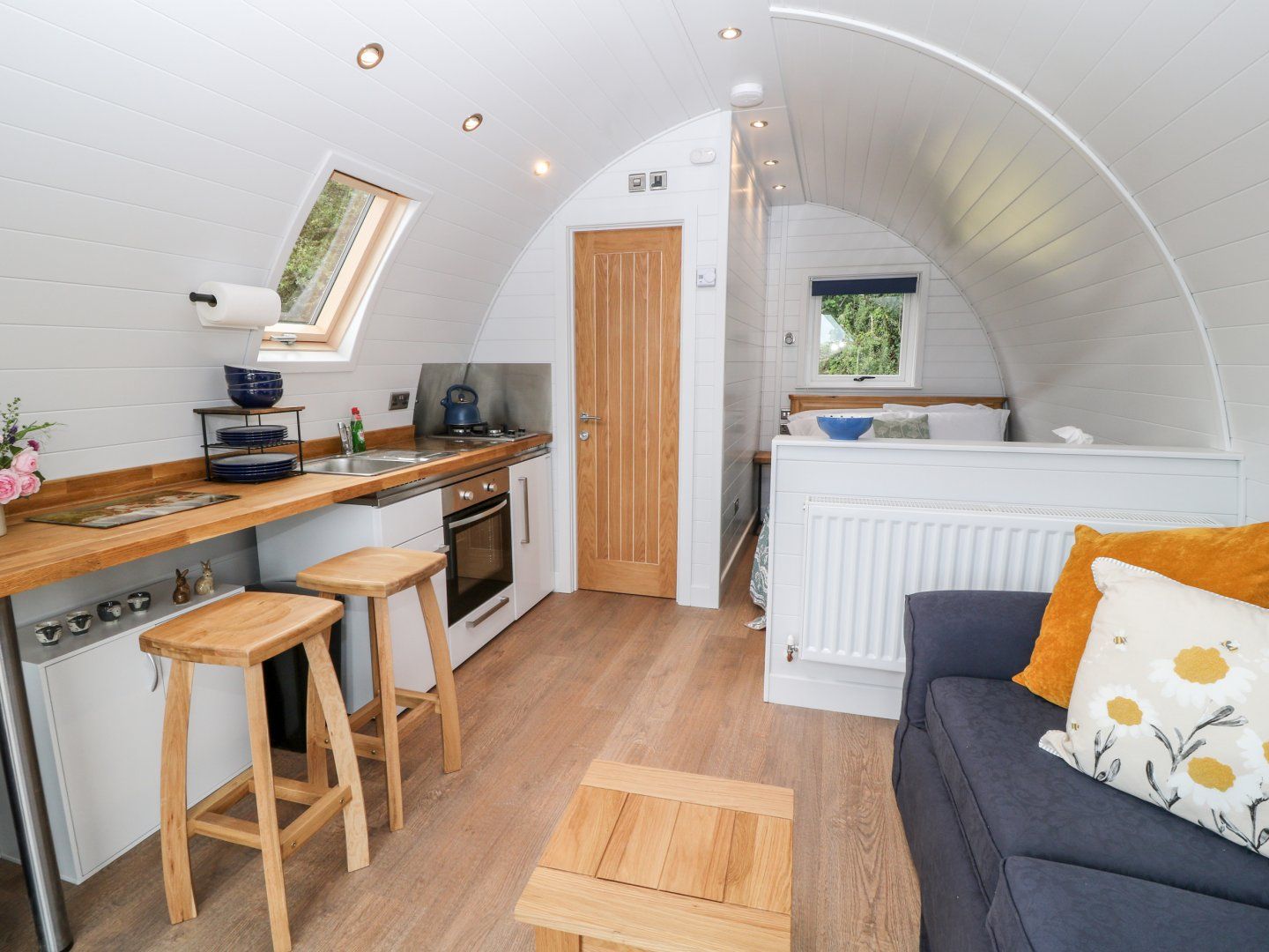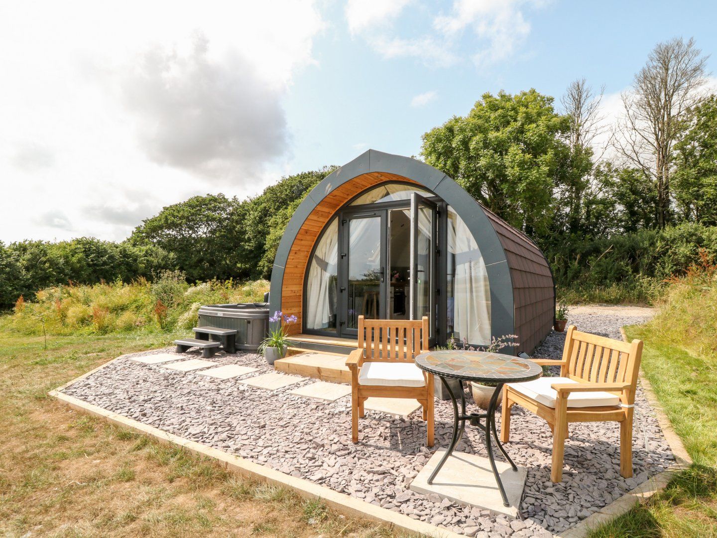 This contemporary pod has a studio layout with an open-plan living area housing a kitchen with gas oven, gas hob, microwave, fridge with ice box, a dining area for two, a sitting area with a Smart TV and electric fire stove and double bed. There is also a shower room with a walk-in shower, basin, heated towel rail and WC. Outside there is a non-enclosed patio with hot tub and furniture and communal lawn, plus ample off-road parking in the car park. Within 2.5 miles you will find a shop, within 2.3 miles, a pub, and within 0.9 miles, a river, and please note this is a pet-free and smoke-free property. Fuel, power, bed linen, towels and WiFi included in the rent. Explore the wonders of the Cornish Countryside with a stay at Oak.