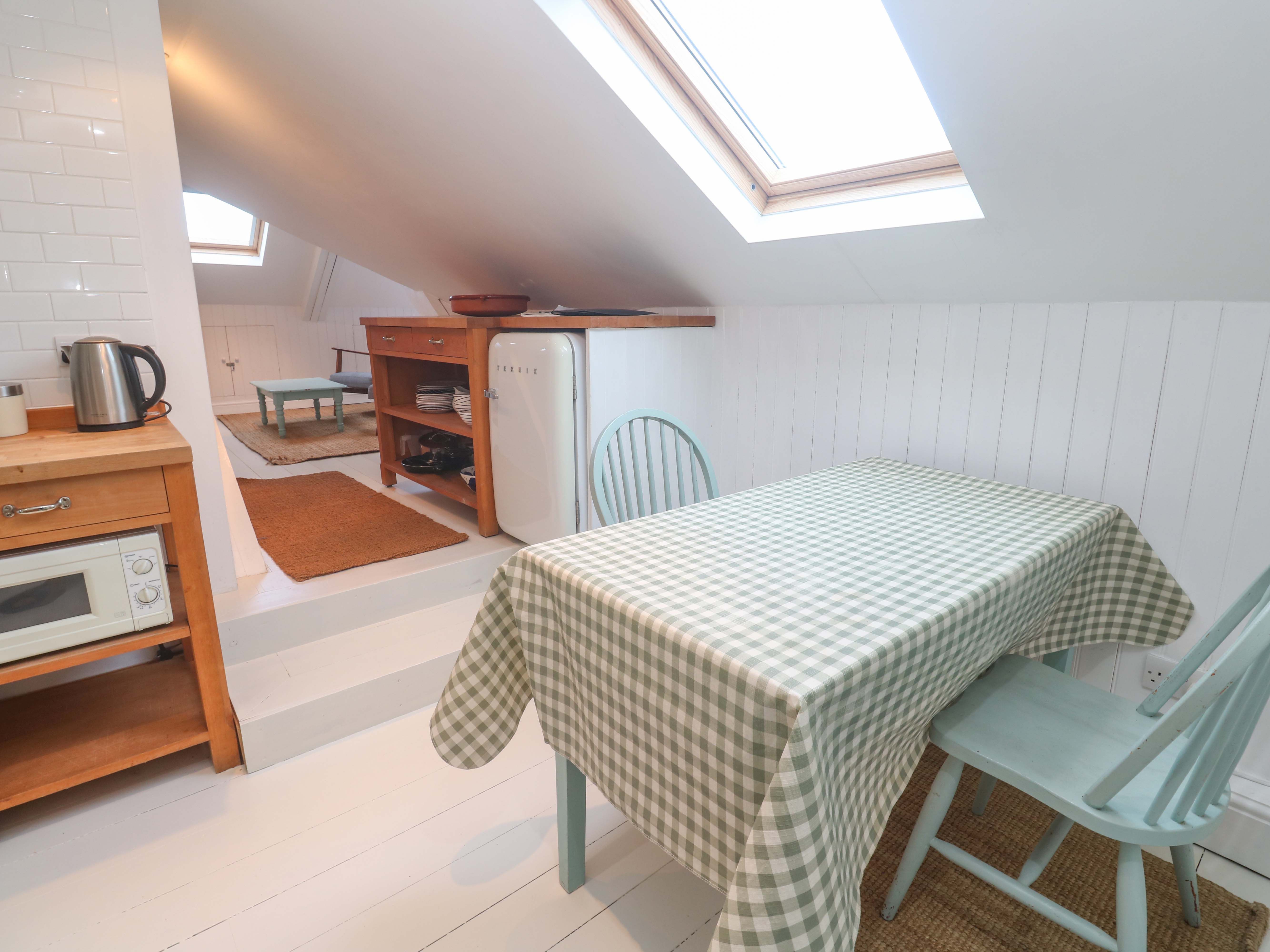 Electric central heating with Woodburning stove. Electric oven and hob, toaster, kettle, fridge, microwave, TV and WiFi. Fuel and power inc. in rent. Bed linen and towels inc. in rent. Off-road parking at two nearby car parks. Balcony area with furniture. Sorry, no dogs and no smoking. Shop 0.2 miles and pub 0.1 miles. Note: Guests will need to bring their own beach towels, however hand towels and tea towels are provided. A welcome pack is also provided. We would like to reassure you that in light of the current situation a thorough cleaning process is followed on each change over. Note: Badgers Loft is situated in the roof space so does have restricted head height around the edges of the spaces. Note: No Stag/Hen or similar parties. Note: Arrival to Badger's Loft is after 4pm and please vacate by 9am on the day of departure. Note: There are low ceilings at the property so please be careful.