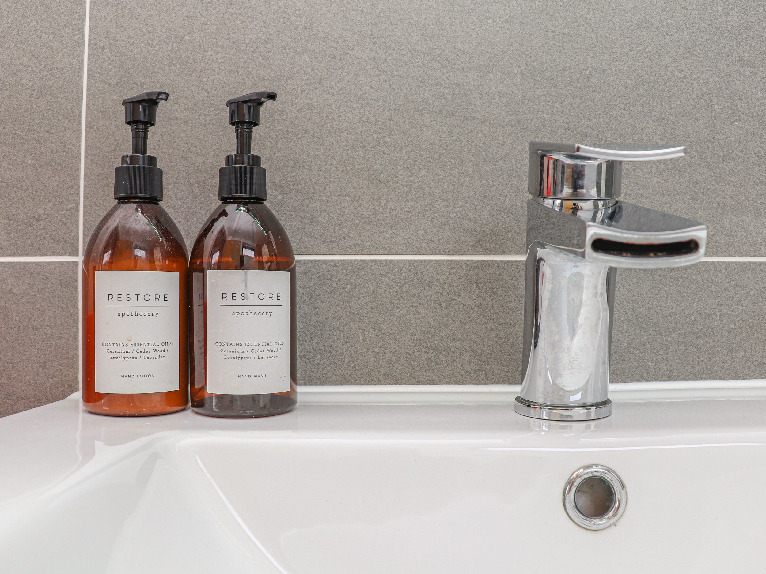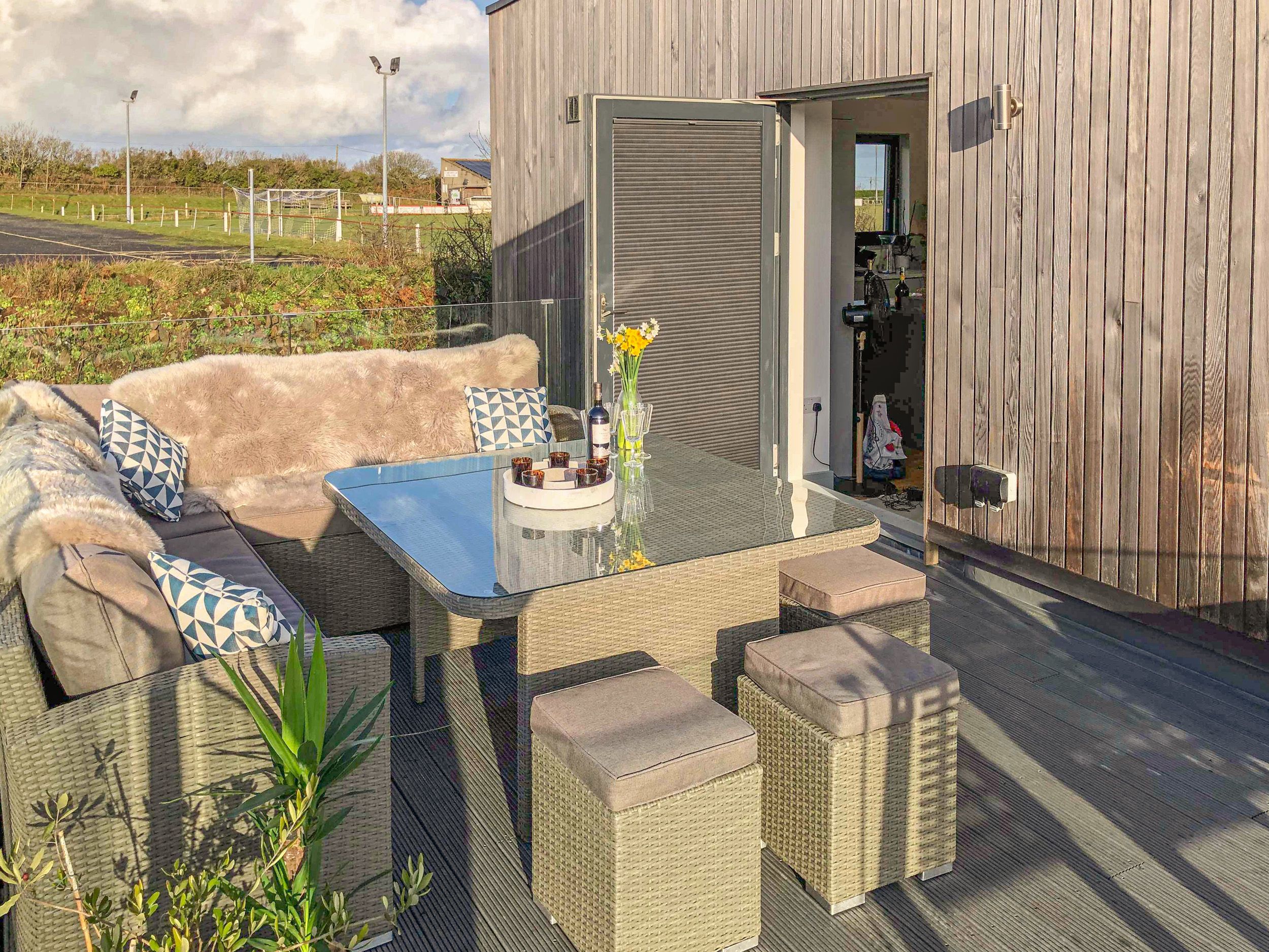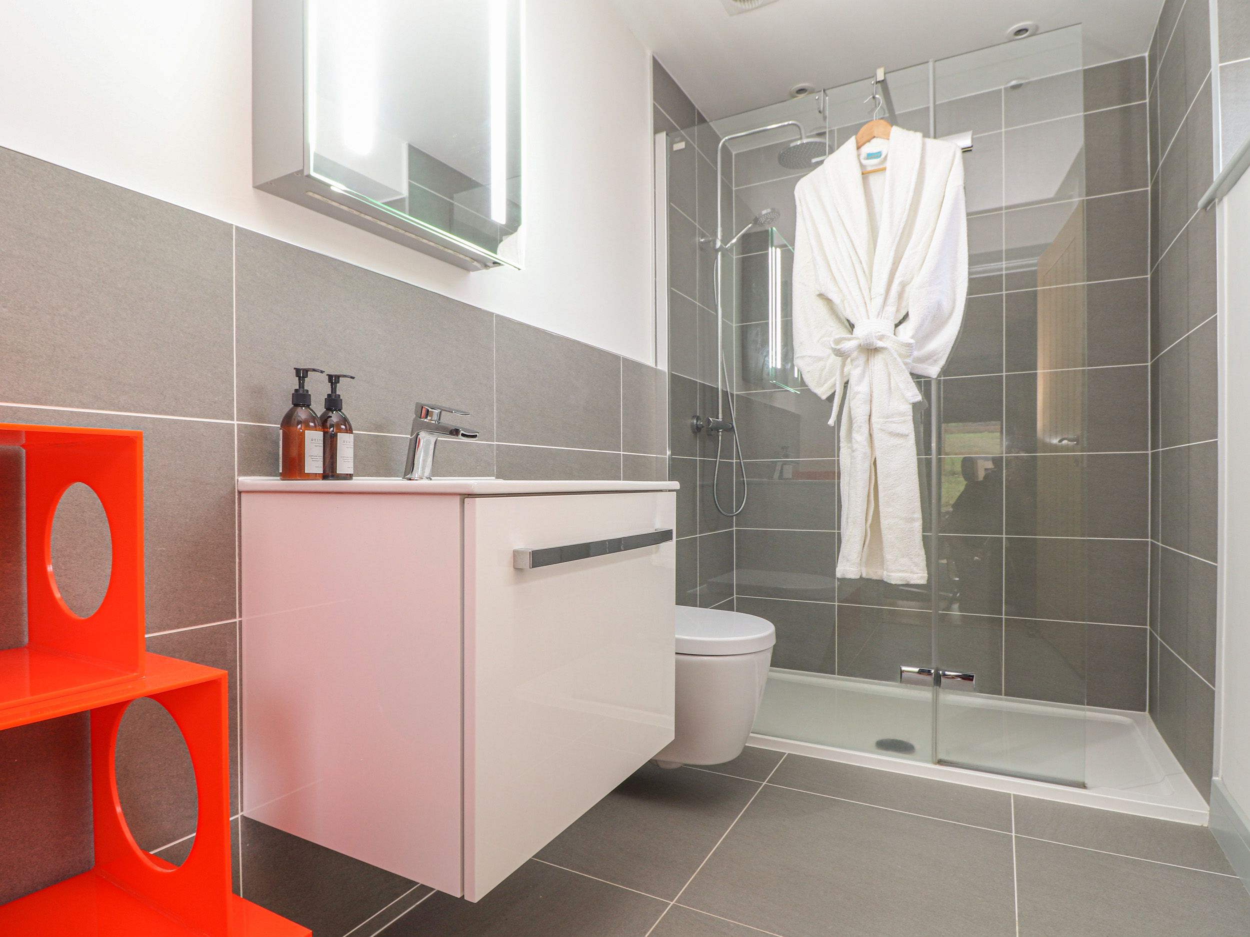 Reverse-level accommodation. Three bedrooms: 1 x ground-floor super-king-size with en-suite shower, basin and WC, 1 x ground-floor king-size double and 1 x ground-floor twin. Ground-floor bathroom with bath, shower over, basin and WC. First-floor open-plan living space with kitchen, dining area and sitting area with woodburning stove. Utility. Games room. EV charging available