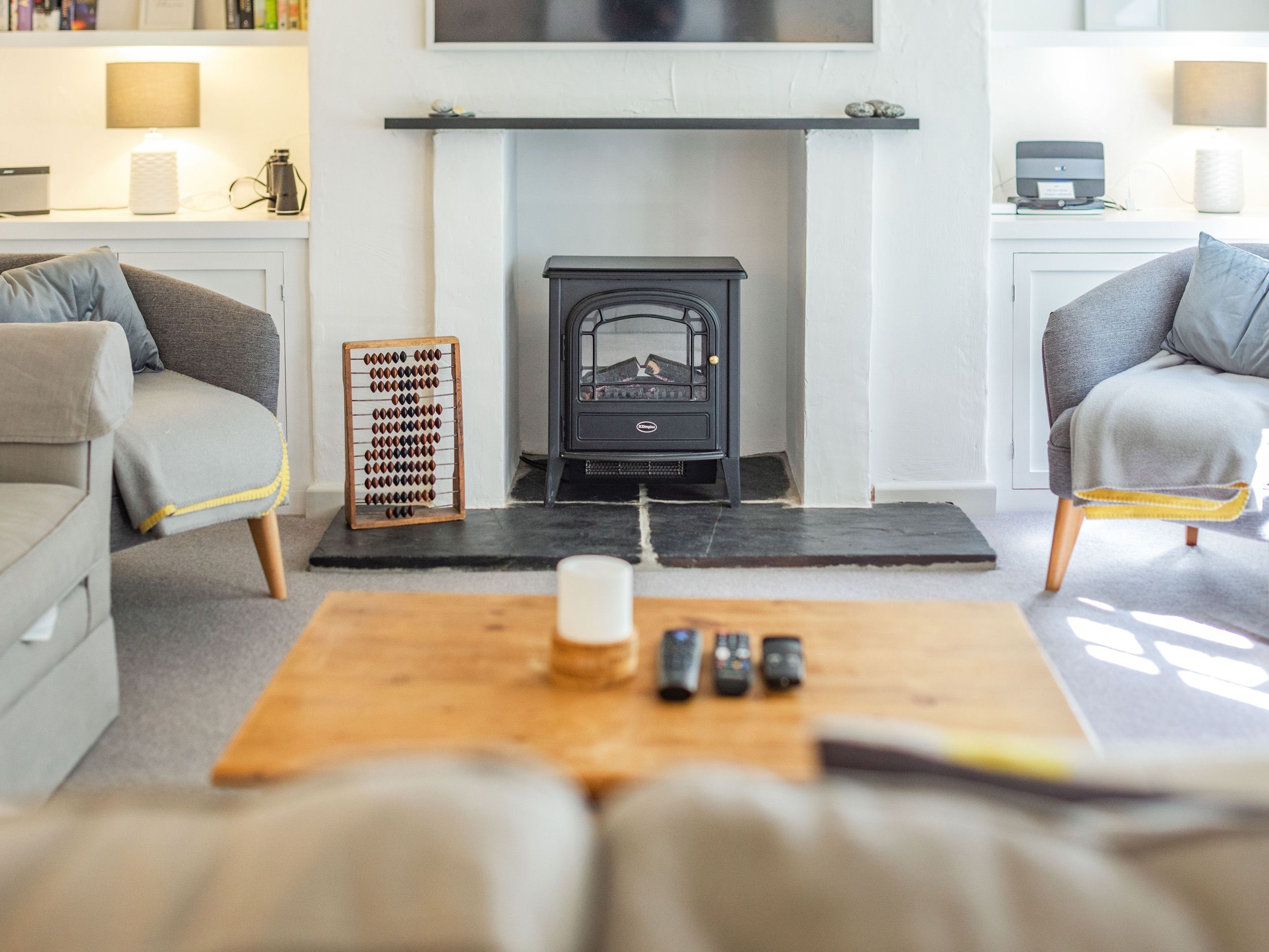 Amenities Oil central heating with electric woodstove feature. Electric oven and hob, microwave, fridge, washing machine, dishwasher, TV, WiFi, selection of books, games and DVDs. Fuel and power inc. in rent. Bed linen and towels inc. in rent. Highchair available upon request. Off-road parking for 1 car. Large garden with furniture and connecting woodland. Sorry, no pets and no smoking. Shop 0.4 miles, pub 0.2 miles. Beach 0.4 miles. Note: the access from the parking area, which is down steps to the house and garden