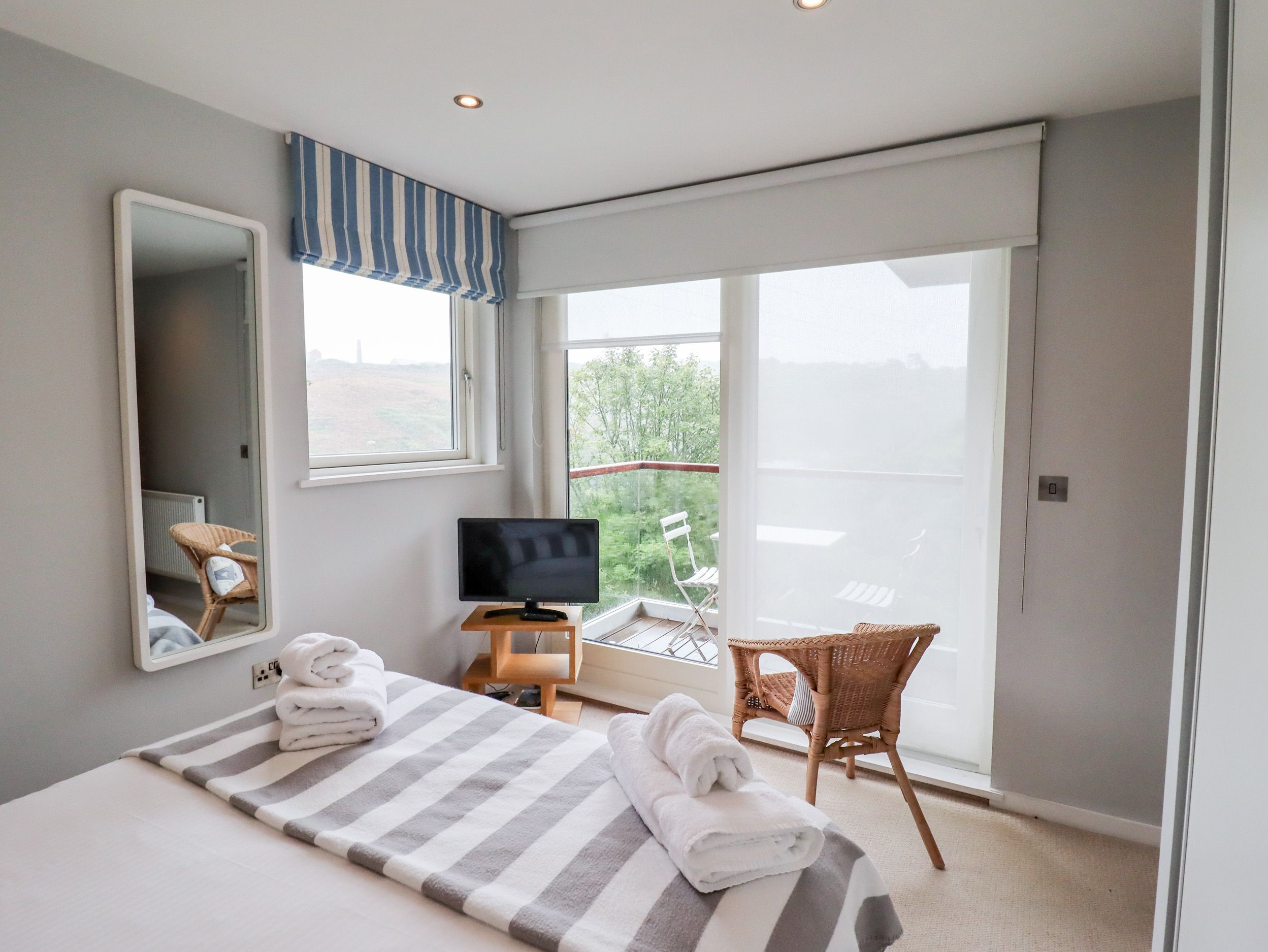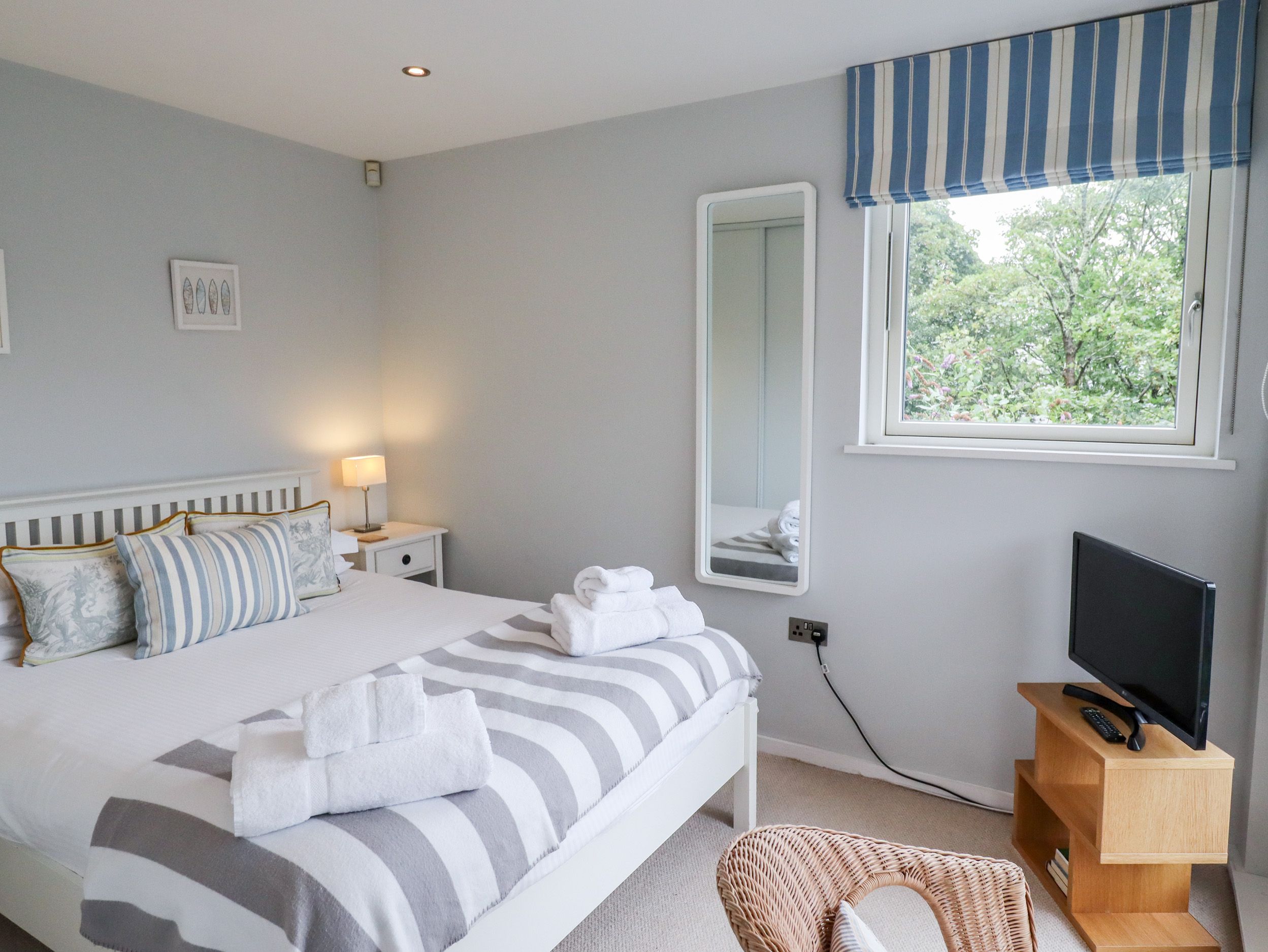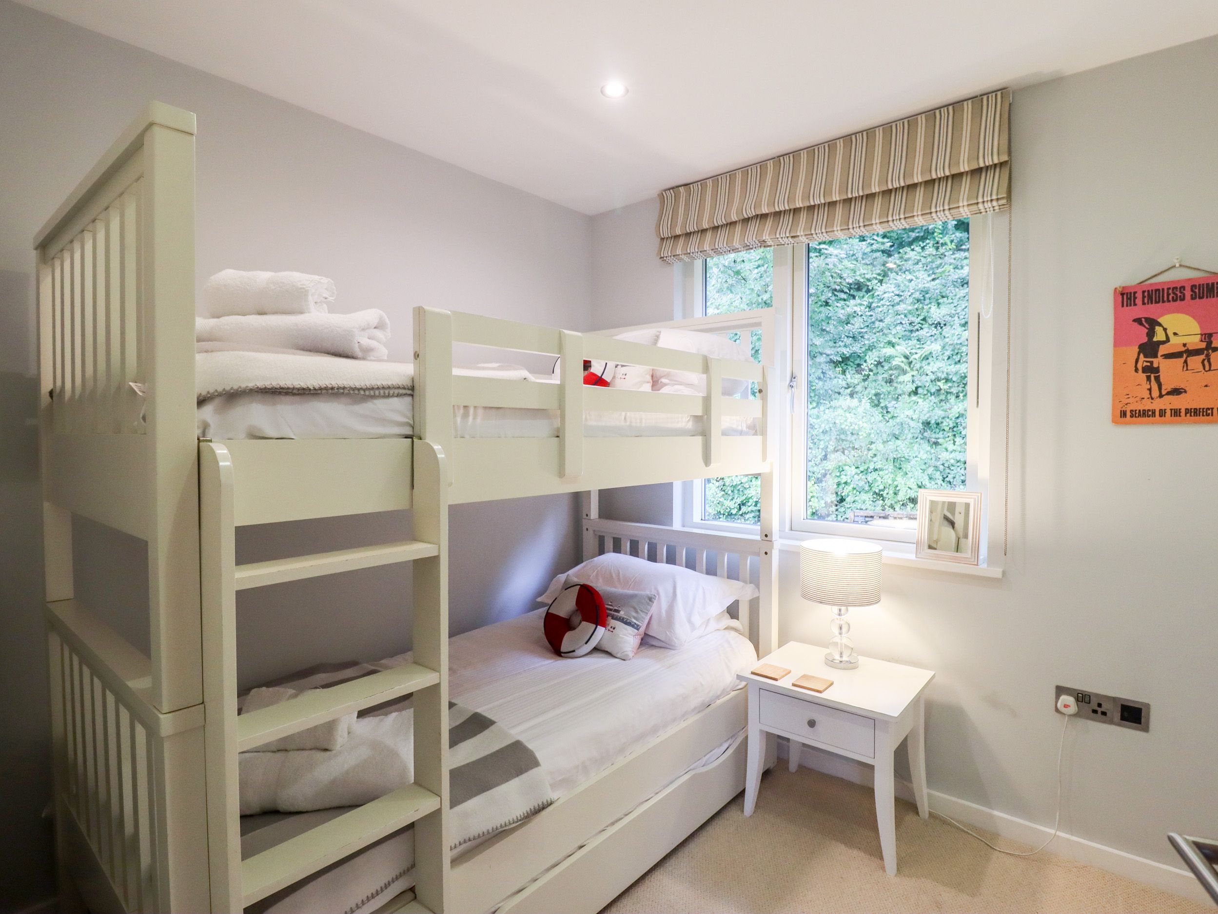 Holiday home 9 Cedars is a wooden-clad, detached holiday home with four bedrooms including a king-size with en-suite shower room, a king-size, a zip/link twin, and a bunk, along with a bathroom, an open-plan living space with kitchen, dining area and sitting area with woodburning stove, and a utility. Appliances include an electric double oven and hob, microwave, fridge, freezer, washing machine, tumble dryer, dishwasher, and wine cooler and for entertainment there is a TV and WiFi. Outside there is off-road parking for one car, an enclosed deck with a hot tub and furniture, and a garden with a lawn and furniture. Fuel, power, a starter pack for woodburning stove, bed linen and towels are all included in the rent. Two well-behaved pets are welcome, and a travel cot, highchair and stairgate are available. Sorry, this is a smoke-free property. You can find a shop, pub and beach within 0.6 miles. Please note that there are steep steps up to the property which may not be suitable for those with limited mobility. 9 Cedars is a lovely home for a seaside break to Cornwall.
