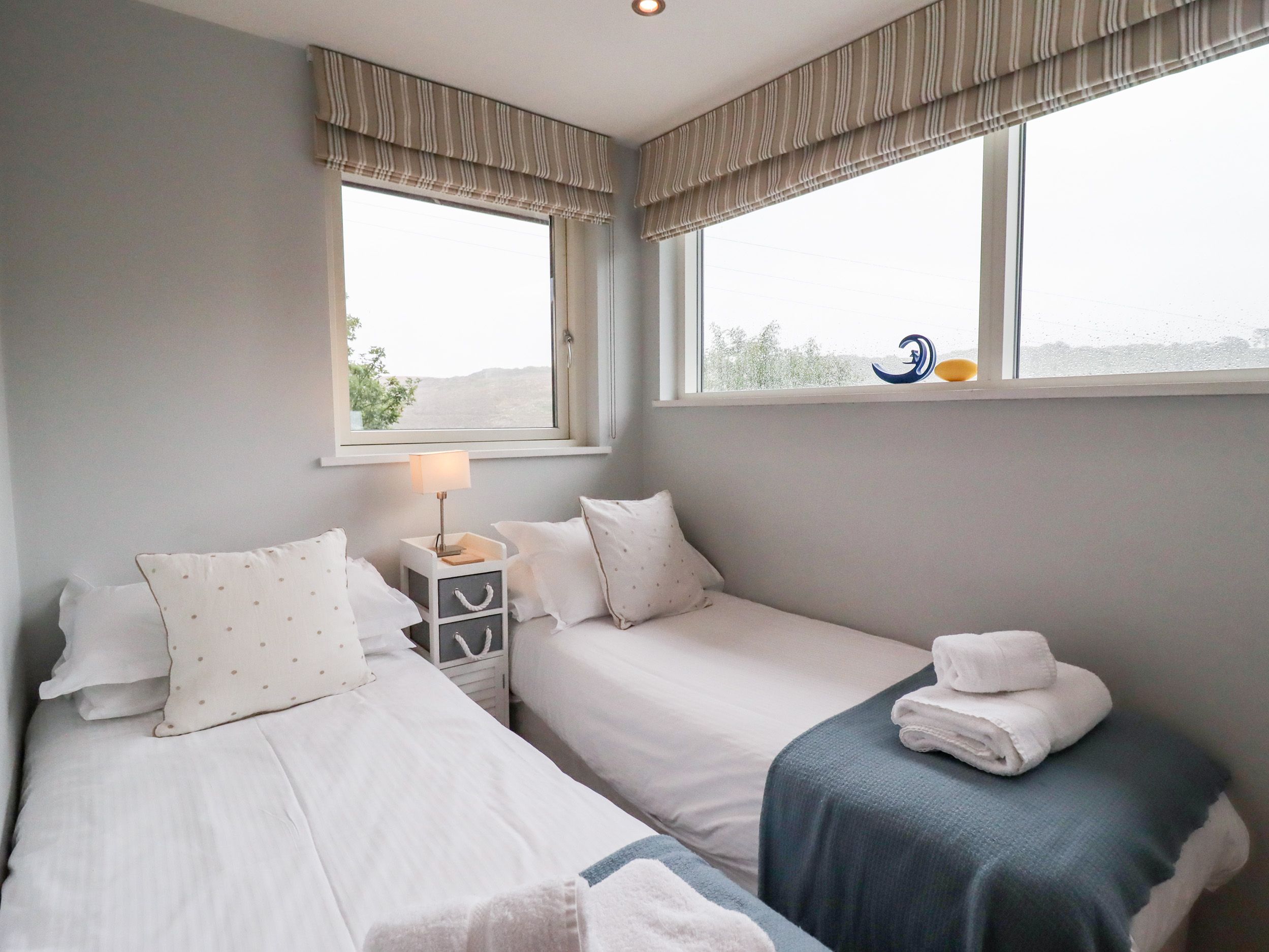 Accomodation Details Four bedrooms: 1 x king-size with en-suite walk-in shower, basin, heated towel rail, and WC, 1 x king-size, 1 x twin (2 small singles zip/link can be double on request), 1 x bunk. Bathroom with bath, shower over, basin and WC. Open-plan living space with kitchen, dining area and sitting area with woodburning stove. Utility with W/C