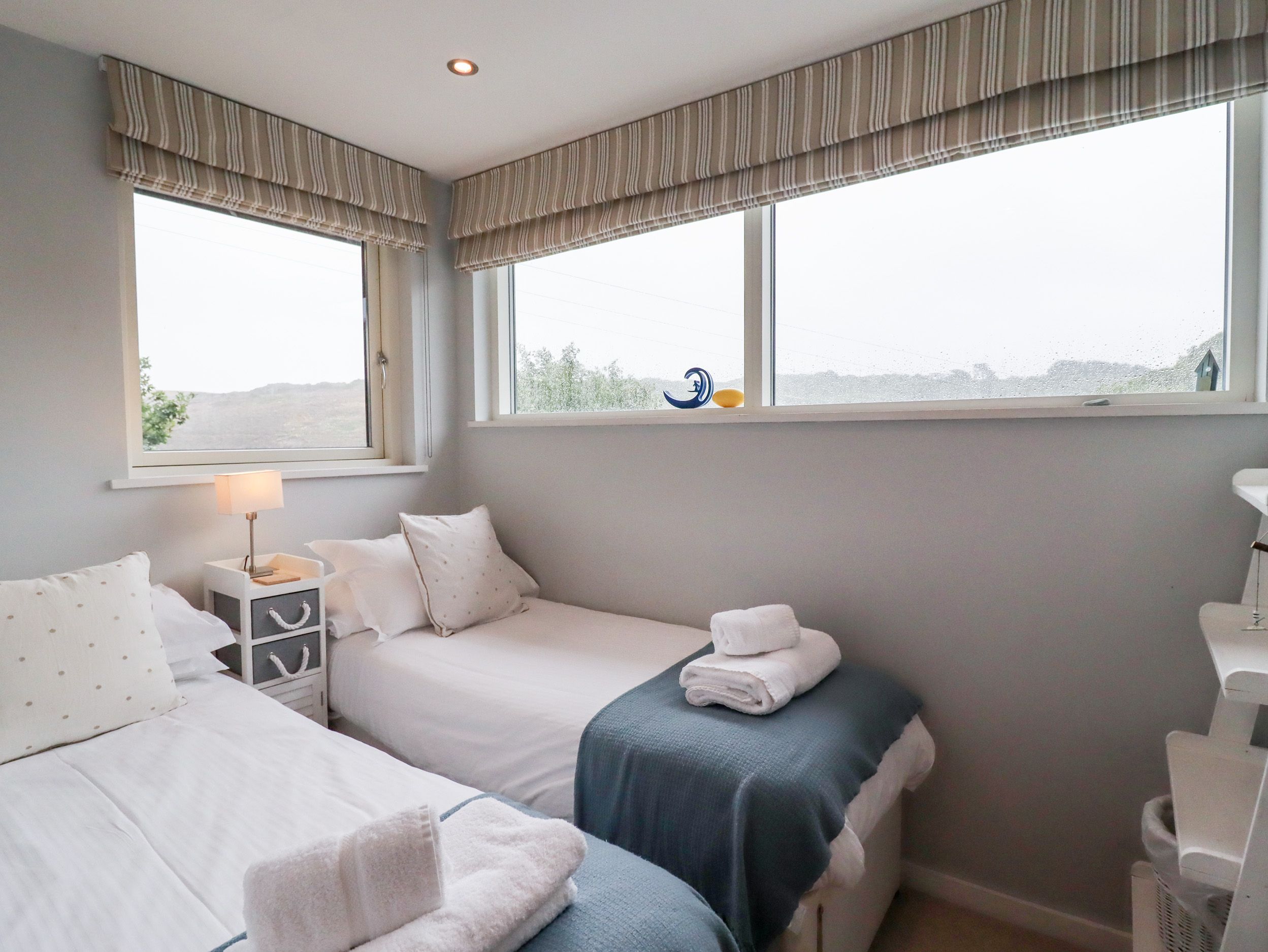 Amenities Outside shower. Air source heat pump central heating with ground-floor underfloor heating. Electric double oven and induction hob, microwave, fridge, freezer, washing machine, tumble dryer, dishwasher, and wine cooler. TV and WiFi. Fuel, power, inc. in rent. Bed linen and towels inc. in rent. Travel cot, highchair and stairgate available. Off-road parking for 1 car. Enclosed, private decking with hot tub and furniture. Garden with lawn and furniture. One well-behaved dog welcome. Sorry, no smoking. Shop 0.6 miles, pub 0.1 miles, beach 0.2 miles. Note: Check-in from 4pm and check-out by 10am. Note: There are steep steps up to the property which may not be suitable for those with limited mobility. Note: Please no dogs upstairs, a stair gate will be provided. Note: The garden is not secure, please take care with dogs and children.