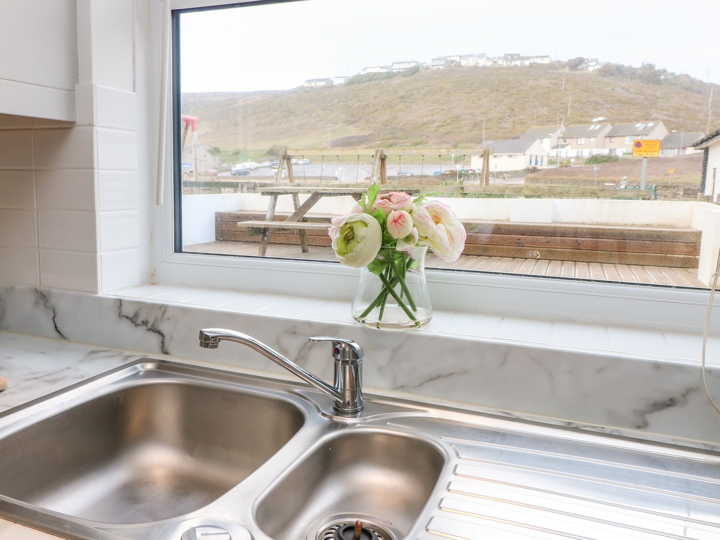 Offshore is a ground floor apartment on the road to Porthtowan beach. The property sleeps four adults and has two bedrooms, one double and one with bunks.The living area is open plan with a well equipped kitchen, dining area and comfortable sitting area which leads to the sun deck with furniture. Off road parking for one car. A short walk to the beach and childrens play area. Perfect location to explore Porthtowan and surrounding countryside, Offshore is a beautiful beachside bolthole with ocean views.
