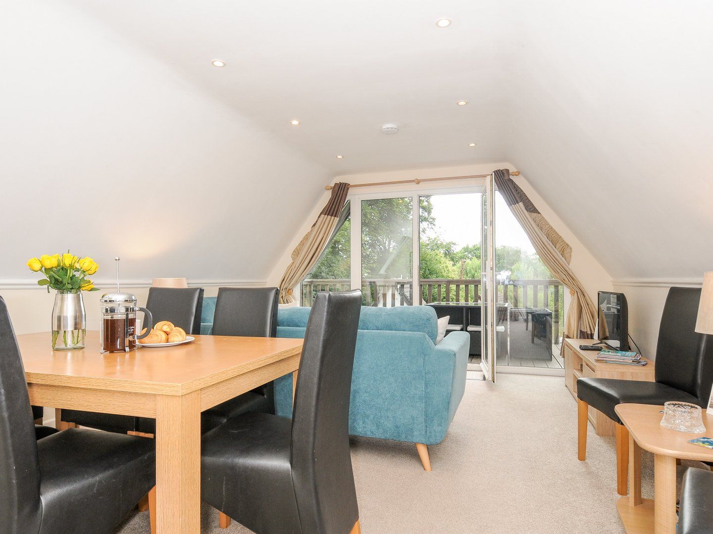 Amenities Electric central heating. Electric oven and hob, microwave, fridge, freezer, dishwasher. Smart TV, DVD player, WiFi. Fuel and power inc. in rent. Bed linen and towels inc. in rent. Travel cot available on request. Ample off-road parking. Front decked terrace with furniture, and private balcony with furniture. One well-behaved dog welcome. Sorry, no smoking. Shop 1.1 miles, pub on-site. Shared use of estate grounds. Note: At certain times of the year this property will accept short breaks: strictly three nights minimum. Note: This property has a private water supply which is tested regularly. Note: Seasonal opening times may apply to all facilities. Note: This property is fully decorated for Christmas
