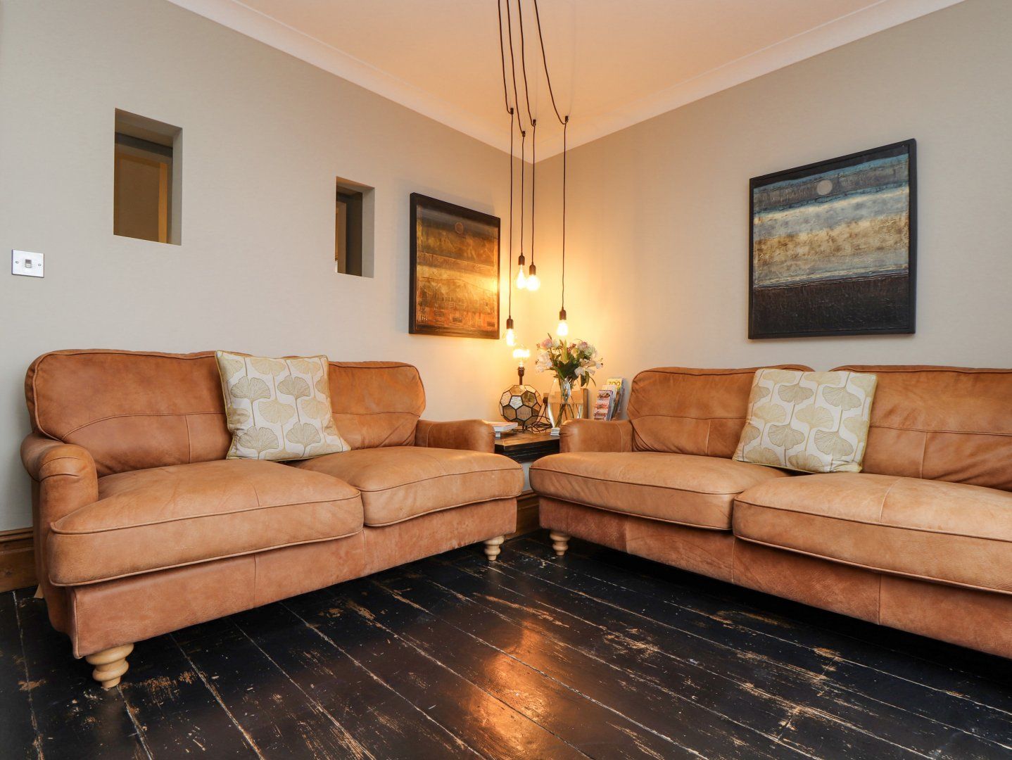 Accomodation Details Duplex apartment over ground and lower-ground floor. Two bedrooms: 1 x king-size, 1 x lower-ground-floor king-size. Bathroom with bath, basin and WC. Lower-ground-floor wet room with shower, basin and WC. Kitchen/diner. Sitting room with balcony