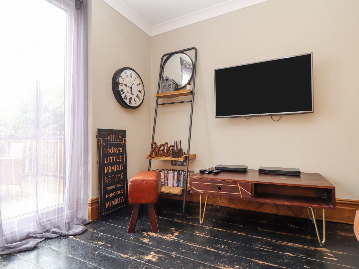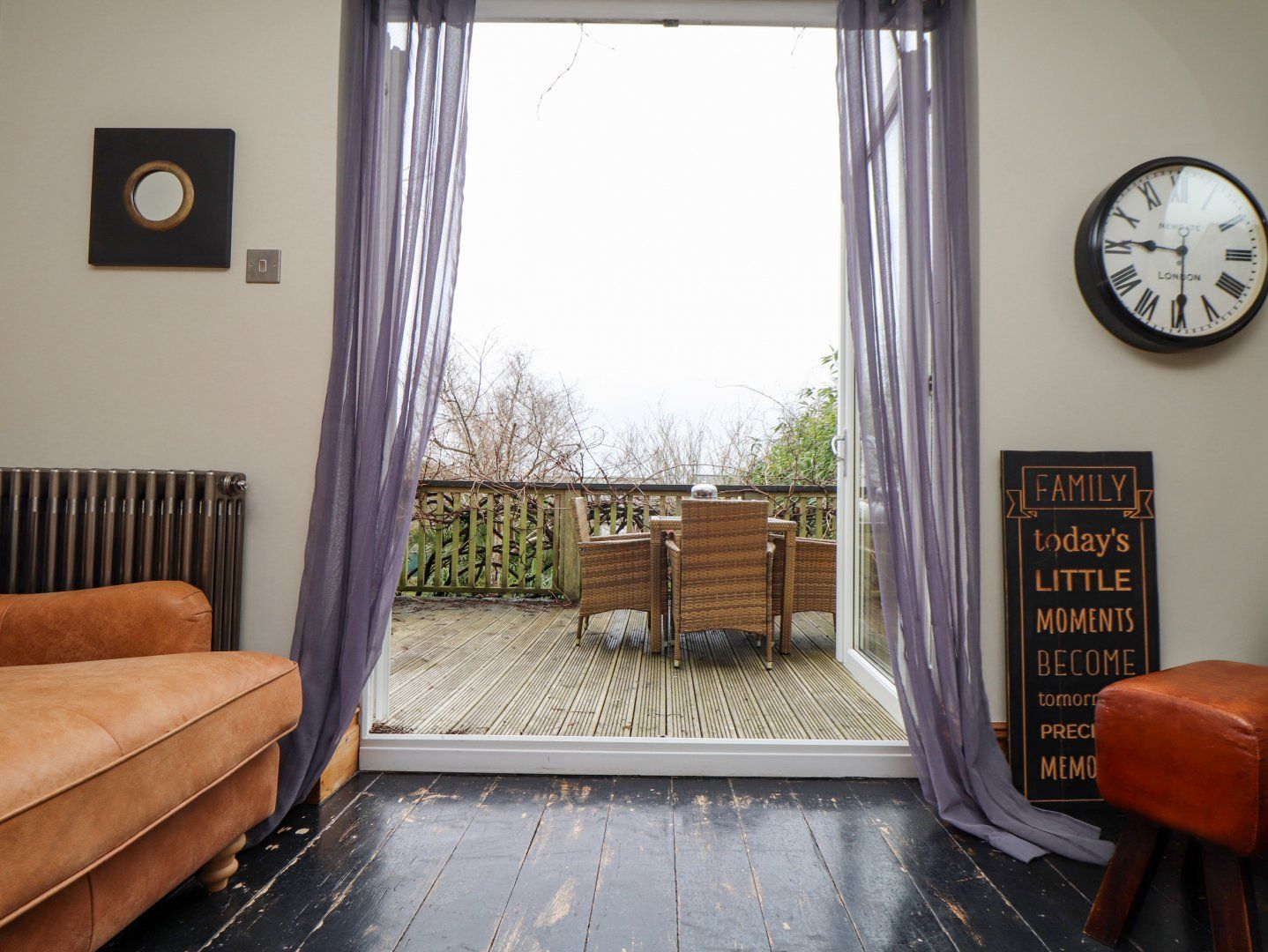 Amenities Gas central heating. Electric oven and hob, microwave, fridge/freezer, washing machine, dishwasher. Smart TV/DVD with Sky, Bluray, WiFi, and a selection of books and DVDs. Fuel and power inc. in rent. Bed linen and towels inc. in rent. Highchair available. Off road parking for two cars. Balcony with table and chairs and lower-ground-floor patio with furniture. Sorry, no pets and no smoking. Shop 0.1 miles, pub 0.6 miles and beach 1.9 miles. Note: There are two steps up to from door, two steps up to bathroom from hall and 8 steps down to the second bedroom and shower room. Note: This property lies on a busy road and there may be road noise heard. Note: The washing machine is housed externally