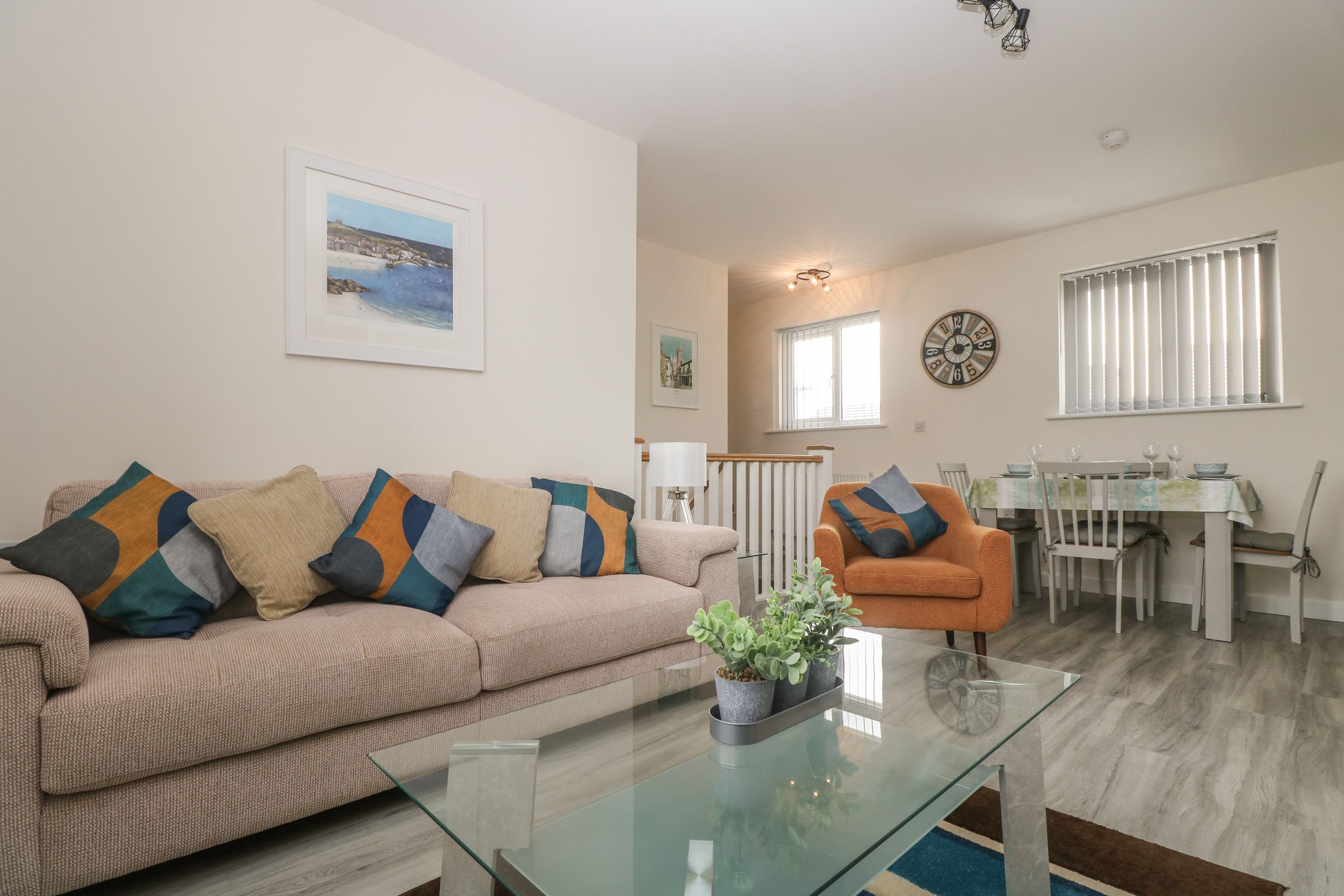 Accomodation Details Detached first floor Coach House located in a quiet cul de sac. Two bedrooms: 1 x double-size, 1 x single. Bathroom with bath and over head shower , basin, heated towel rail and WC. Open-plan living space with kitchen, dining area and sitting area. Ground-floor games room/utility with space to store bikes , canoes, surf boards, outdoor gear.
