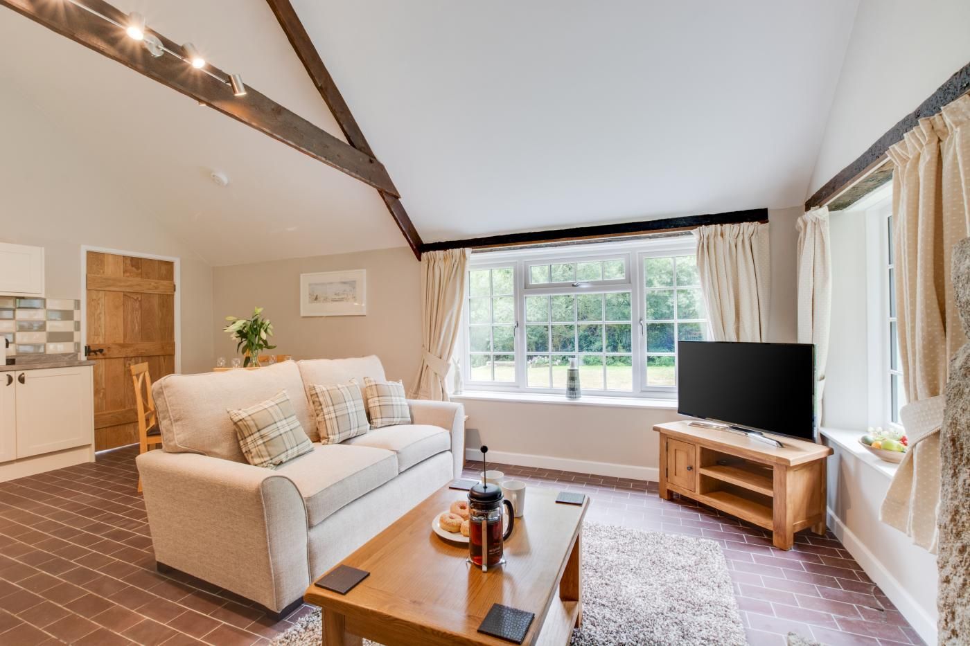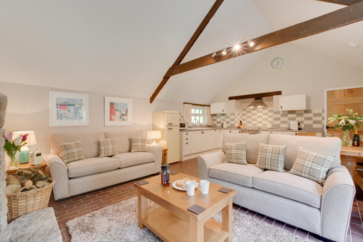 Boasting a country style, the open-plan living room/kitchen/diner has a relaxing ambience with soft sofas and lighting creating the perfect place to spend time with your loved ones.