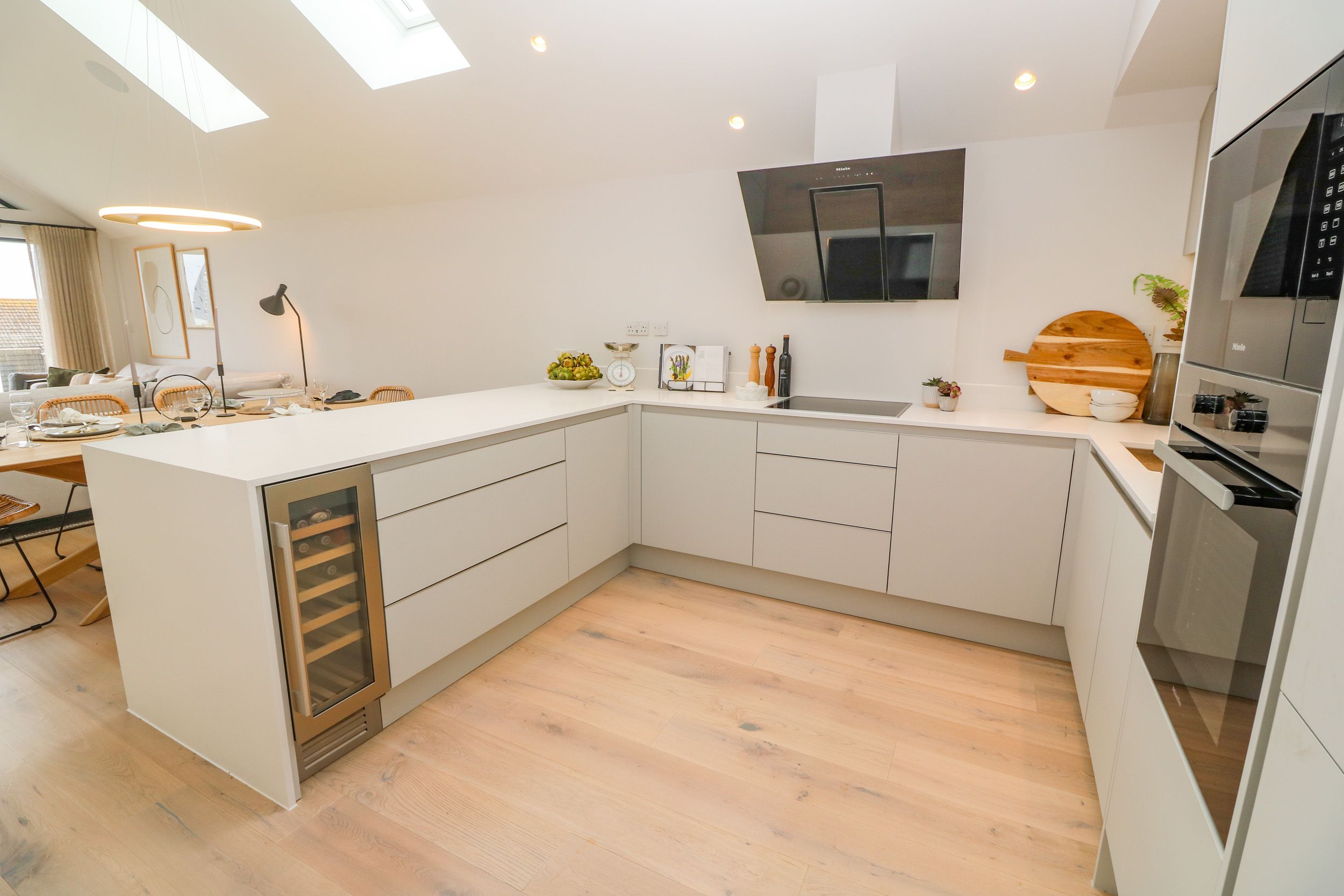 Accomodation Details Reverse level accommodation. Four bedrooms: 2 x ground floor king, 1 x ground floor double, 1 x king-size with en-suite walk-in shower, double basin, heated towel rail and WC,. Movie room with l-shape sofa bed. Ground-floor bathroom with freestanding bath, walk-in shower, basin, heated towel rail and WC. Ground-floor cloakroom/utility with basin and WC. Open-plan living space with kitchen, dining area and sitting area