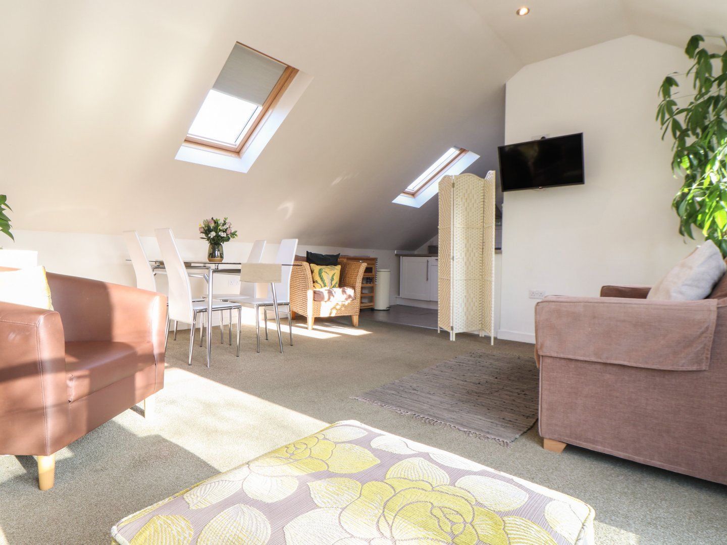 Accomodation Details Reverse-level. Two ground-floor bedrooms: 1 x king-size with Smart TV, 1 x double with TV. Ground-floor wet room with shower, basin, heated towel rail, and WC. First-floor open-plan living space with kitchen, dining area, and sitting area with Juliet balcony. Utility. Conservatory