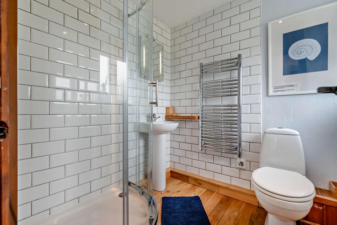 Set over three storeys connected by a spiral staircase, the property has an intriguing design, with a double bedroom – which has lovely rural views – and a family shower room situated on the ground floor.