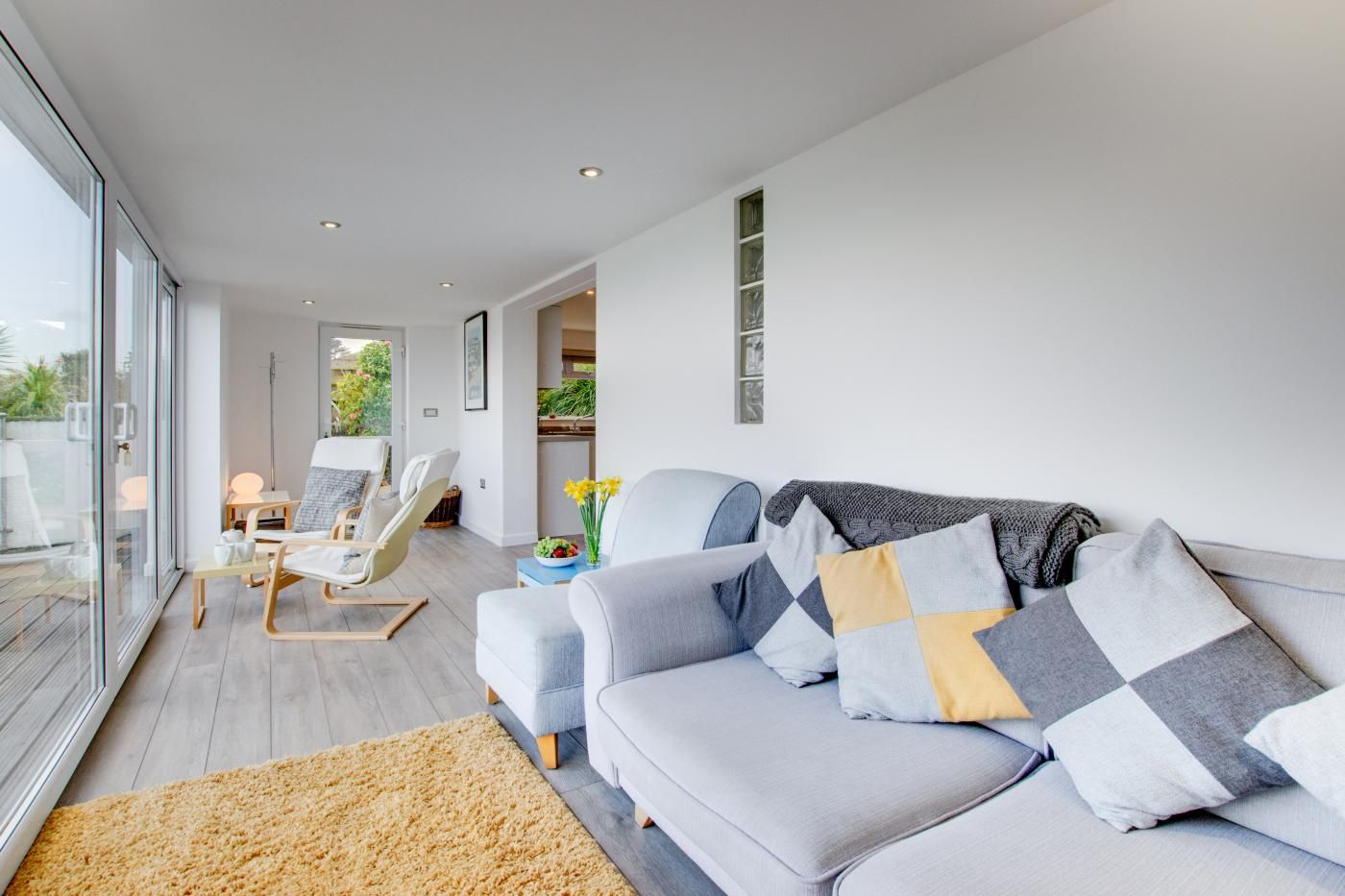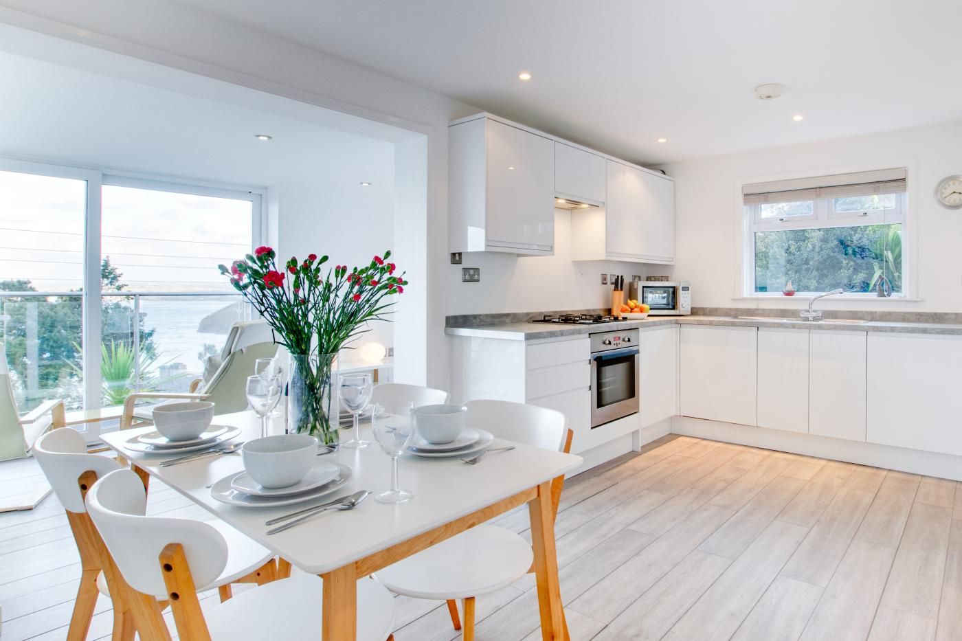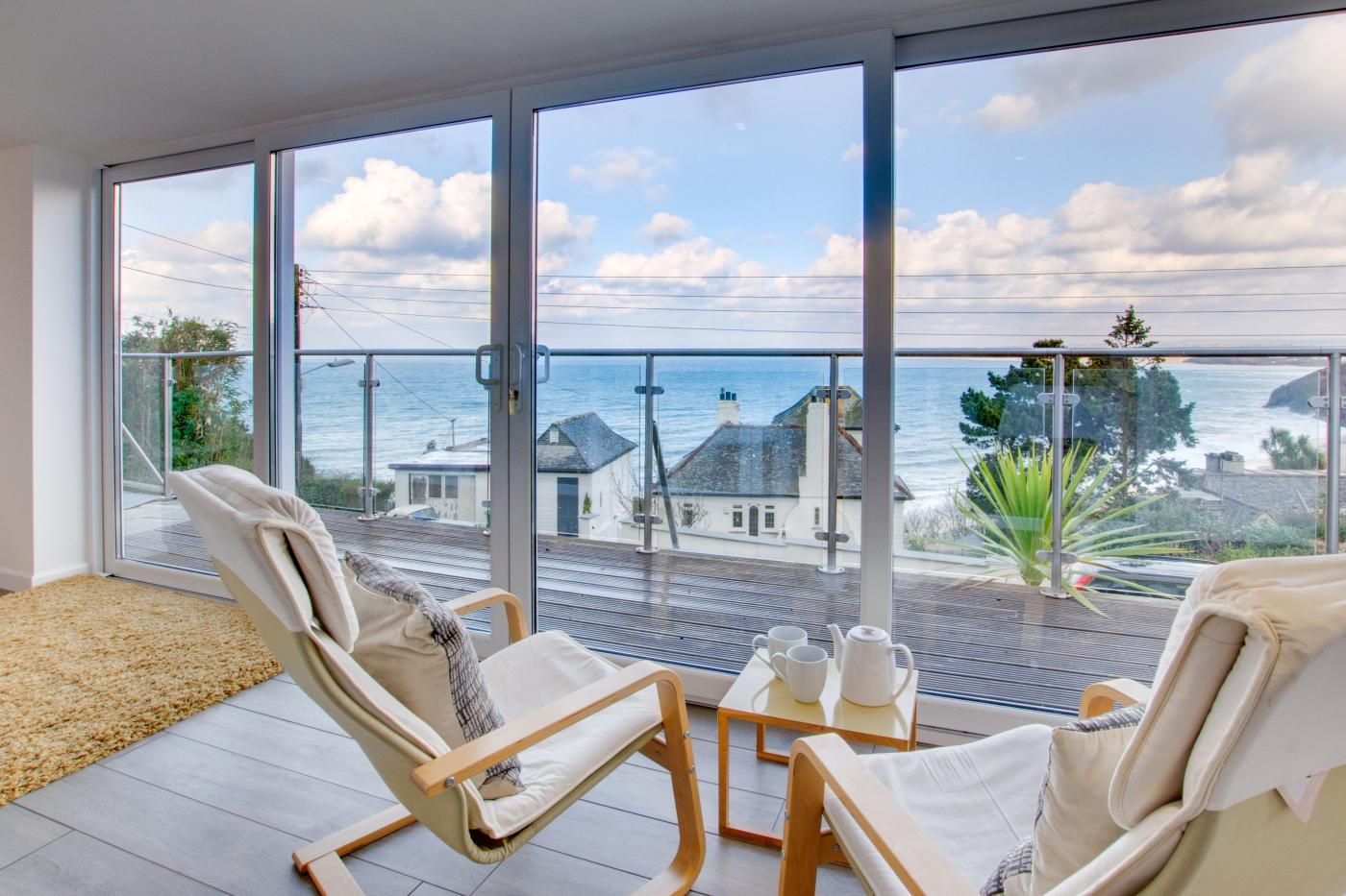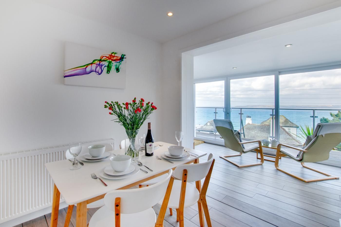 A modern apartment furnished and equipped to a very high standard with magnificent views across Carbis Bay Beach to Hayle, Godrevy and beyond.